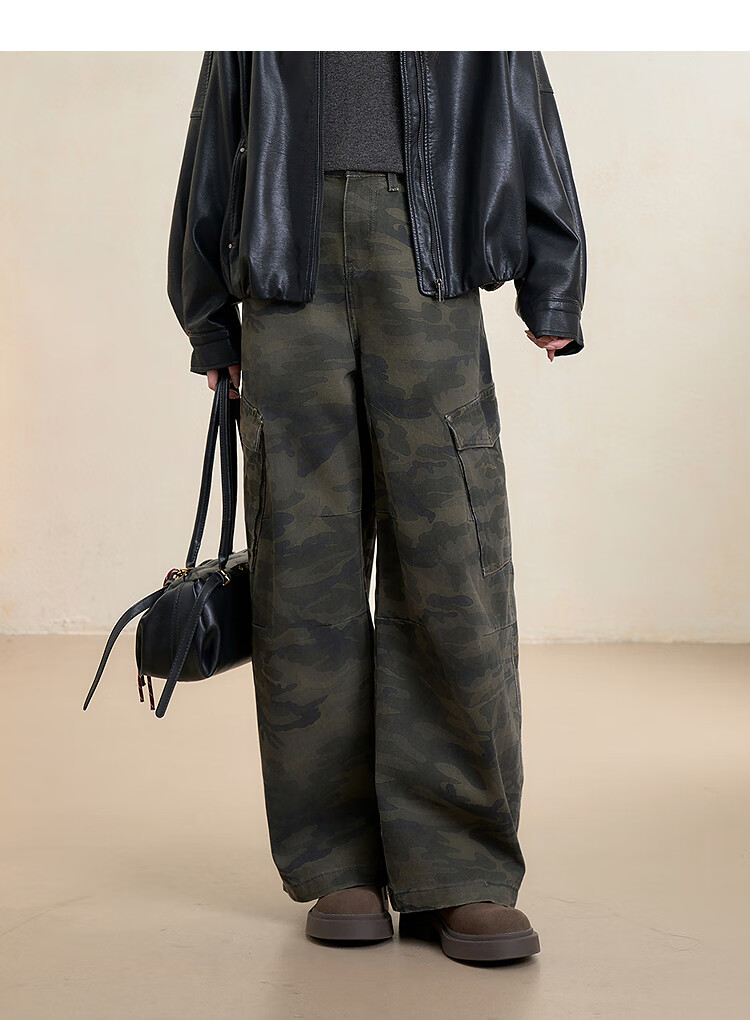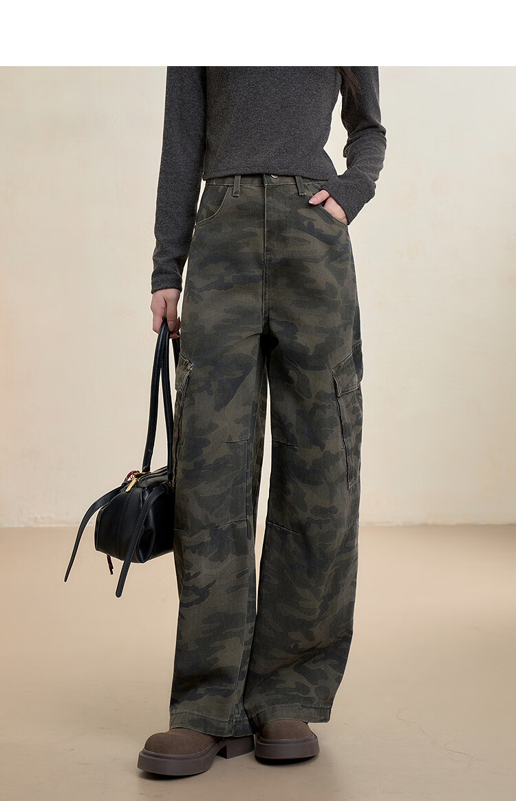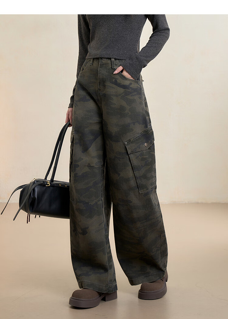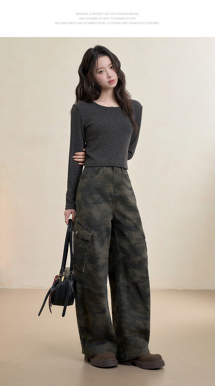 西遇(Westlink)西遇美式迷彩工装裤女秋季新款复古阔腿宽松显瘦休闲裤长裤 灰色 (预售15天) M (27)