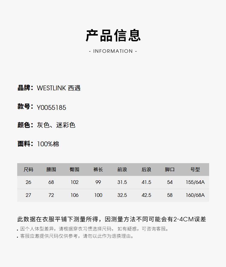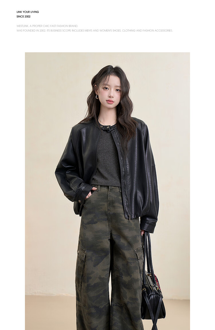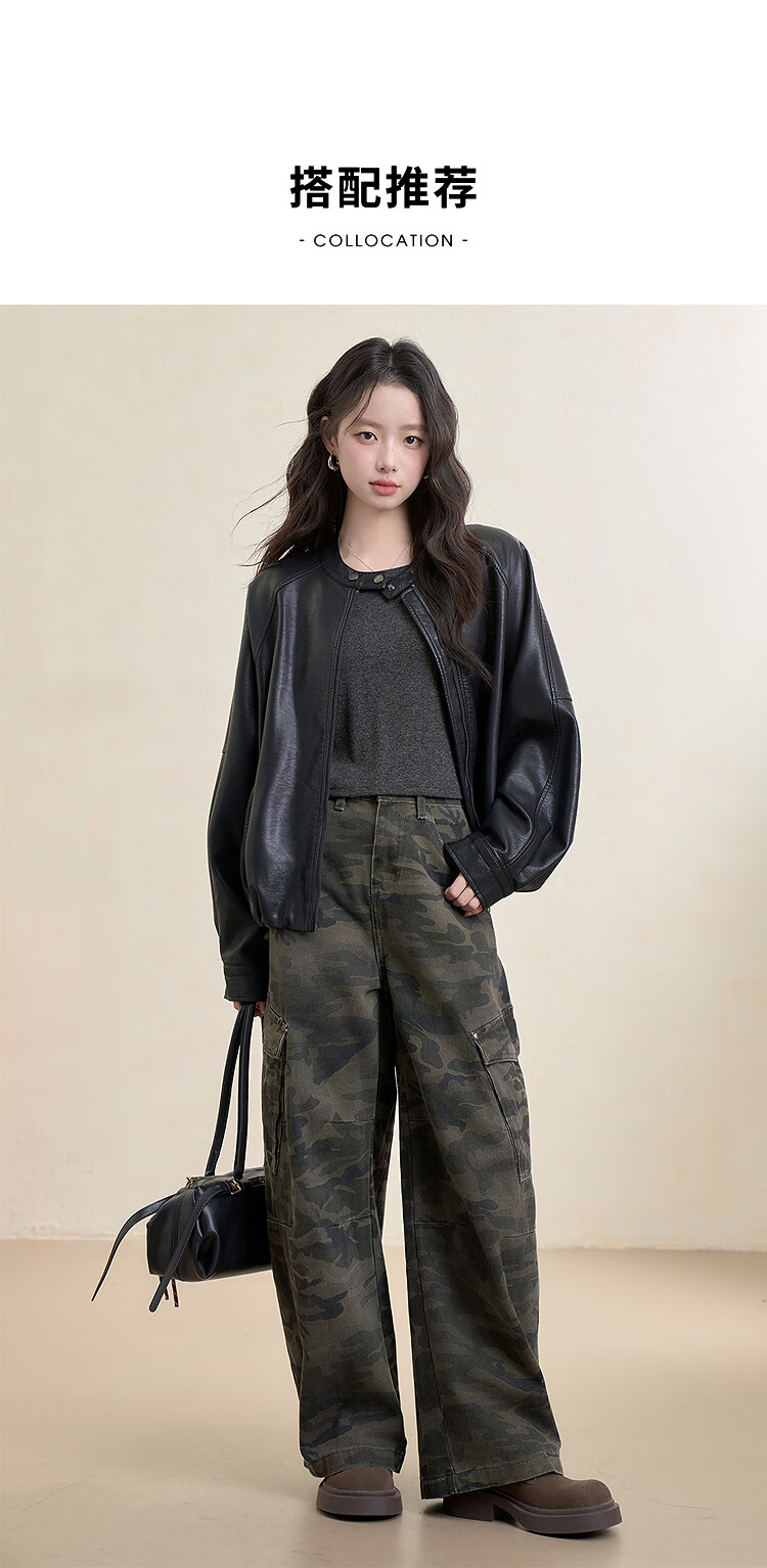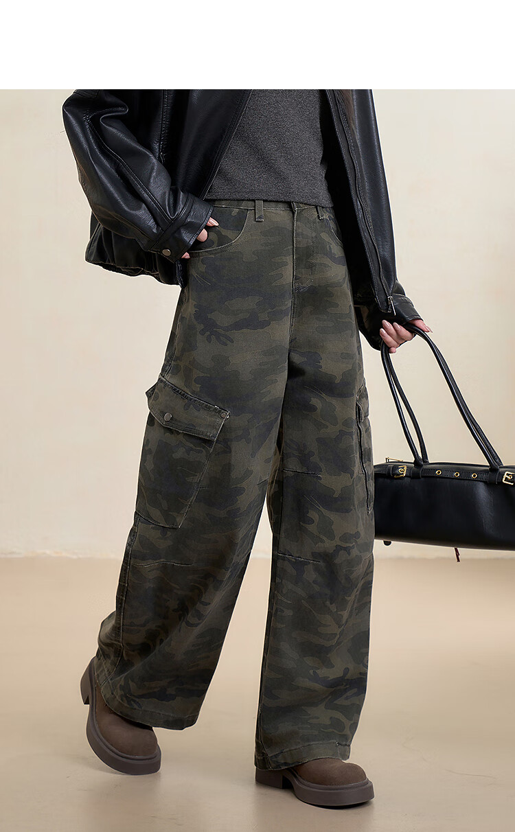 西遇(Westlink)西遇美式迷彩工装裤女秋季新款复古阔腿宽松显瘦休闲裤长裤 灰色 (预售15天) M (27)