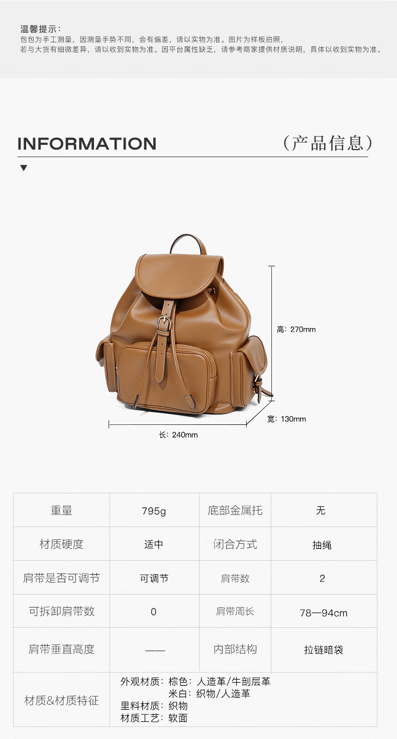 百丽包包女2025秋季时尚百搭休闲通勤双肩包BL865CX5 棕色 F