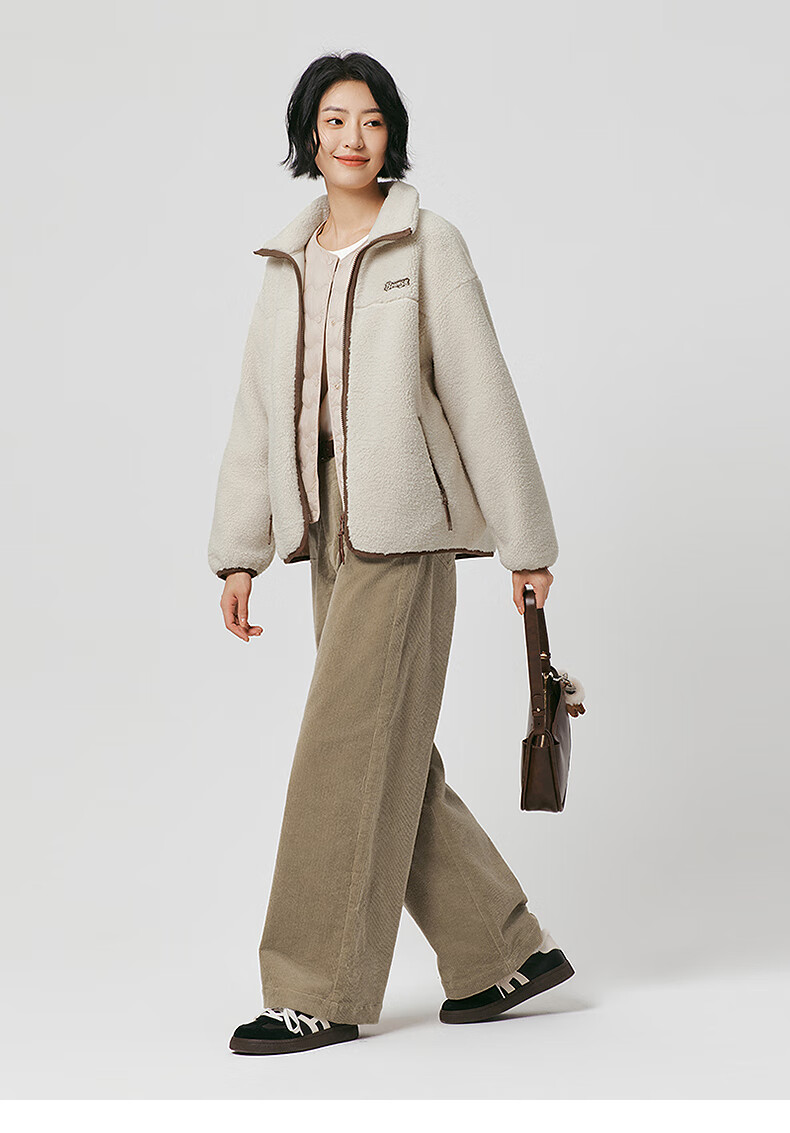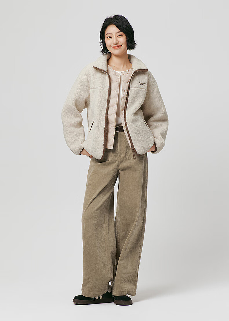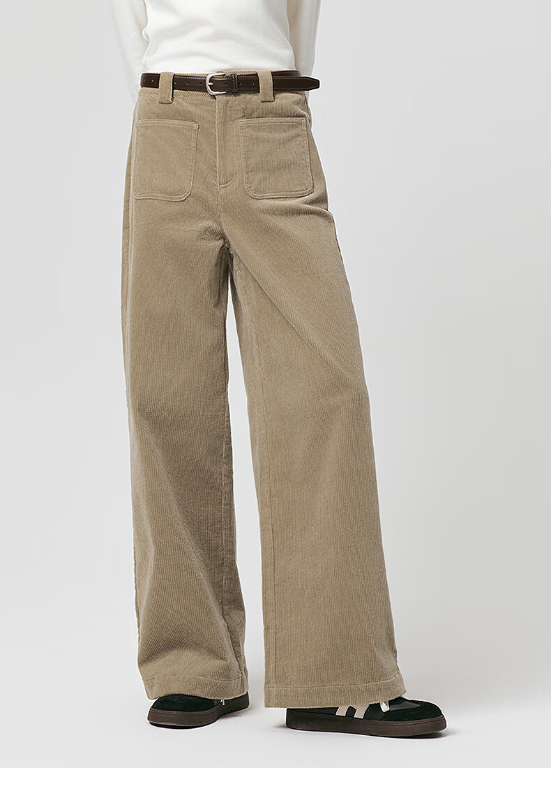 热风(Hotwind)【商场同款】女士长裤灯芯绒休闲裤2025年冬季新款时尚宽松阔腿裤 08杏色 L