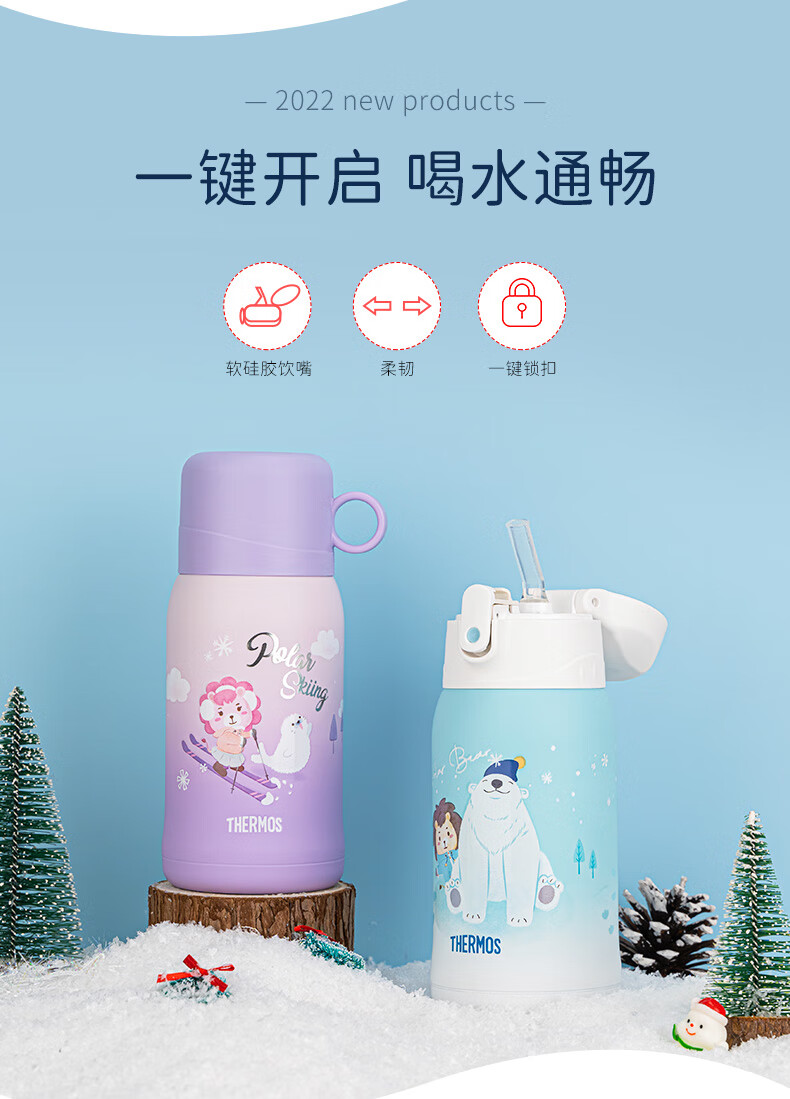 膳魔师(THERMOS)保温杯儿童小学生开学必备大容量吸管杯直饮杯女水壶550ml紫