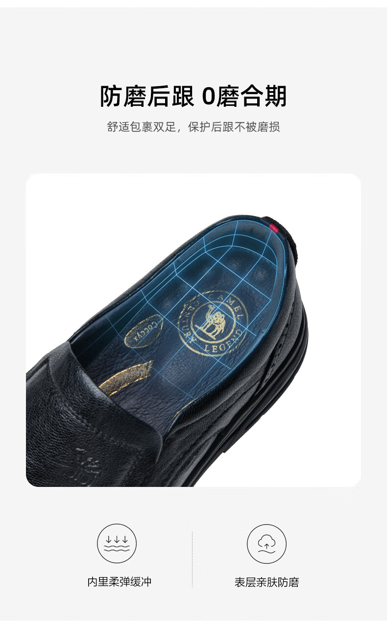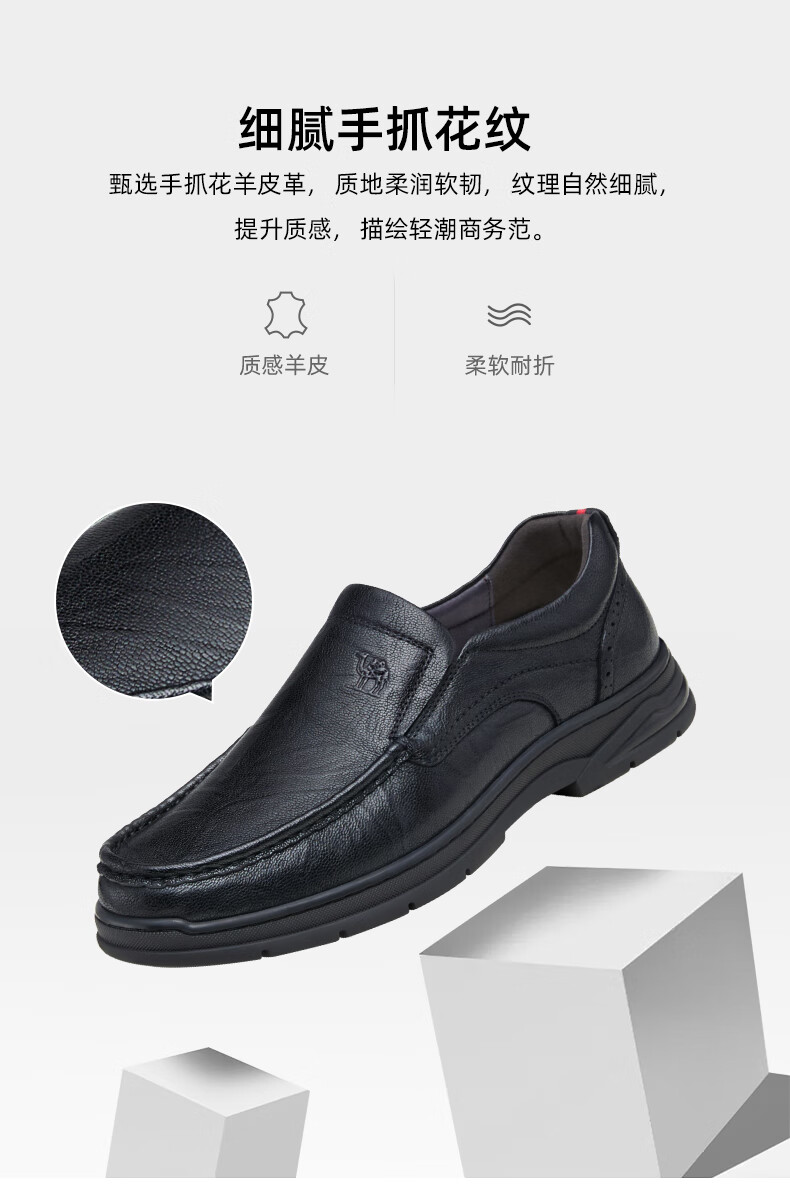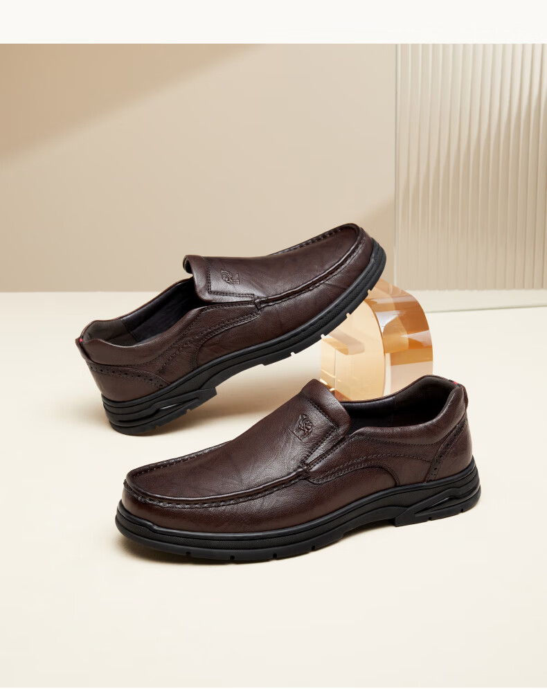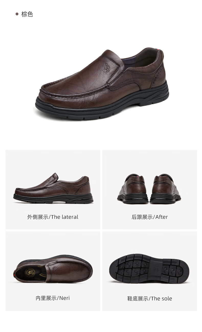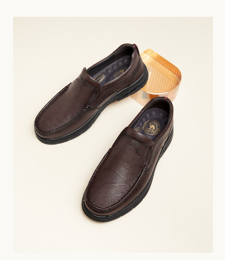 骆驼(CAMEL)软底舒适耐磨套脚中年商务休闲皮鞋男 GE12235379 棕色 40