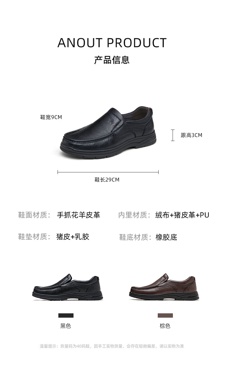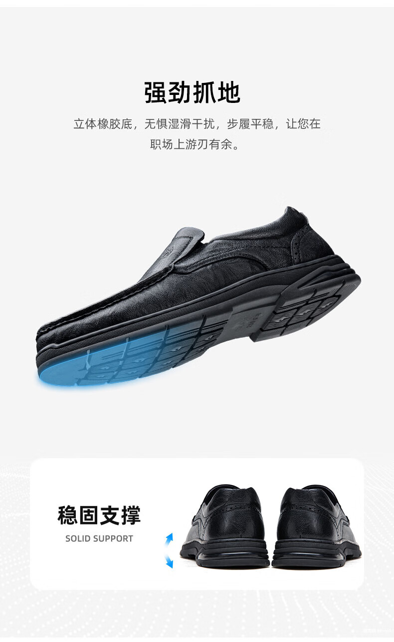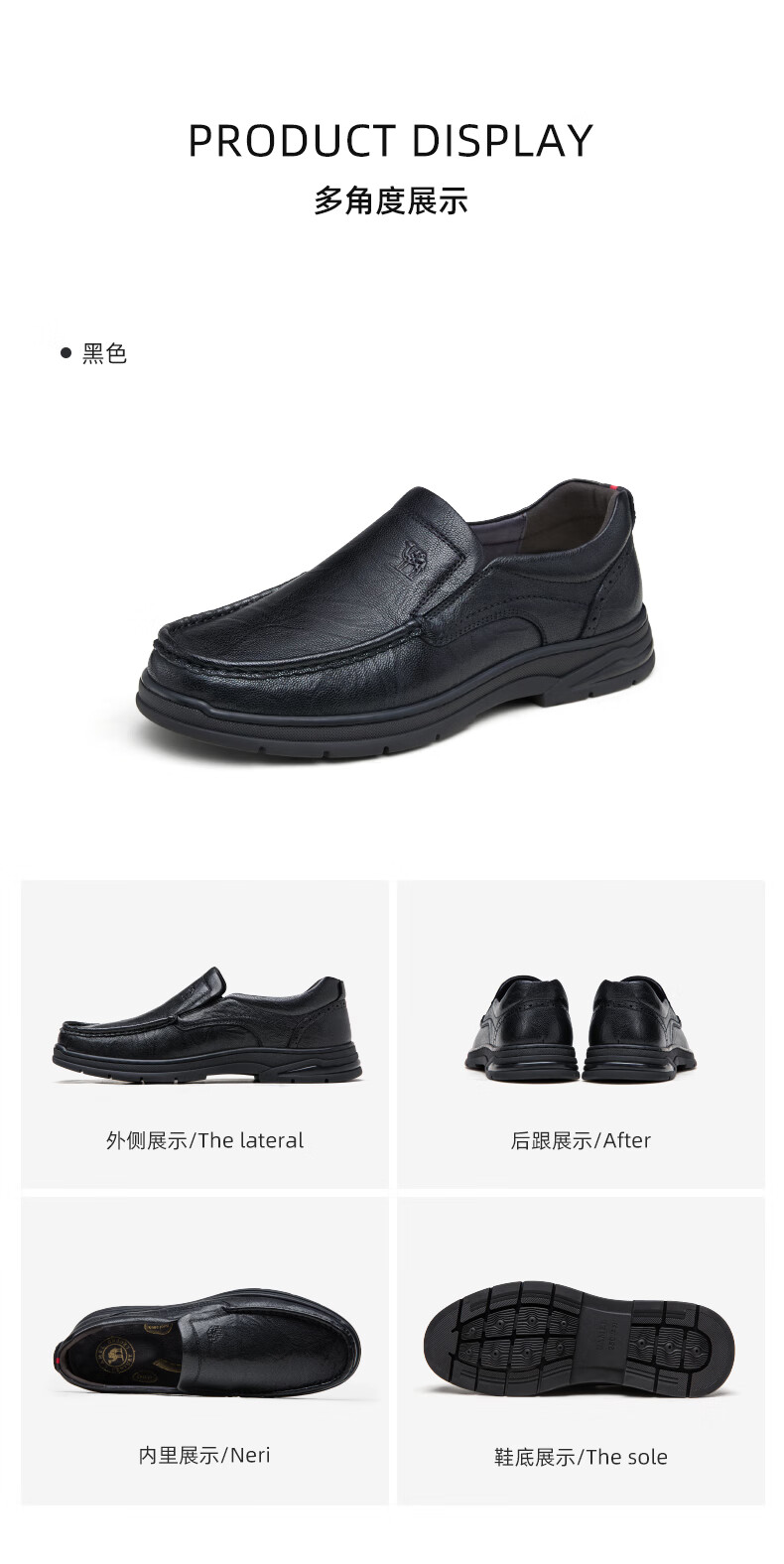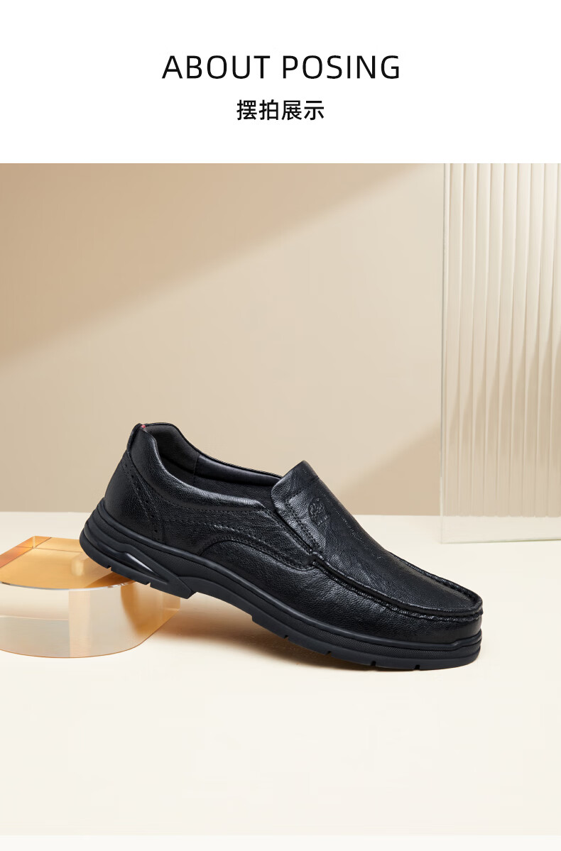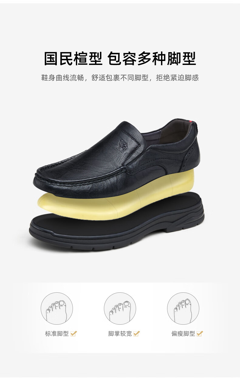 骆驼(CAMEL)软底舒适耐磨套脚中年商务休闲皮鞋男 GE12235379 棕色 40