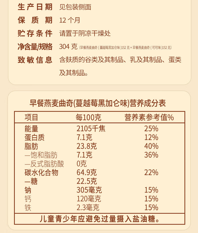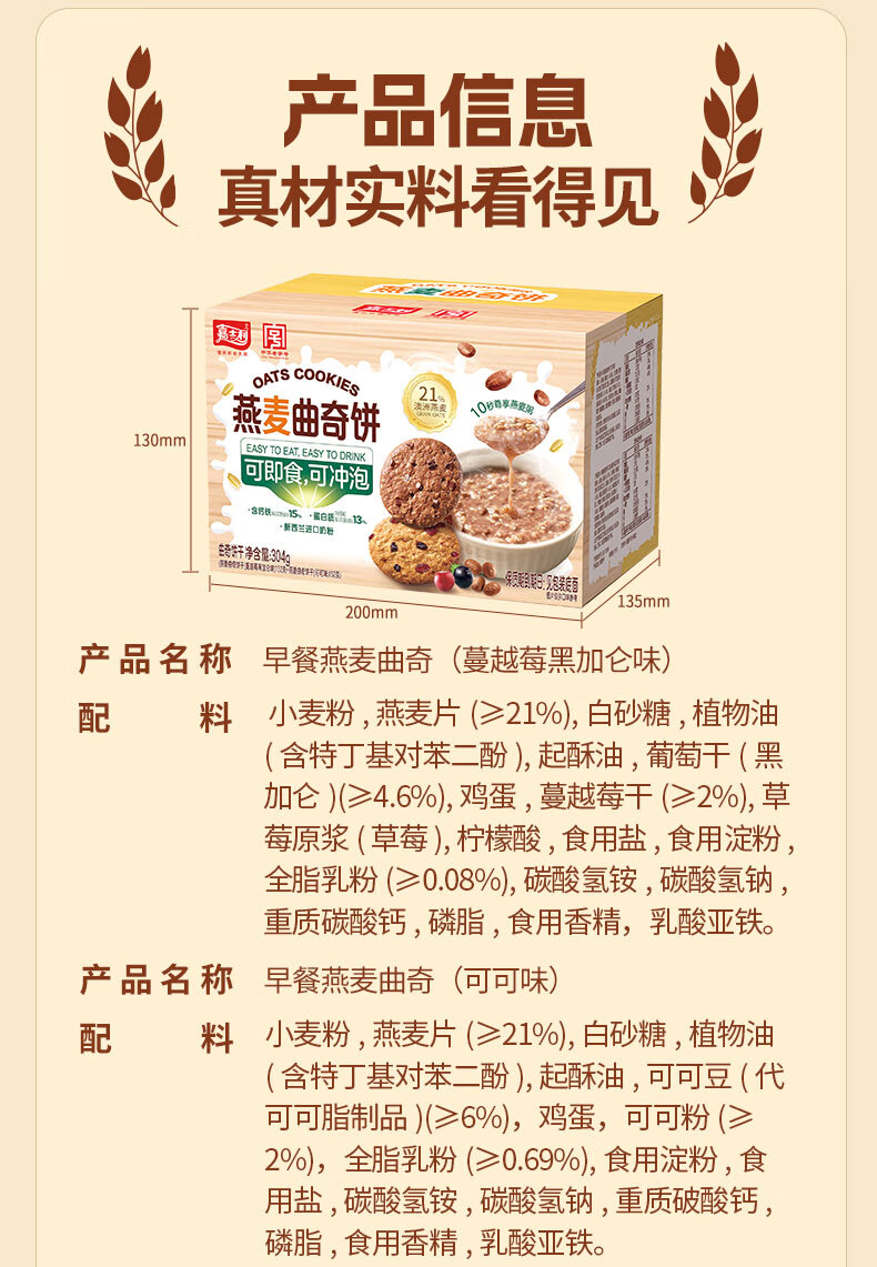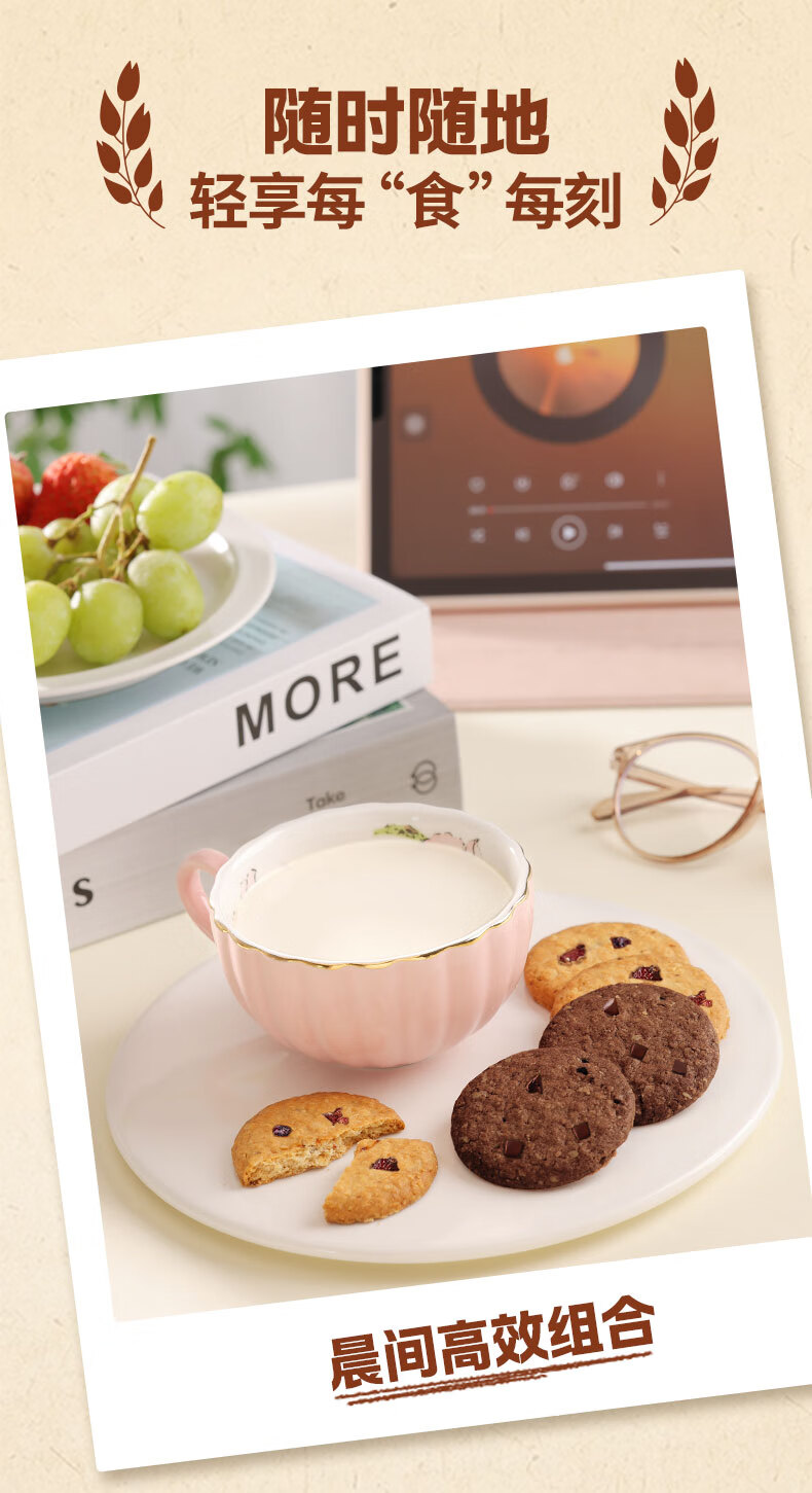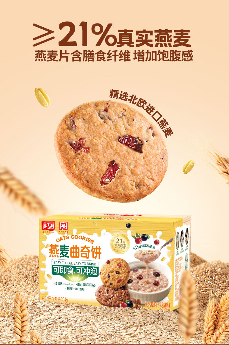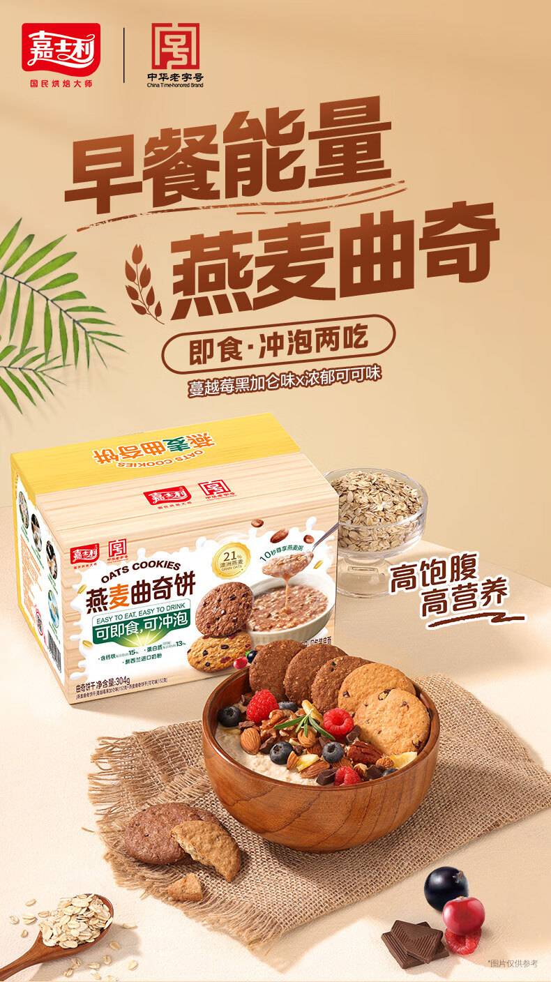 嘉士利早餐燕麦曲奇饼干混合口味304g 办公室下午茶休闲零食代餐饱腹