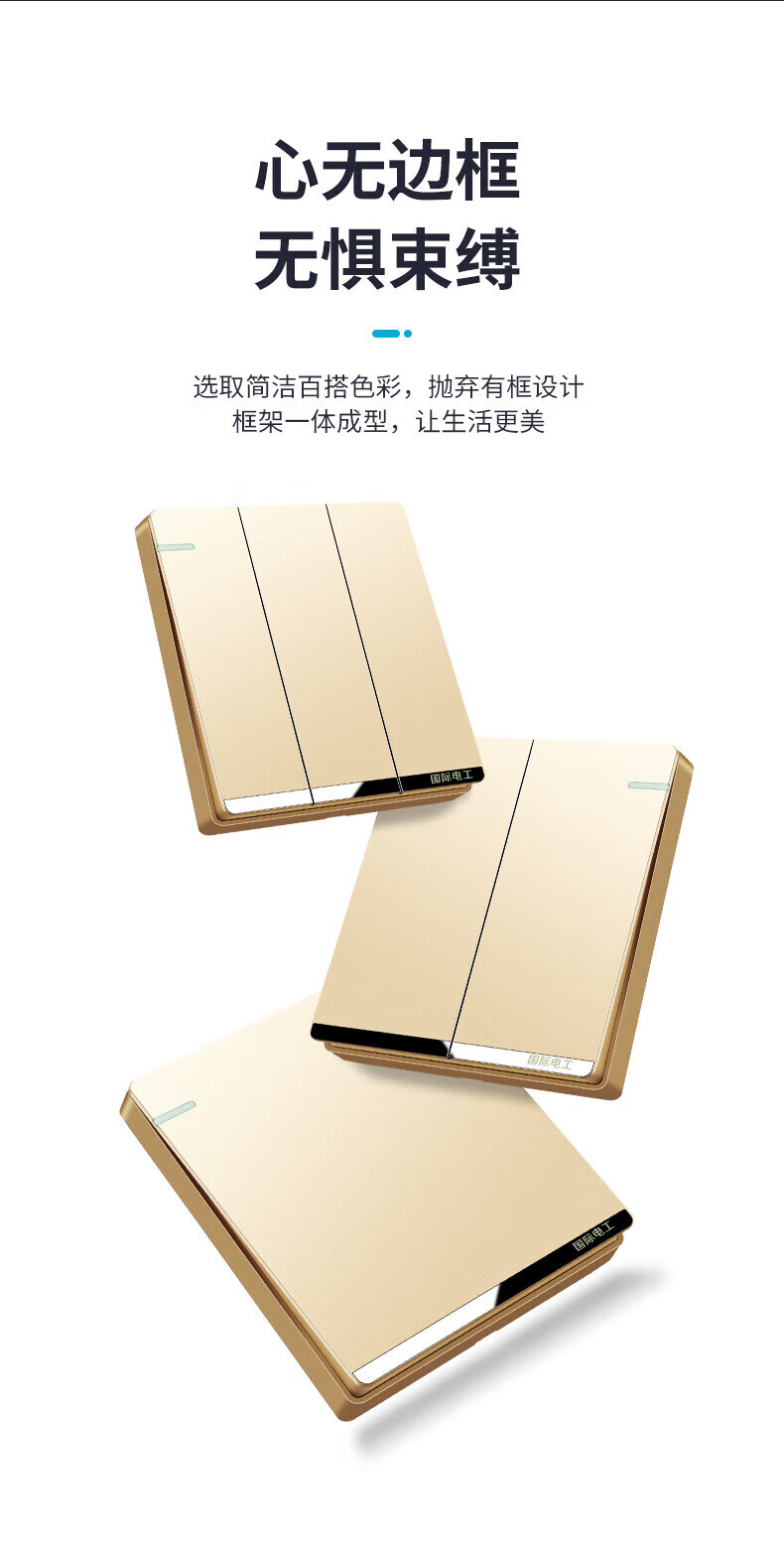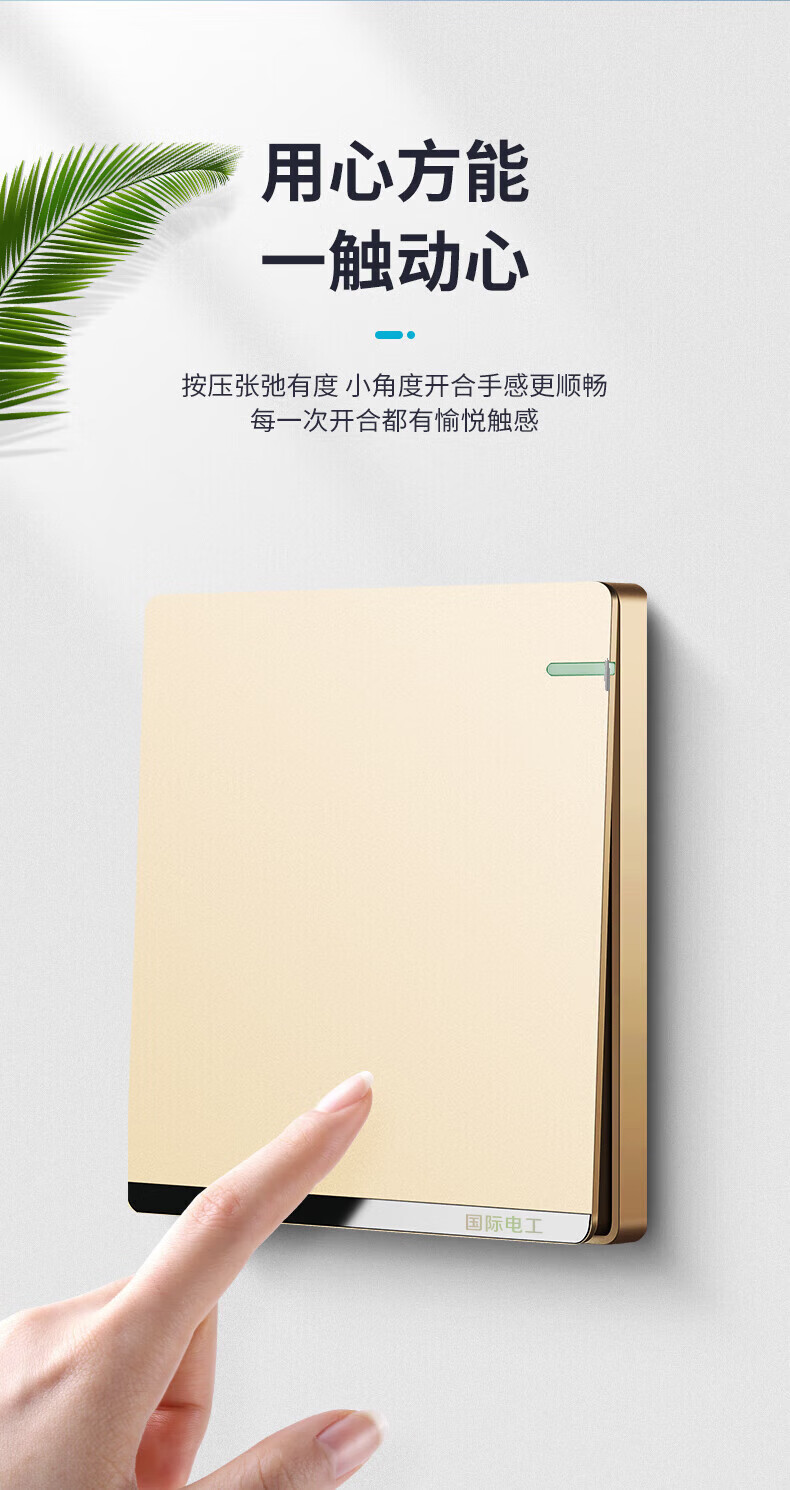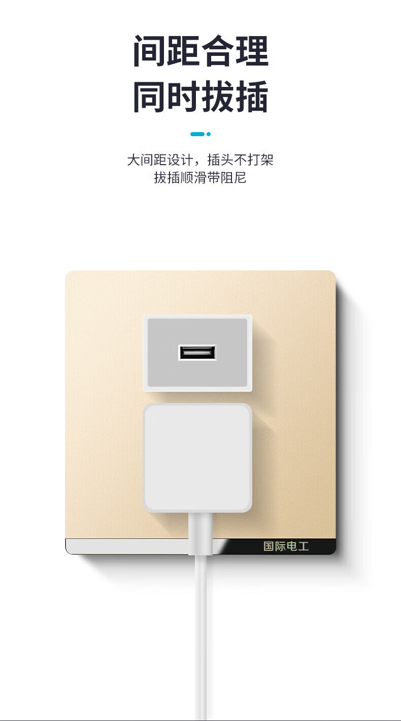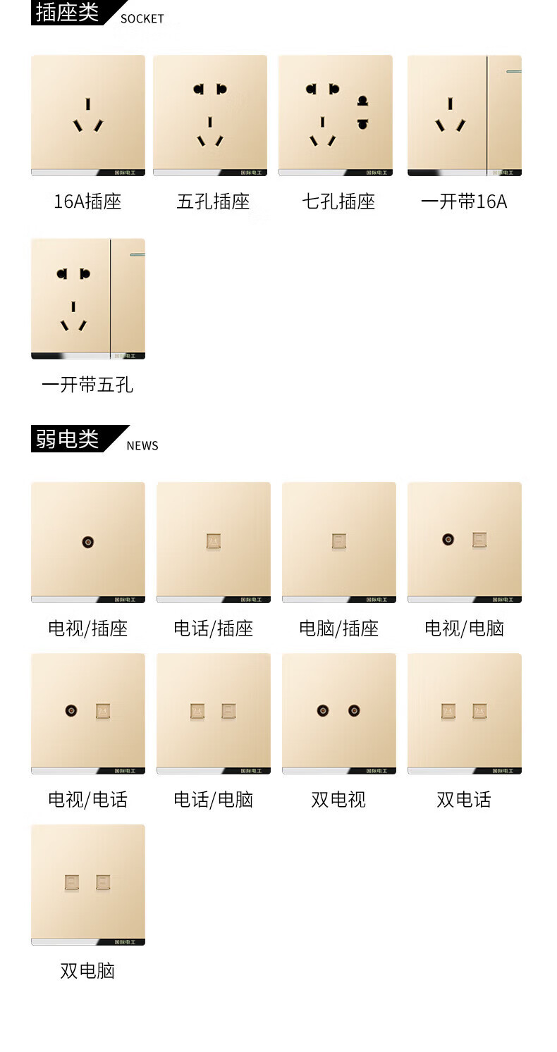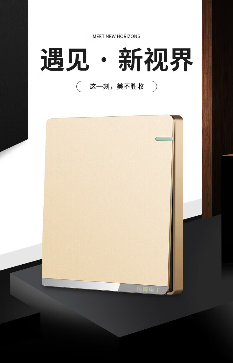 国际电工86型家用香槟金色开关插座面板暗装墙壁一开带5五孔USB多孔电源 一开五孔单控