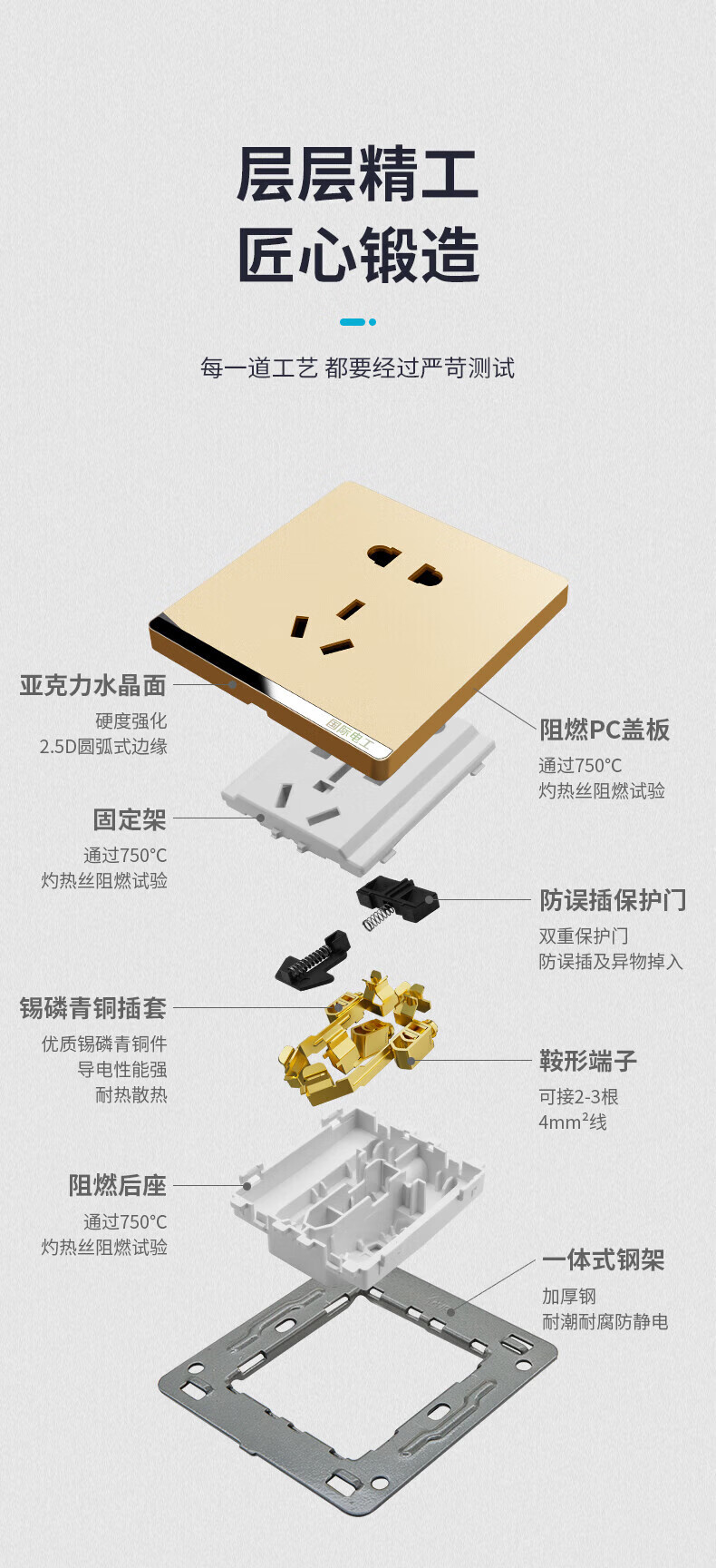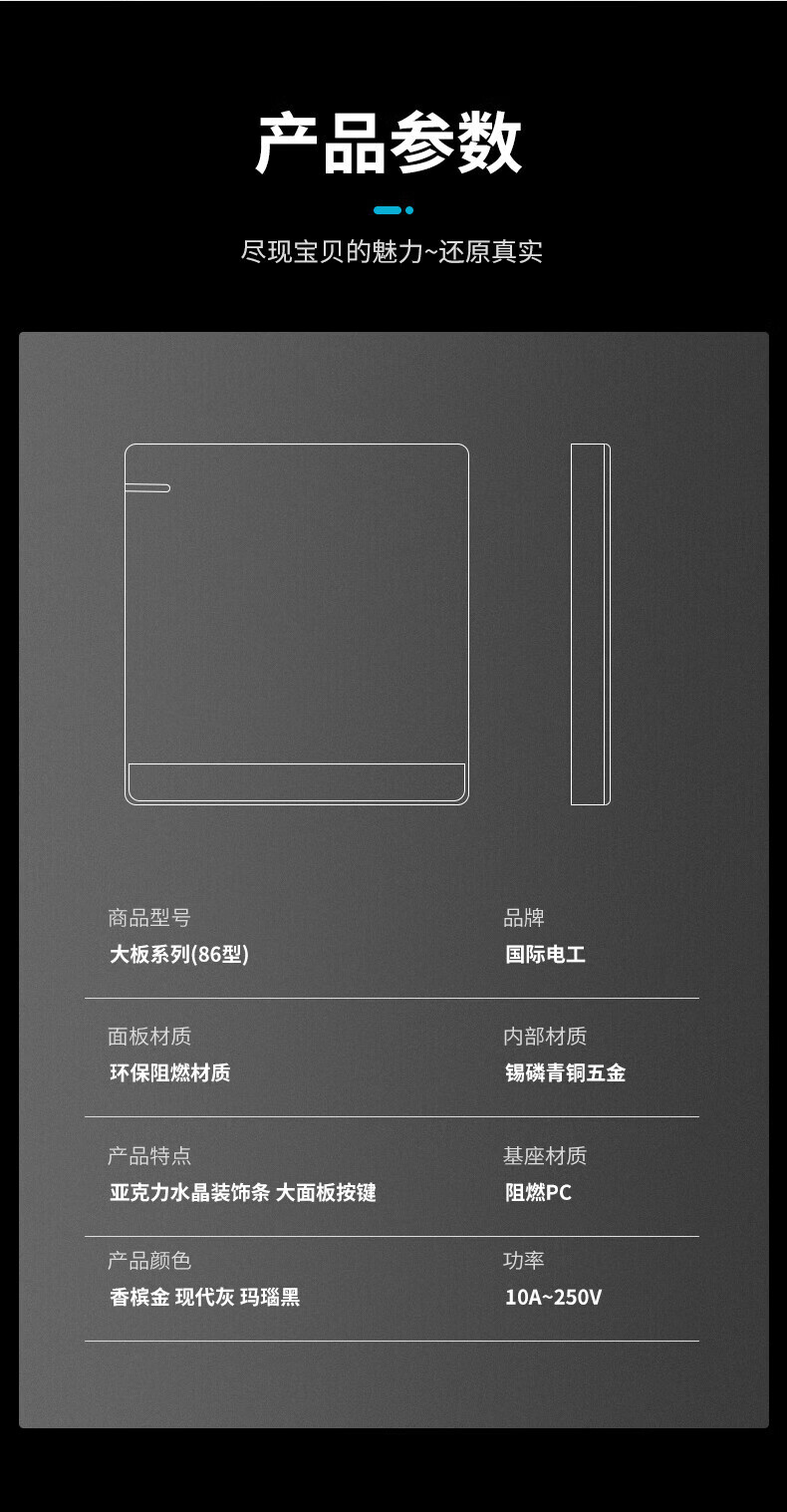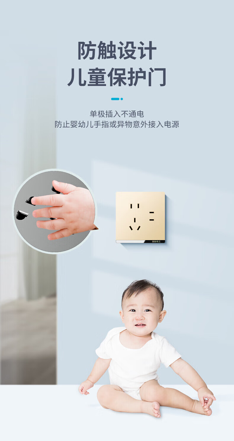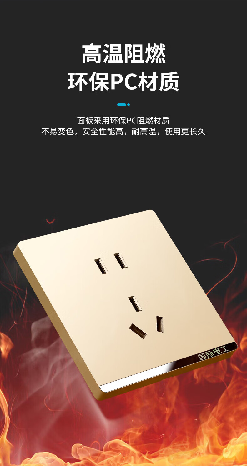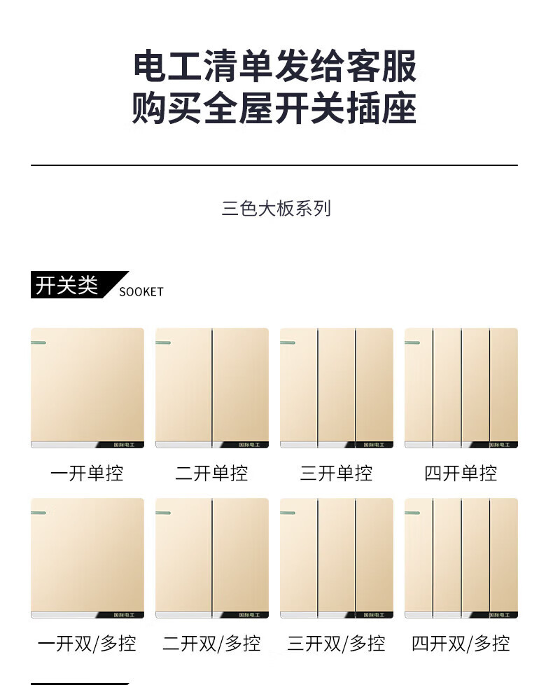 国际电工86型家用香槟金色开关插座面板暗装墙壁一开带5五孔USB多孔电源 一开五孔单控
