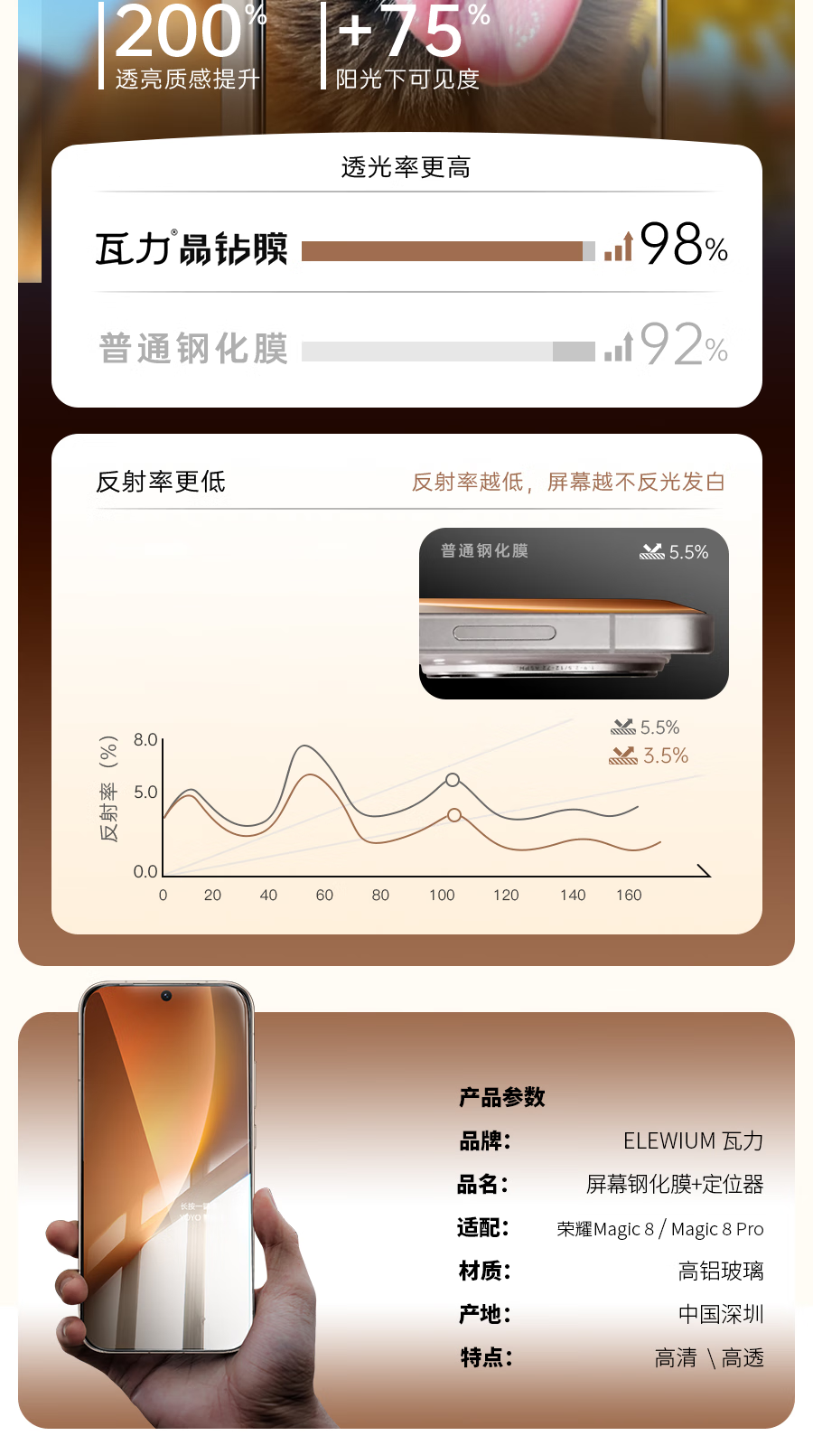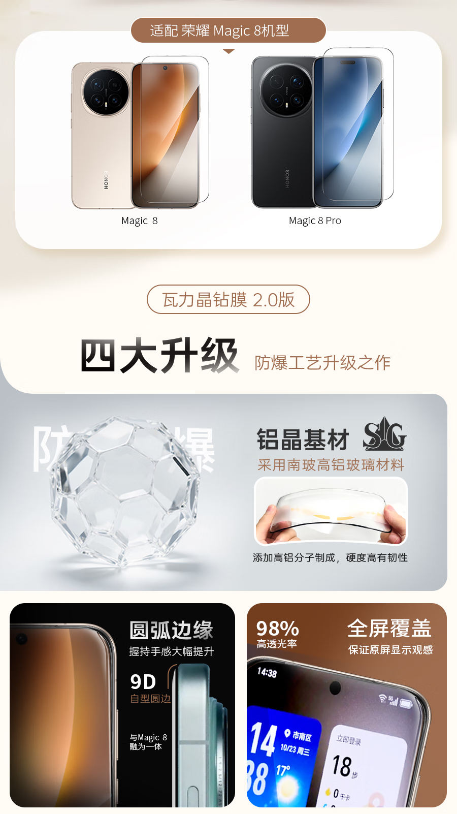 瓦力【全胶钢化膜】适用荣耀magic8pro钢化膜全胶高清玻璃HONOR Maigc8Pro手机保护防摔3D抗指纹-带舱