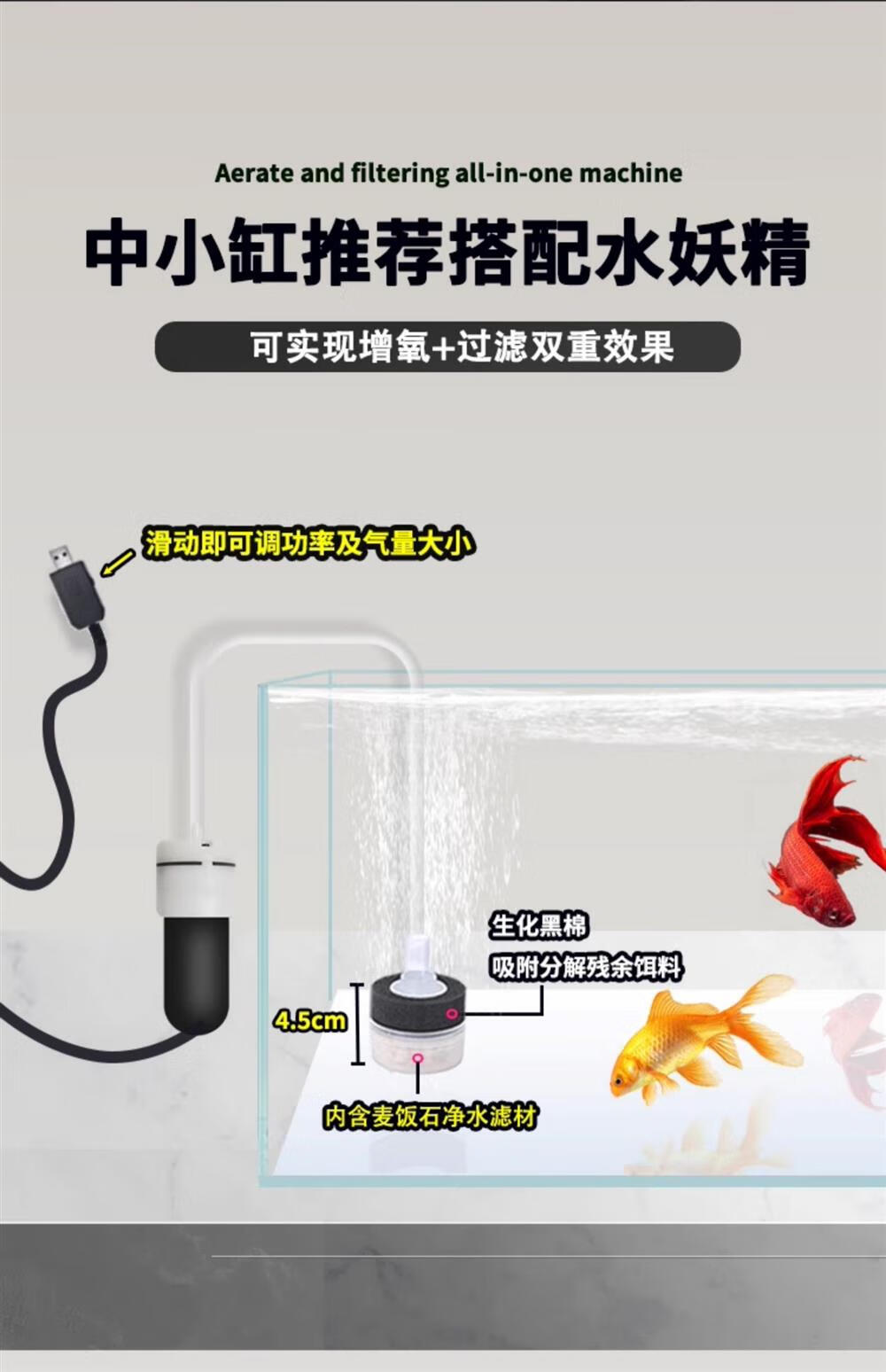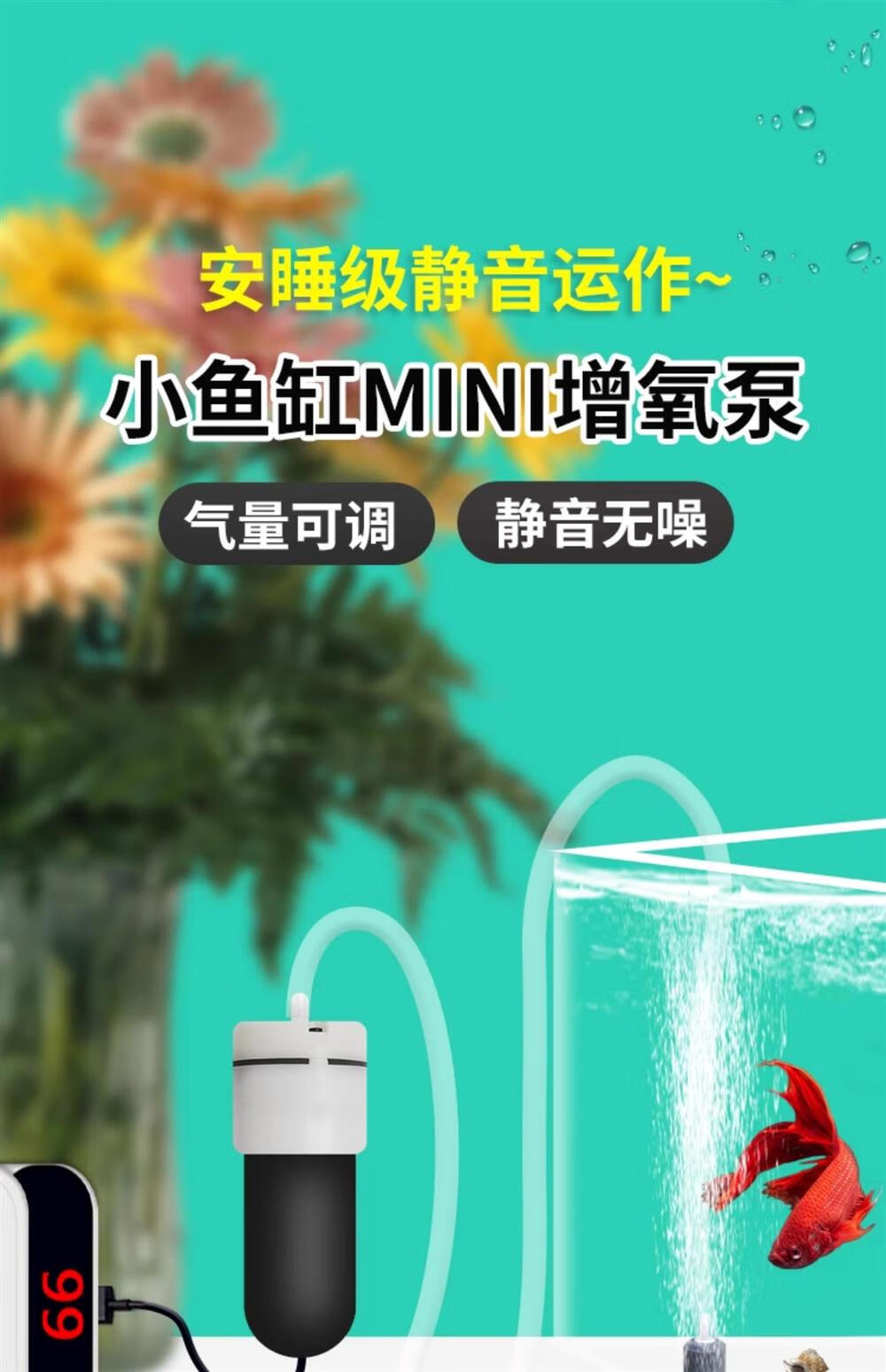 DEATKN德国迷你小氧气泵养鱼小型鱼缸打氧泵超静音金鱼供氧器无声增氧棒 【超静音款】配单气石(不静包退)气量可调