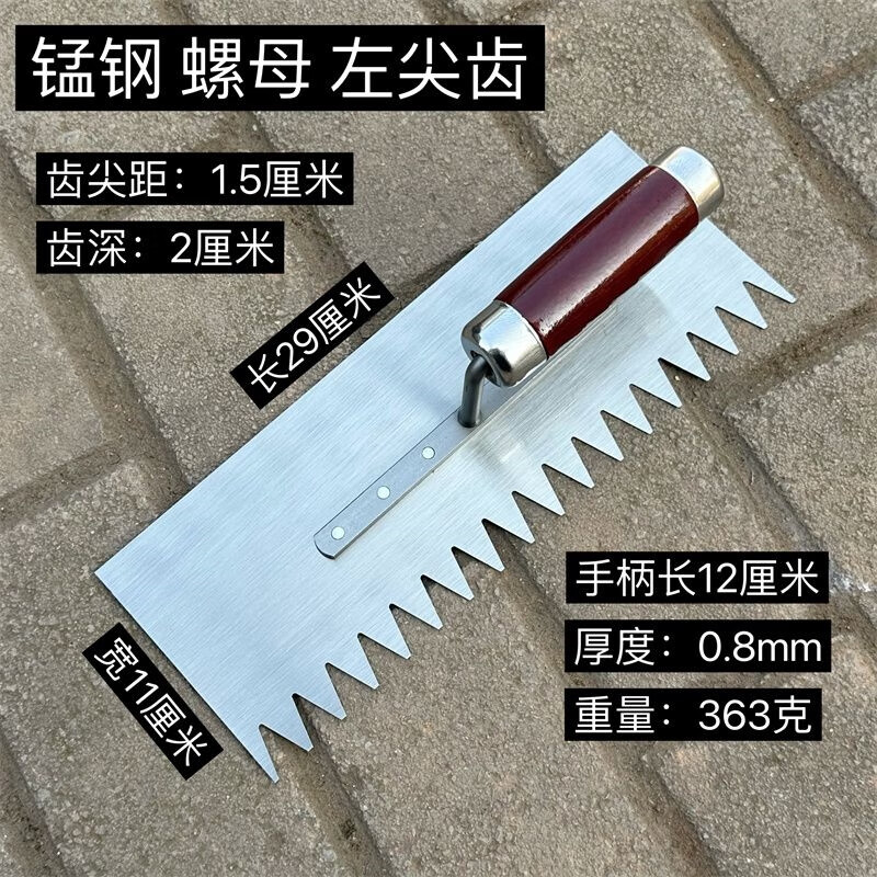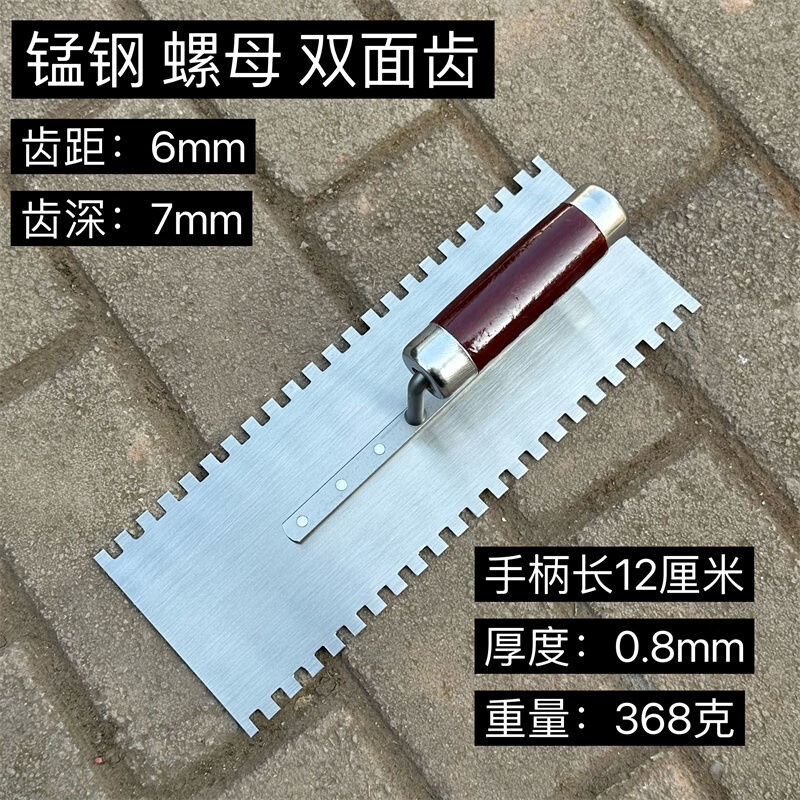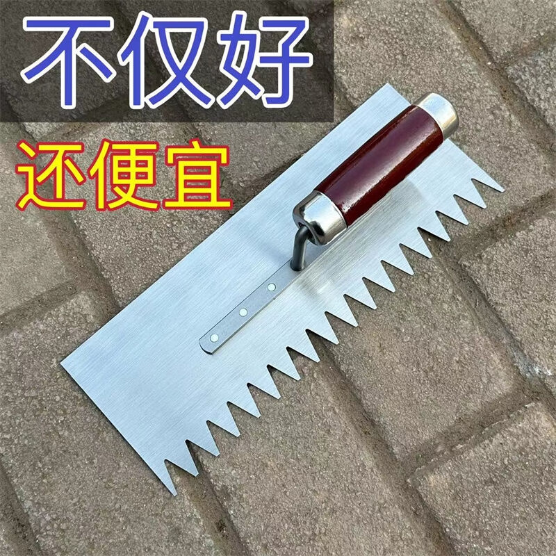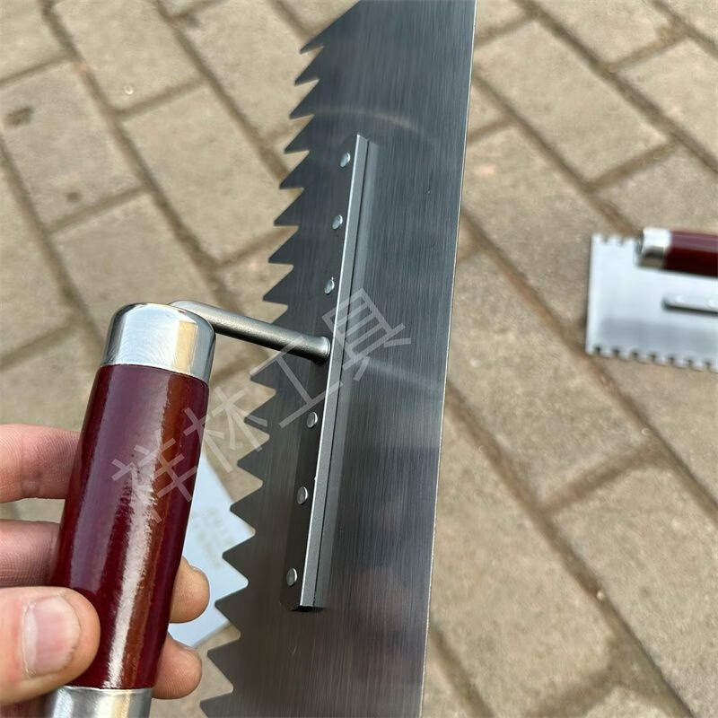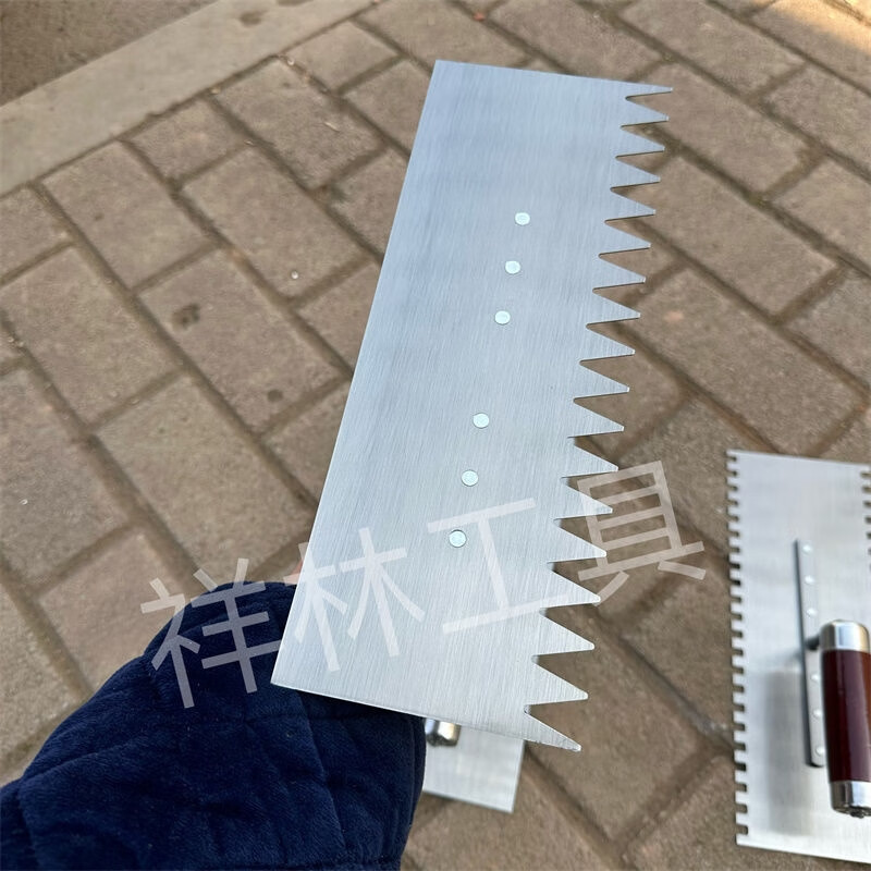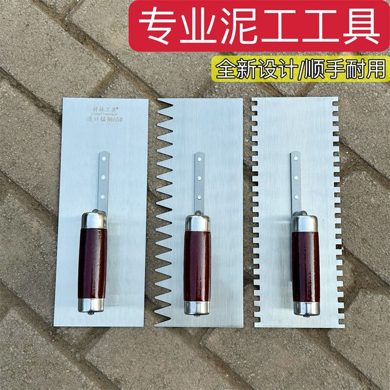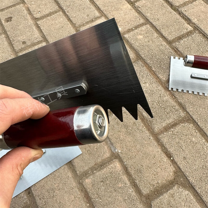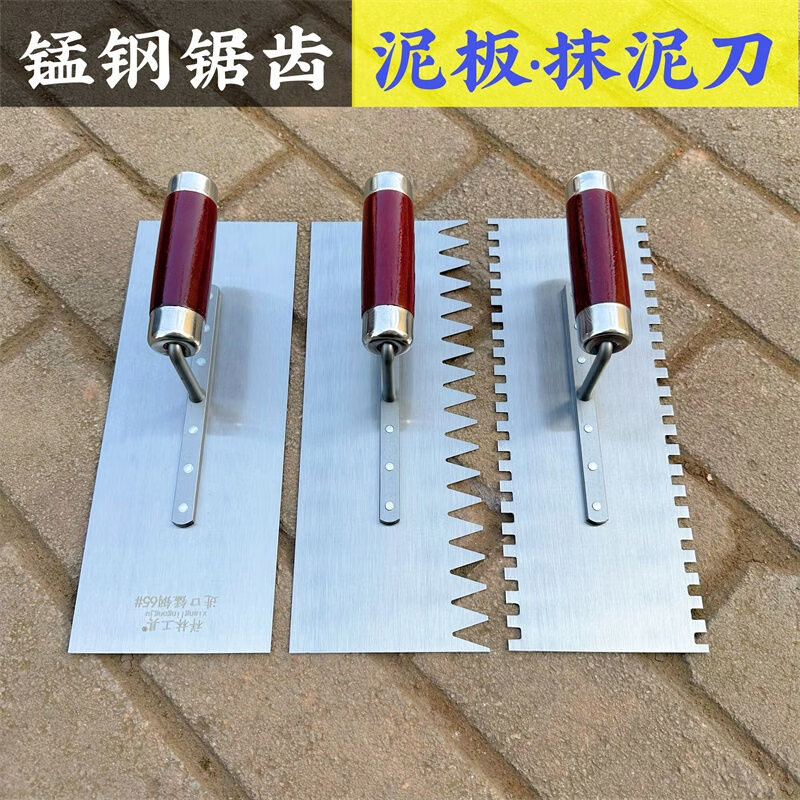 山头林村抹灰铁板带齿锰钢锯齿泥板 铺贴瓷砖抹泥刀 抹灰刀抹泥子 泥板(红把)