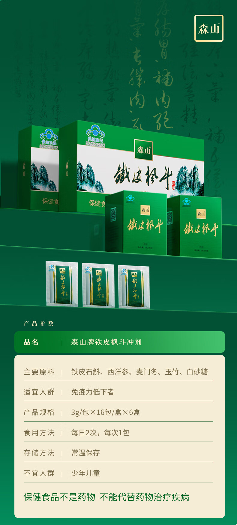 森山 铁皮枫斗 冲剂 石斛粉 3g/包*16包/盒*6盒 【双十一套组囤货】