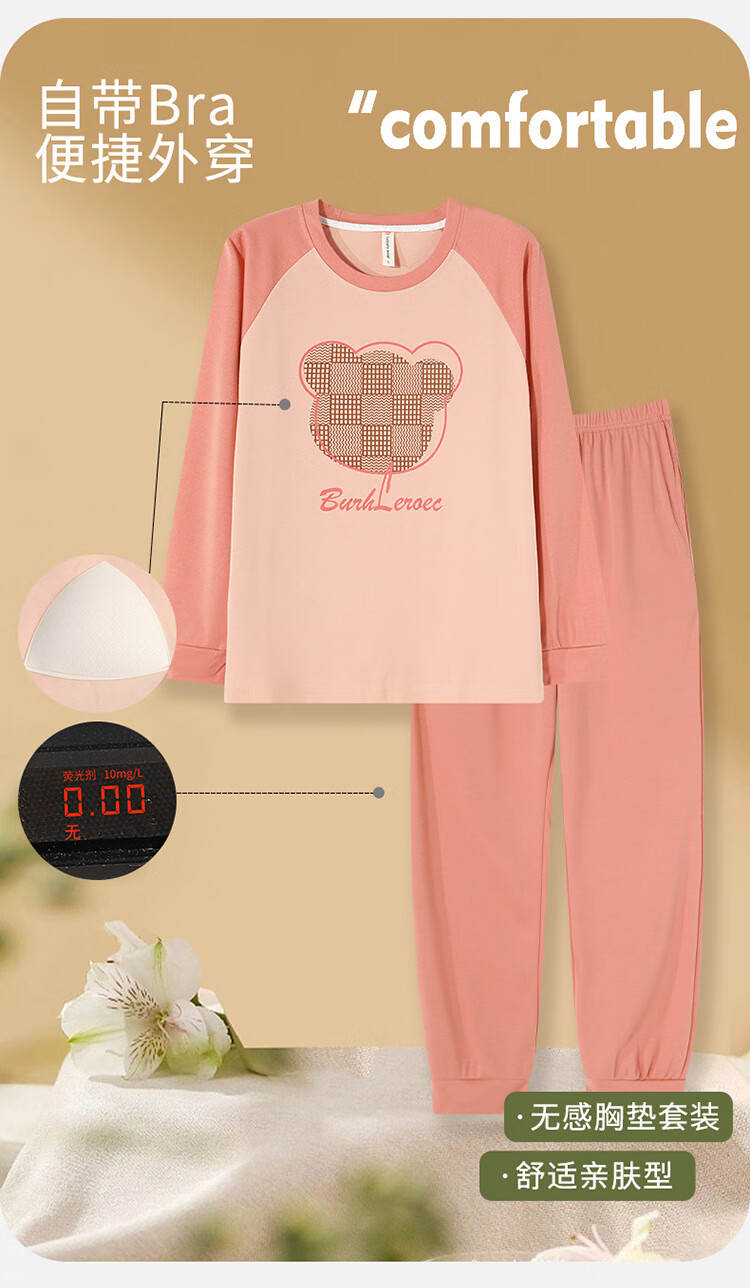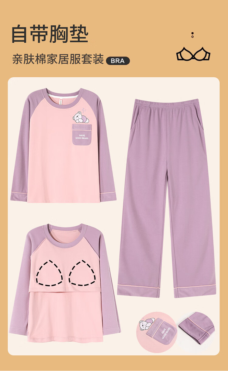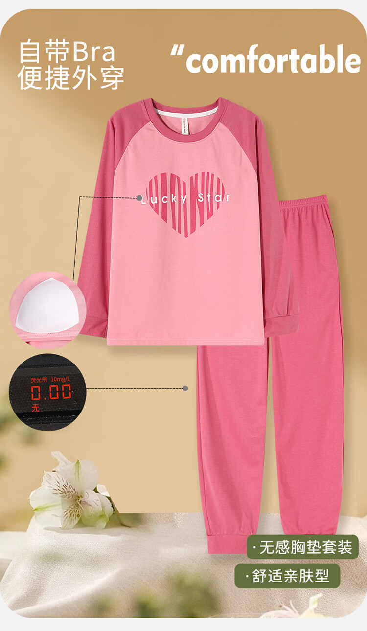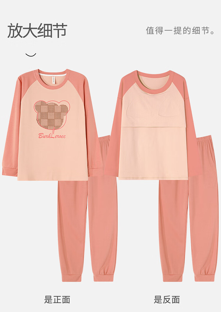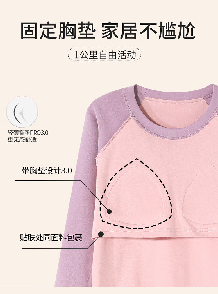 DAPHNE达芙妮【N】睡衣女秋冬季带胸垫长袖长裤孕妇拼色休闲可家居套装 XJM-2474女 2XL(135-155斤)带胸垫套装
