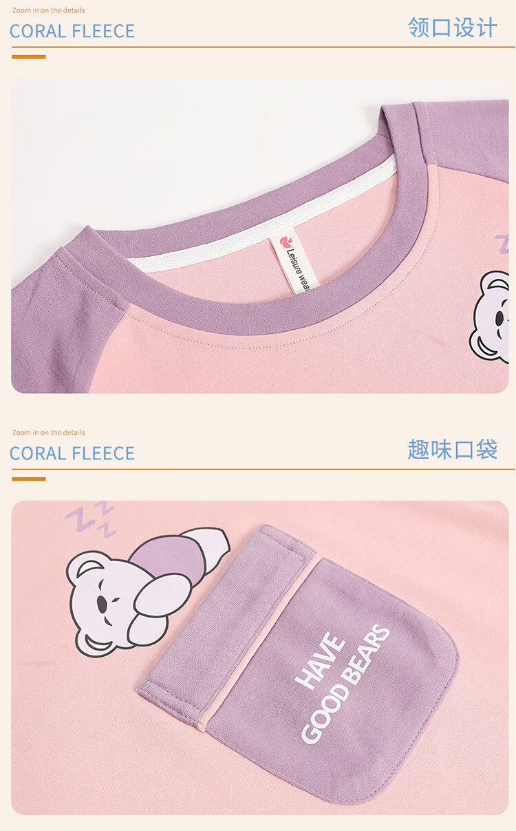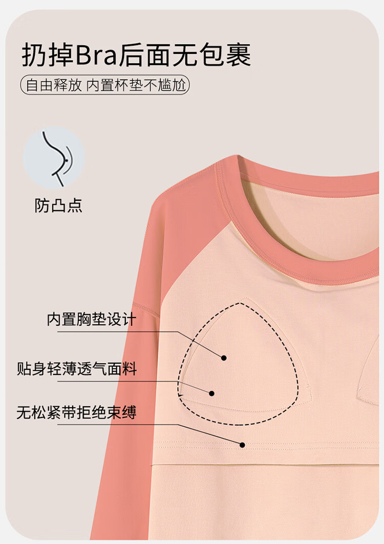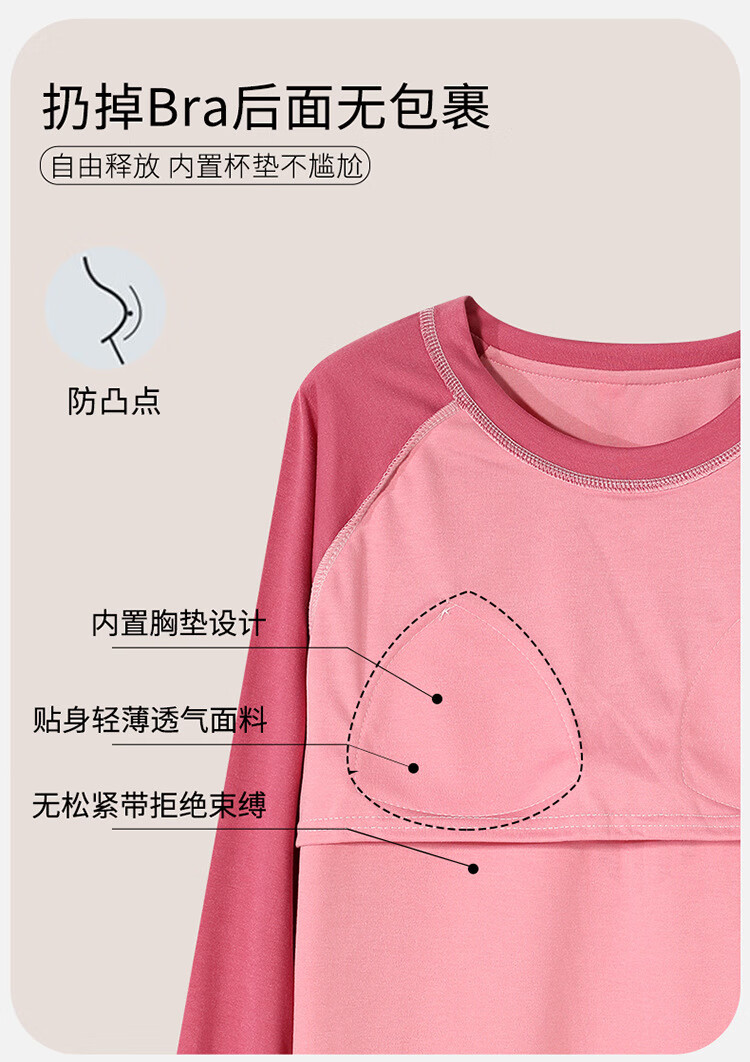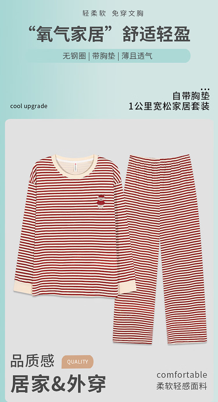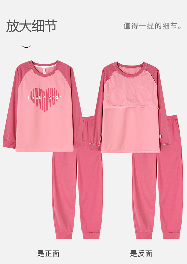 DAPHNE达芙妮【N】睡衣女秋冬季带胸垫长袖长裤孕妇拼色休闲可家居套装 XJM-2474女 2XL(135-155斤)带胸垫套装