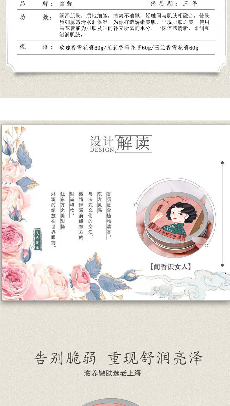 YUHOO老上海雪花膏精油乳液补水保湿面霜护手霜秋冬滋润防干裂清爽不腻 雪花膏 60g *1盒