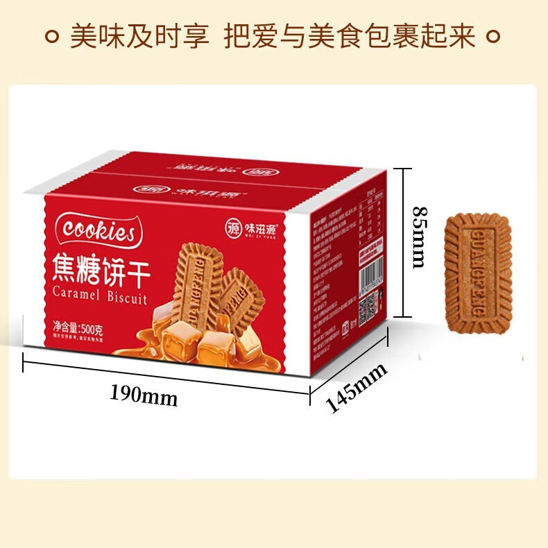 味滋源网红办公室休闲小吃 饱腹代餐早点糕点美食特产零食 焦糖饼干500g 1件装