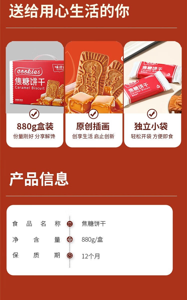 味滋源焦糖饼干 早餐糕点零食饼干 焦糖味曲奇饼干 焦糖饼干 880g手提礼盒 1箱