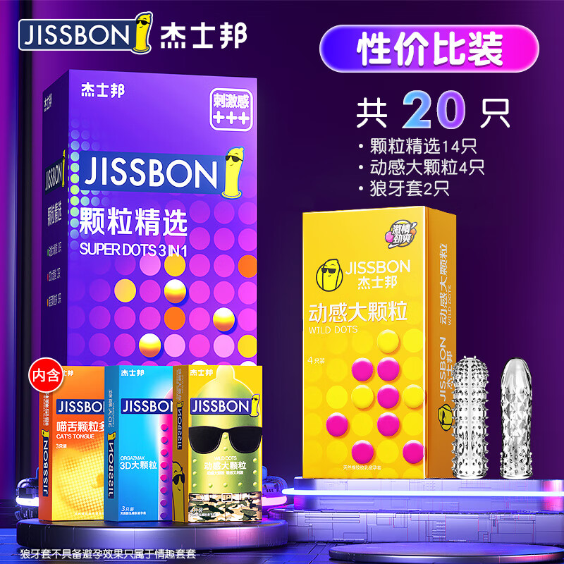 杰士邦 避孕套狼牙套棒安全套女性秒喷持久大颗粒狼牙套超薄情趣套用品 情趣尝鲜【共22只】颗粒6只+超薄16只