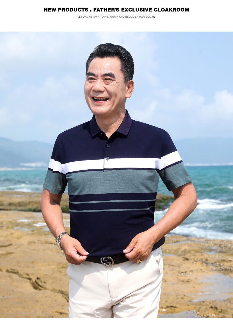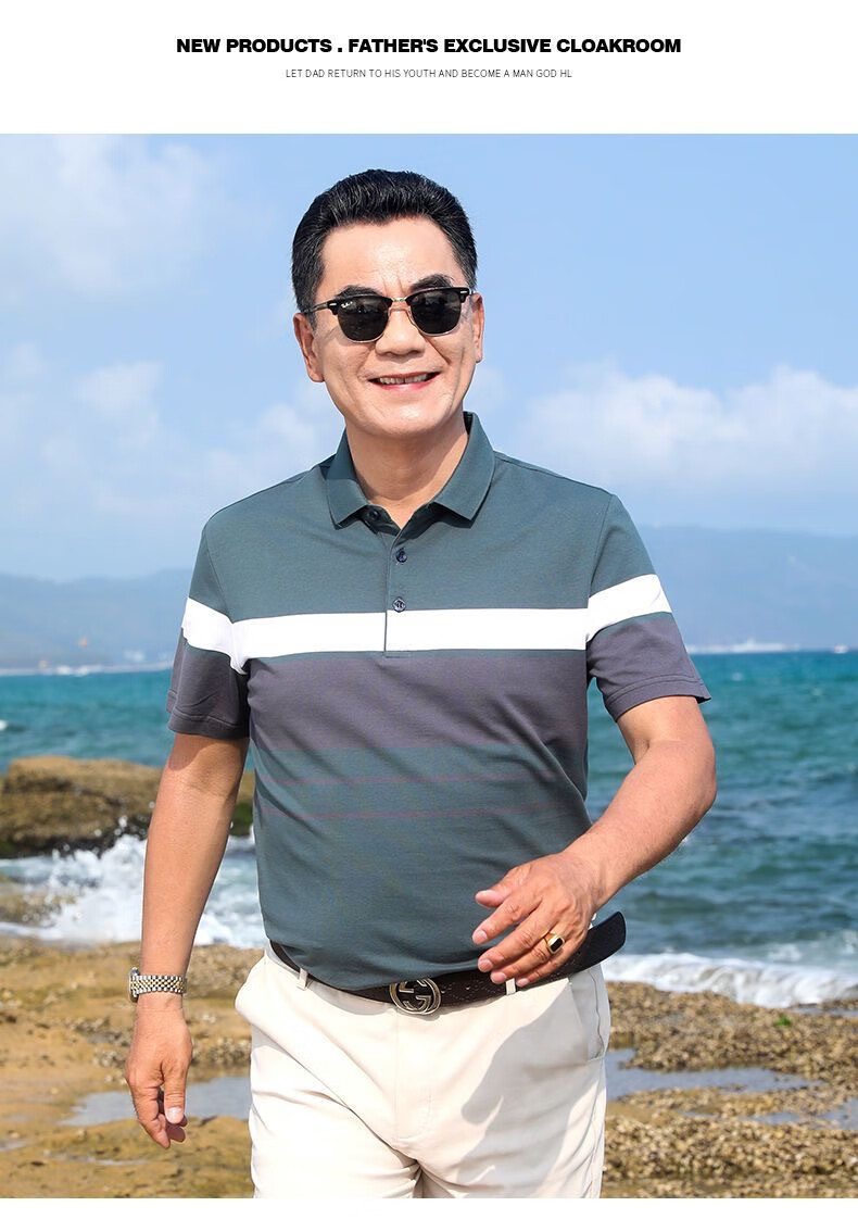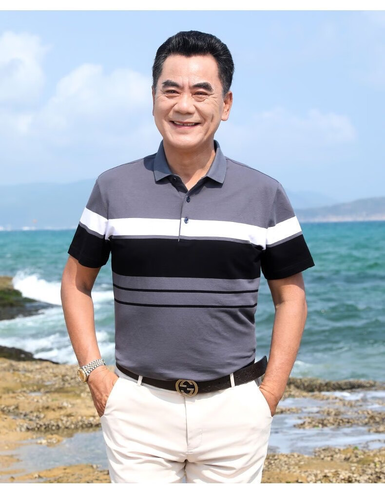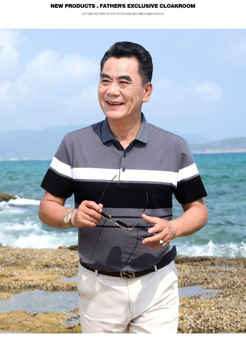 【厂家直供】爸爸夏装短袖t恤中老年人男装丝光棉上衣中年男士休 灰色 185建议180-200斤 均码