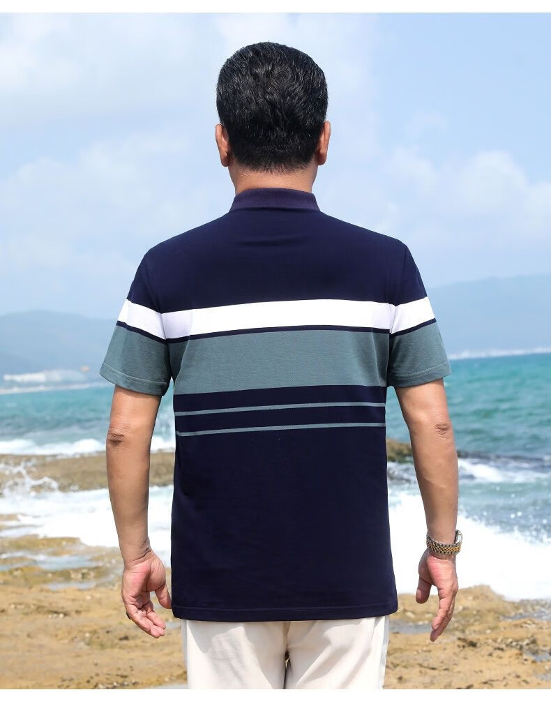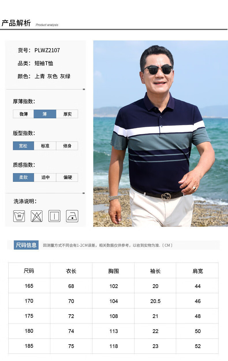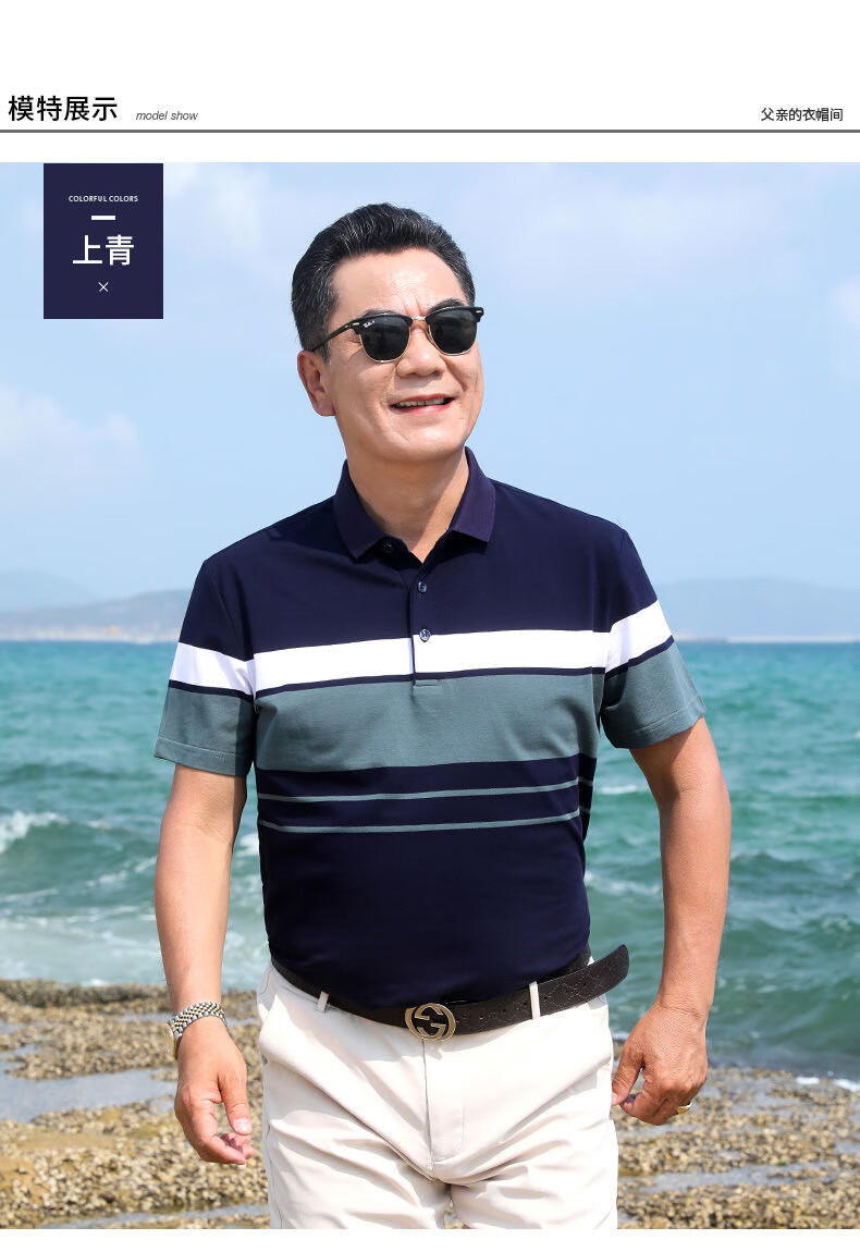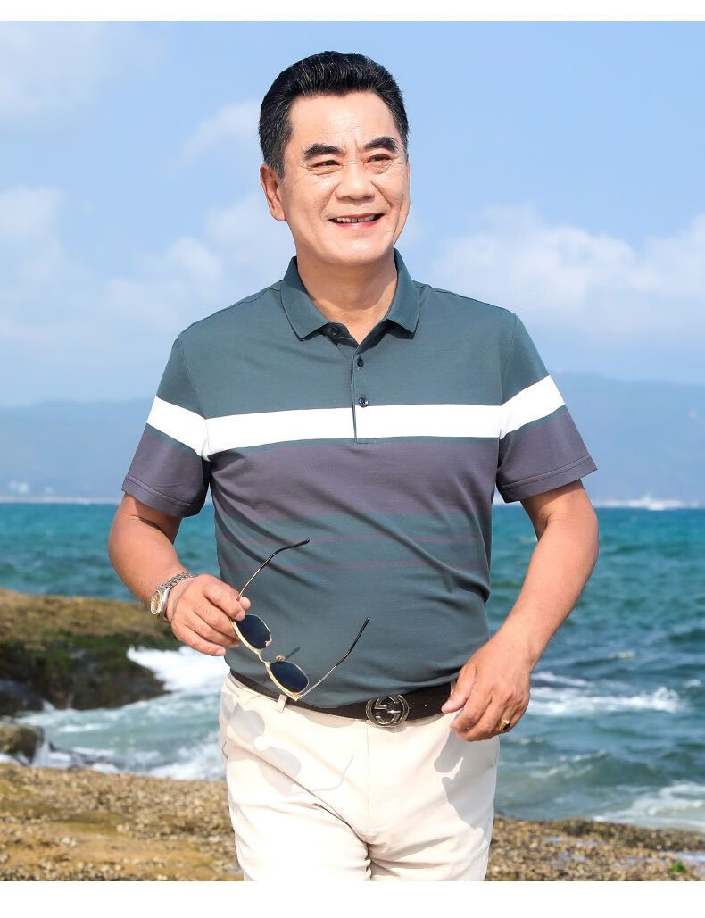 【厂家直供】爸爸夏装短袖t恤中老年人男装丝光棉上衣中年男士休 灰色 185建议180-200斤 均码