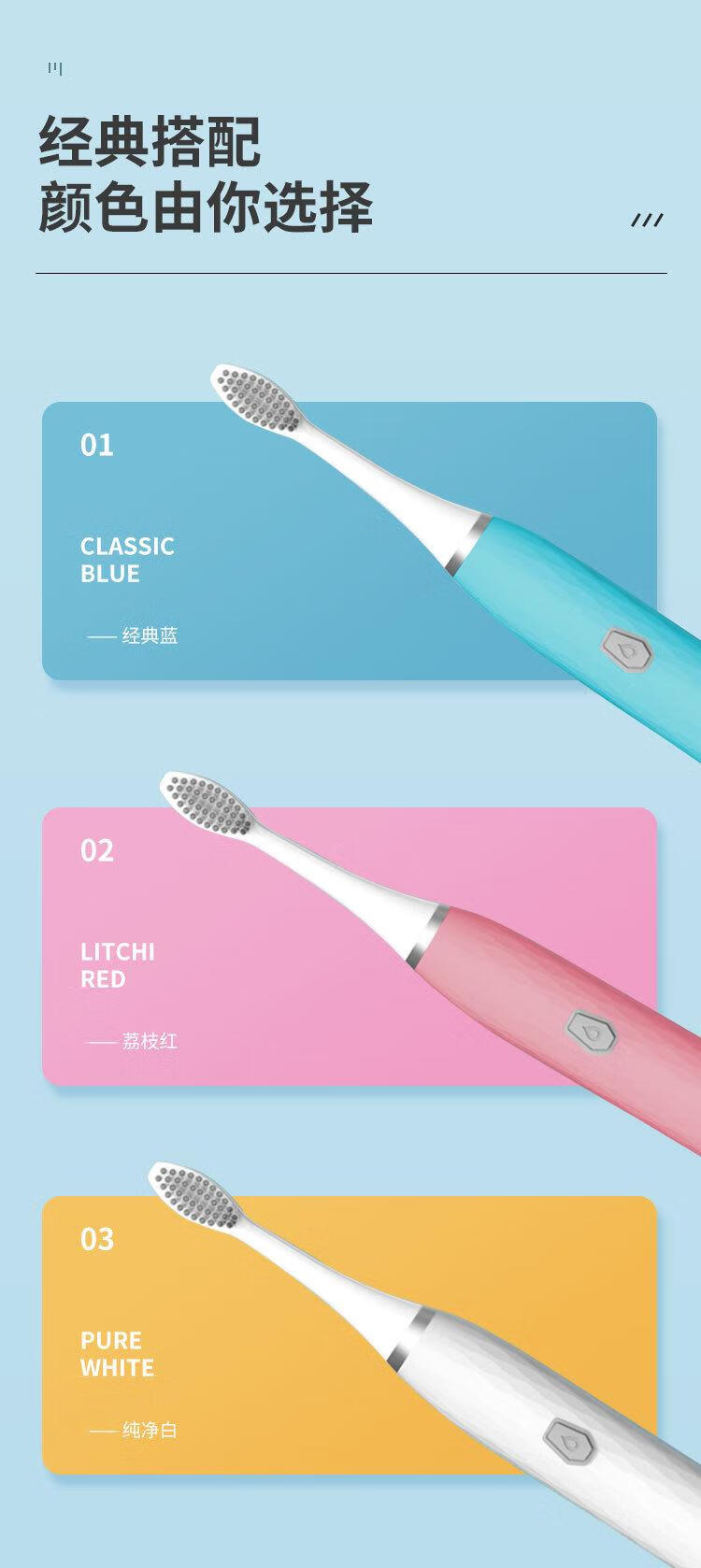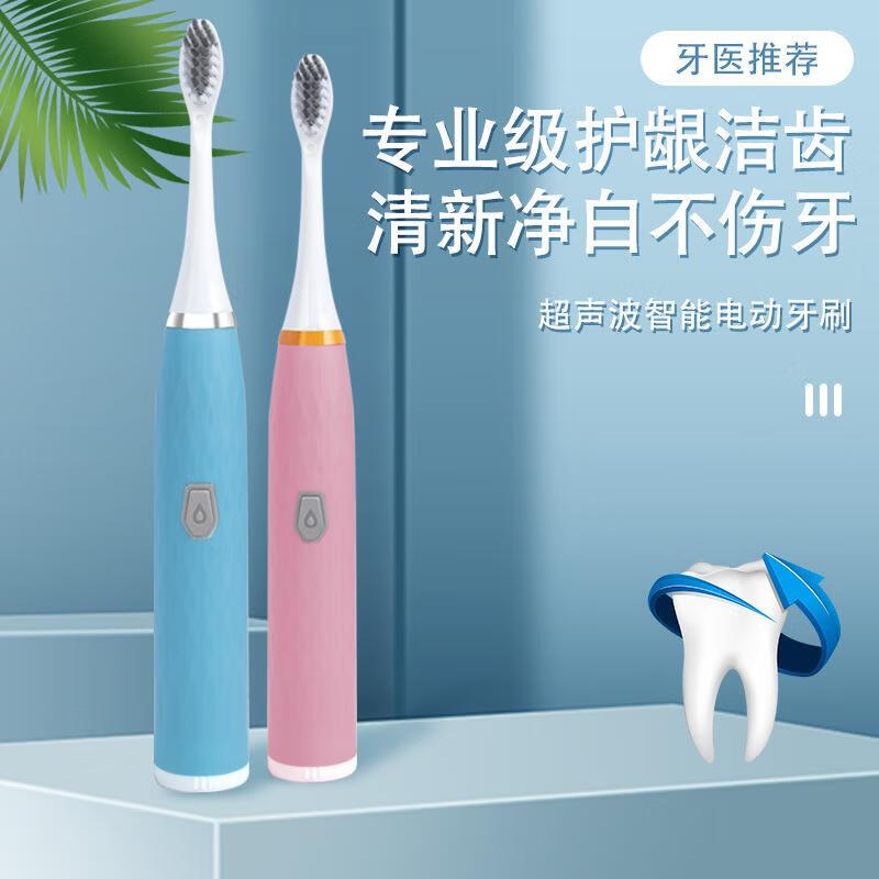 星闪亮【精选好物】智能电动牙刷软毛旅行家用USB充电式多档位 (电池款)靓丽白+1刷头