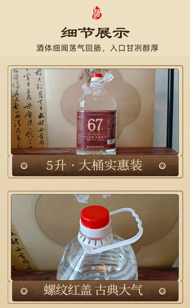 衡雅衡水特产老白干67度高粱酒纯粮食酒口粮散装白酒桶装10斤自饮泡酒 67度 5L 1桶 【品鉴2号 拍5桶发6桶】