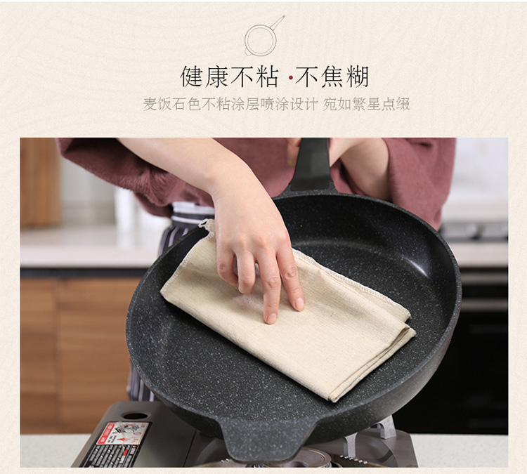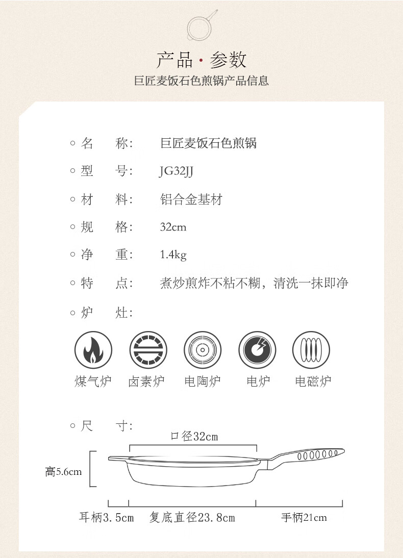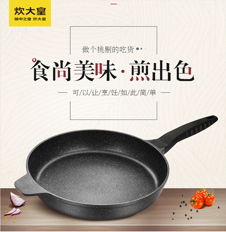 炊大皇平底锅不粘锅32cm麦饭石色煎锅不糊煎饼煎饺煎蛋电磁炉明火通用JG32JJ 32cm超大口径4-6口适用