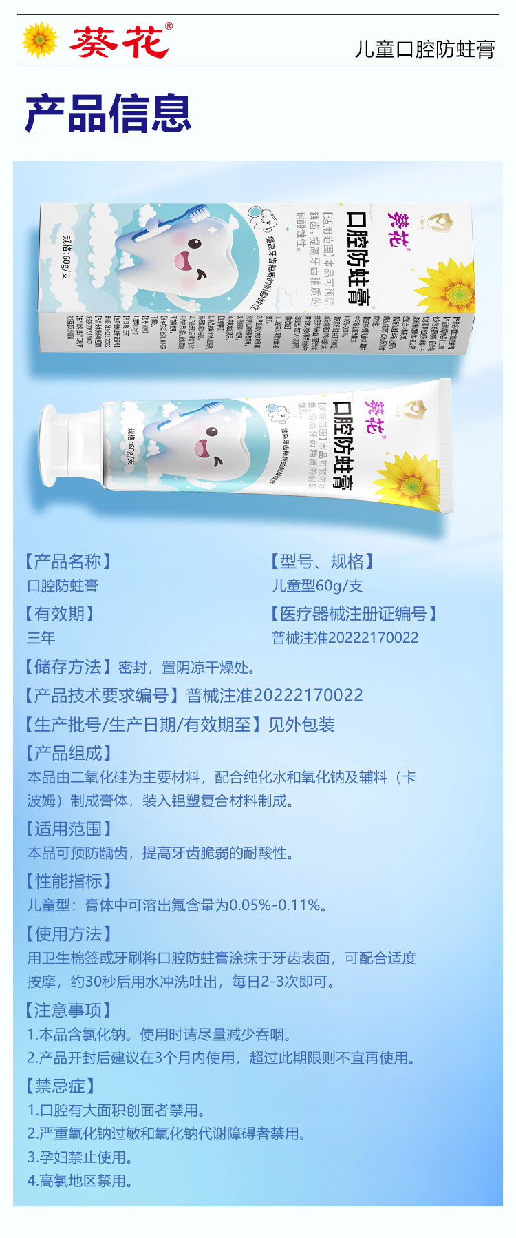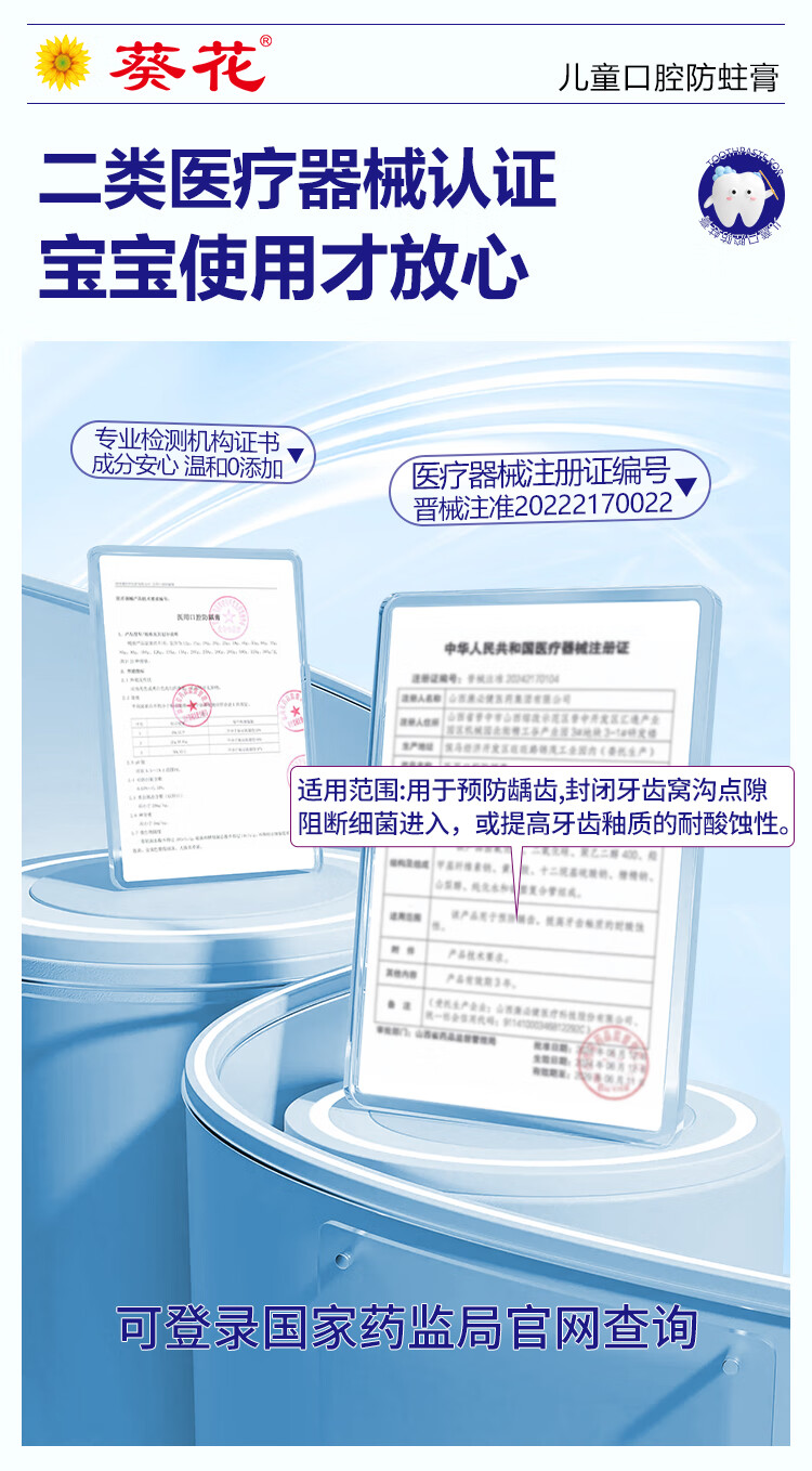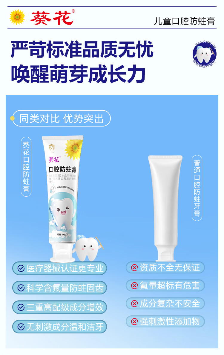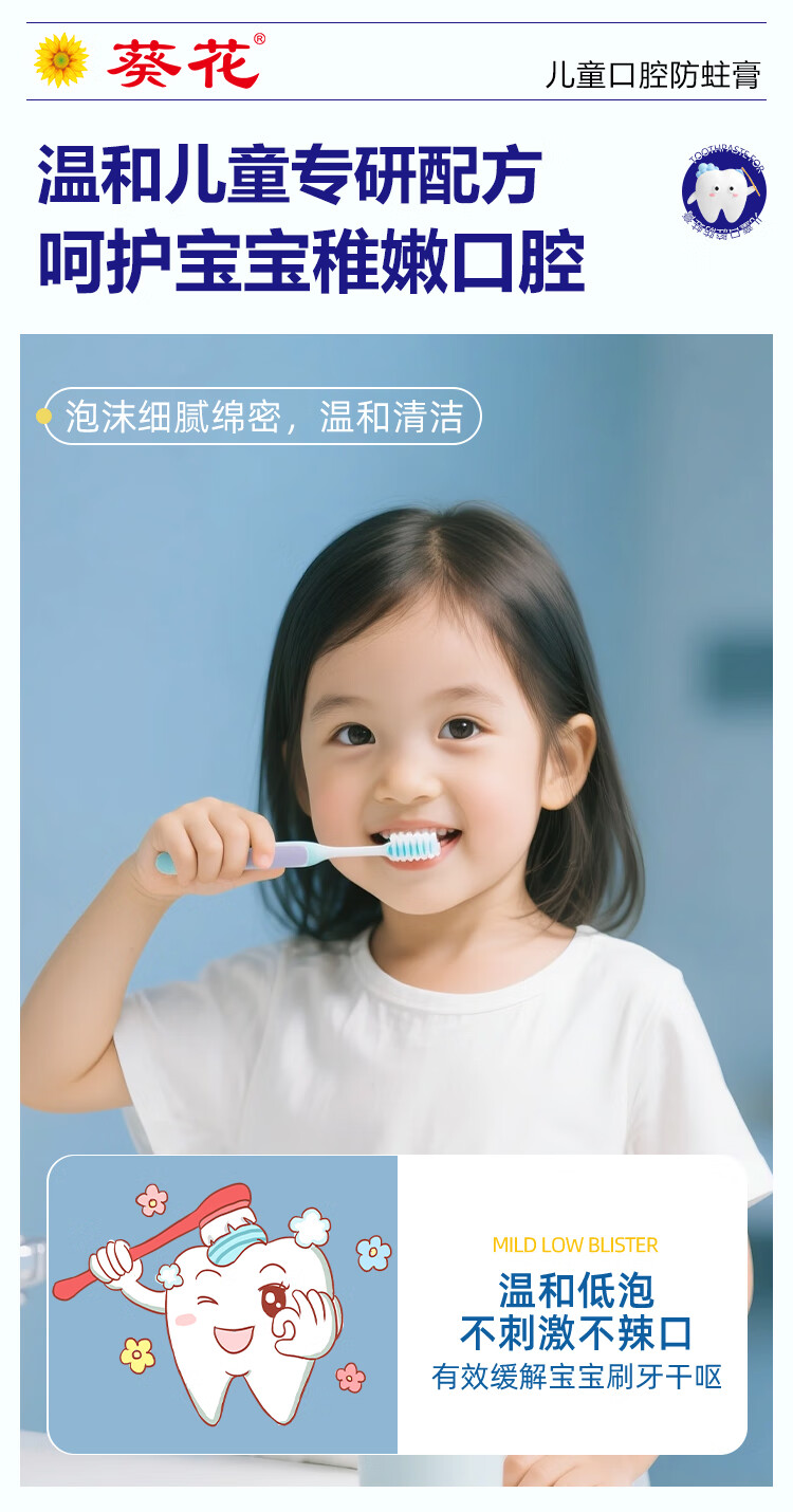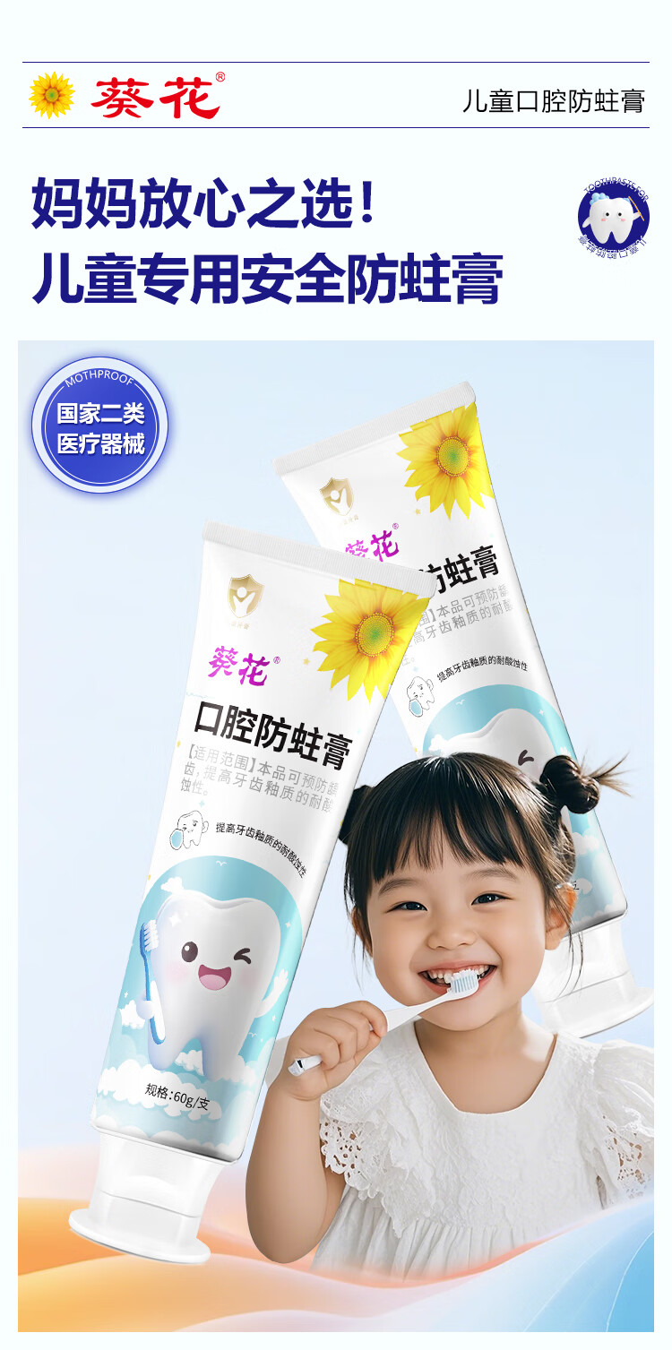 葵花医用口腔防蛀膏0-6-12岁专用儿童含氟预防蛀牙3-12岁防龋齿 2支【到手120g 远离蛀牙烦恼】