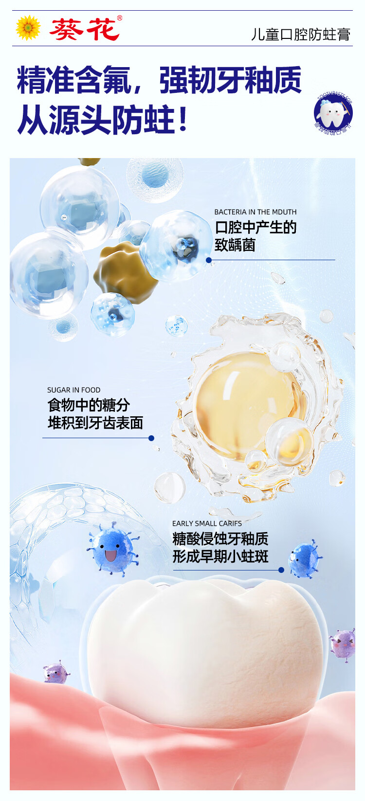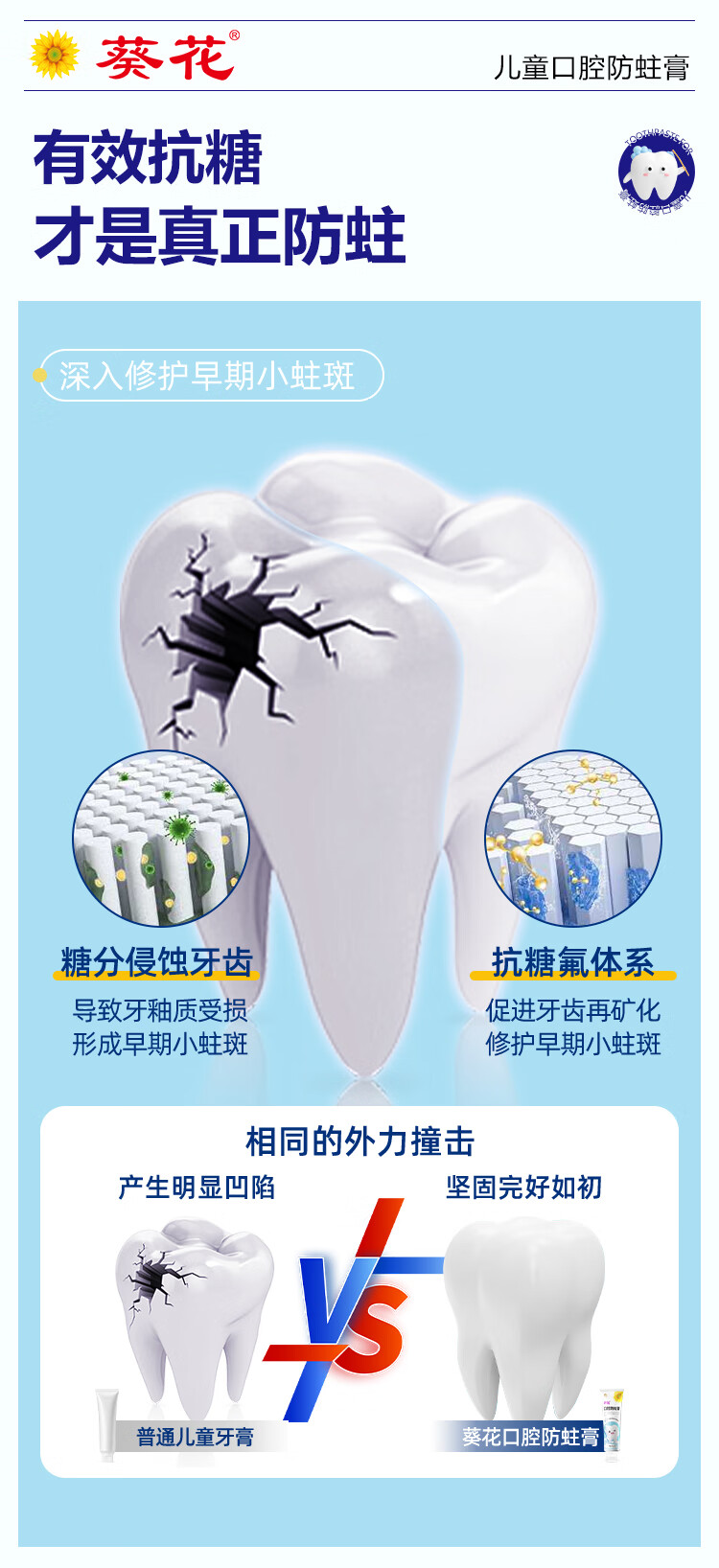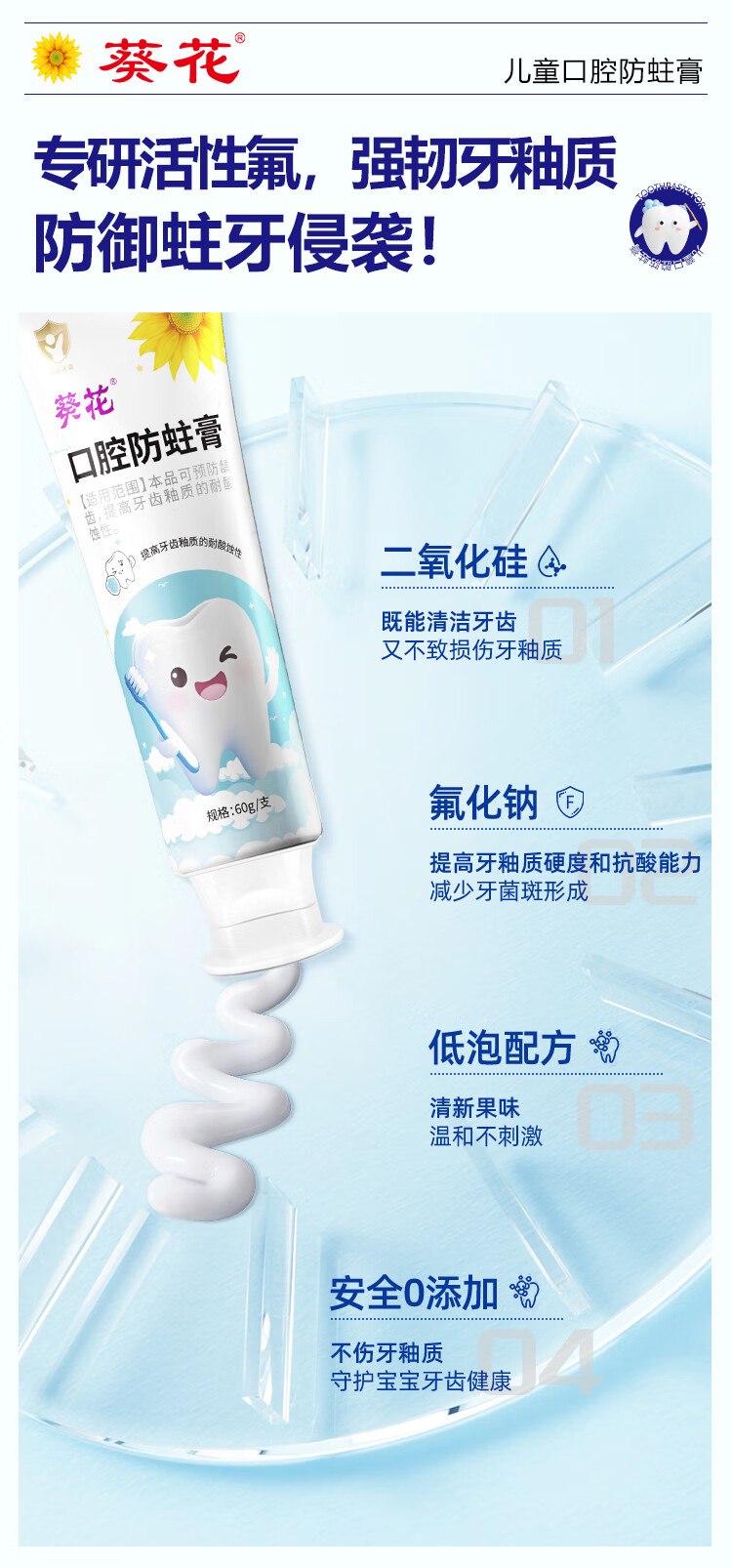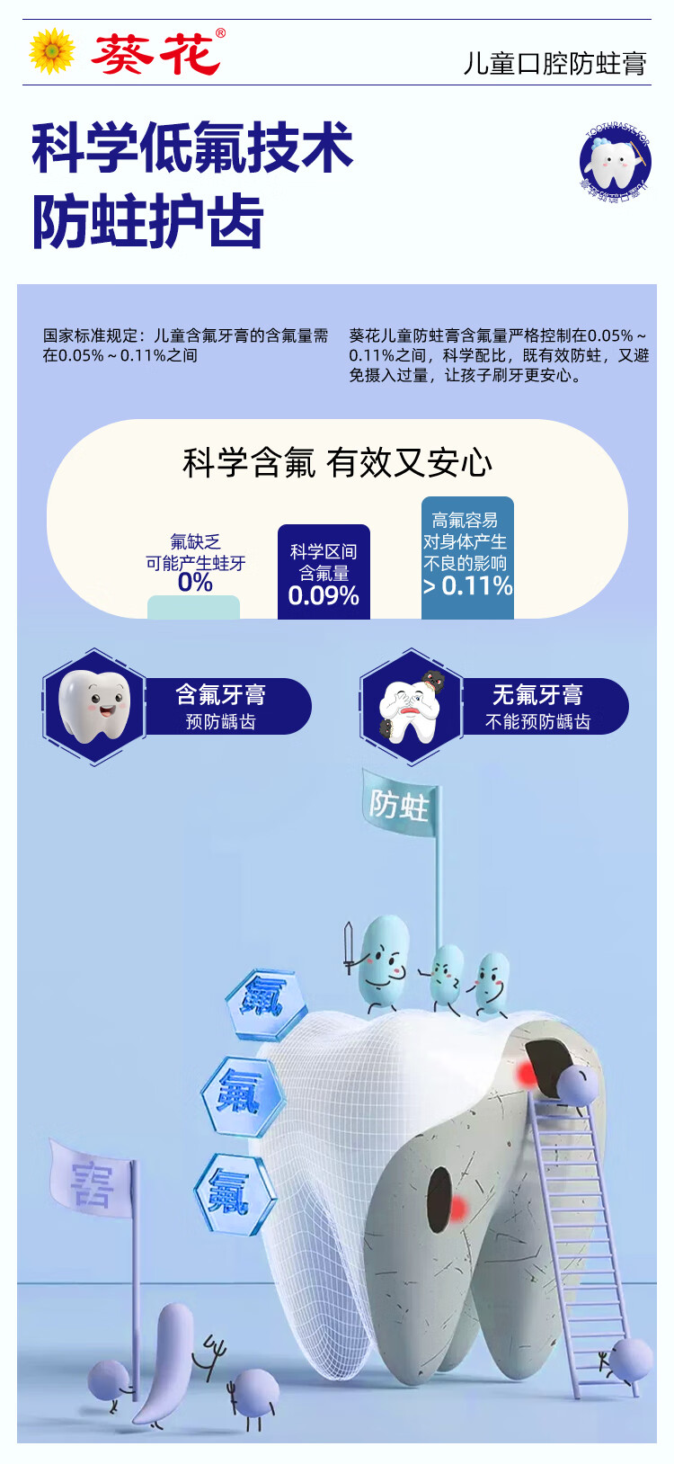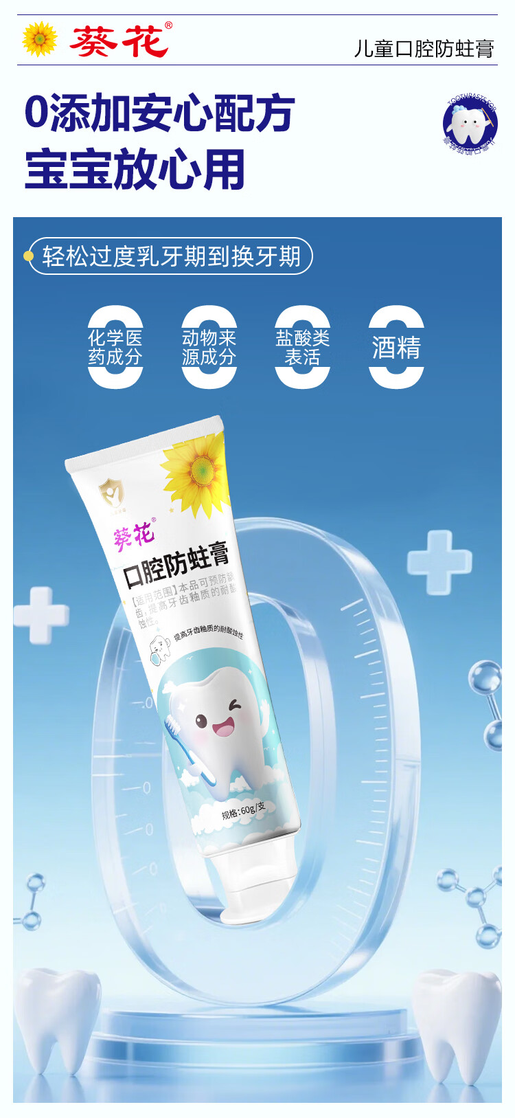 葵花医用口腔防蛀膏0-6-12岁专用儿童含氟预防蛀牙3-12岁防龋齿 2支【到手120g 远离蛀牙烦恼】