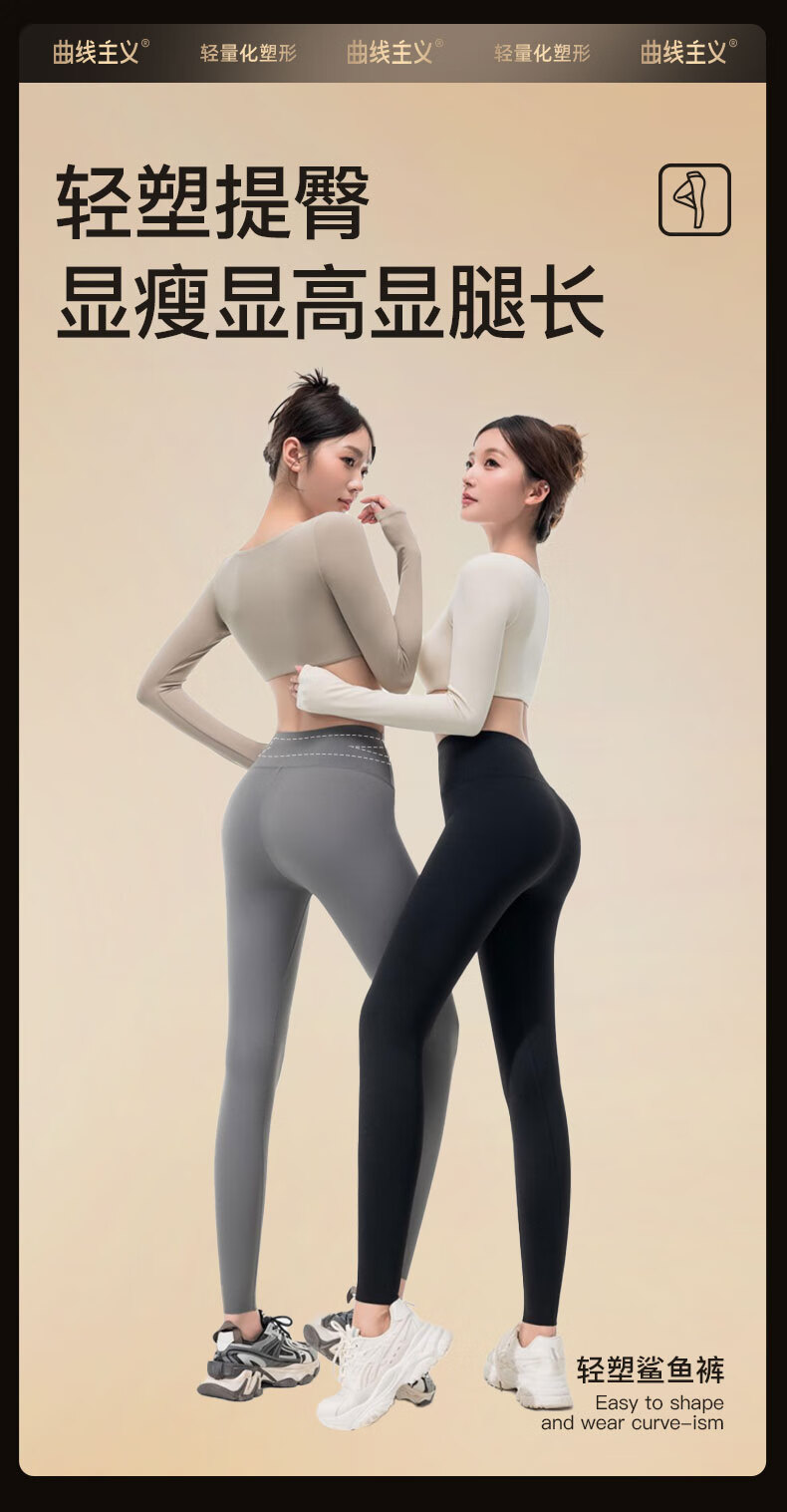 曲线主义鲨鱼裤 春夏骑行裤塑形瑜伽裤鲨鱼裤女外穿春季骑行裤运动健身裤 【春秋款】显瘦黑 1条 M (90-110斤)