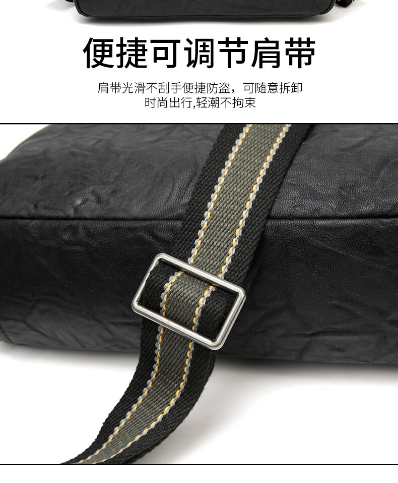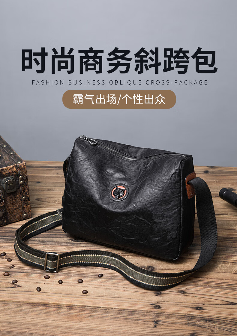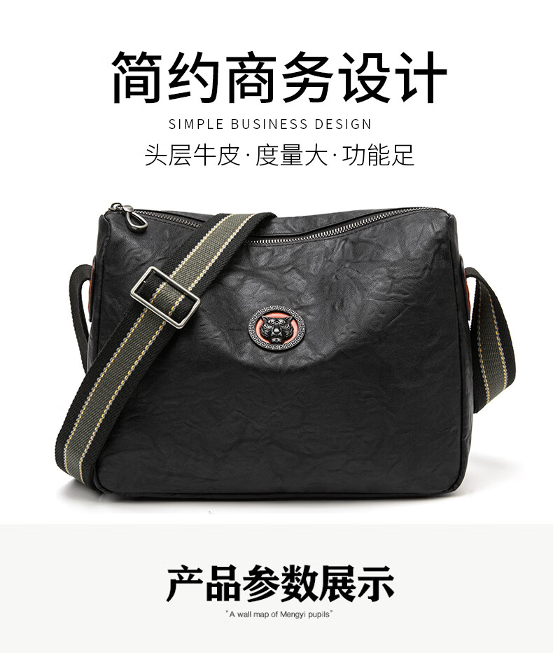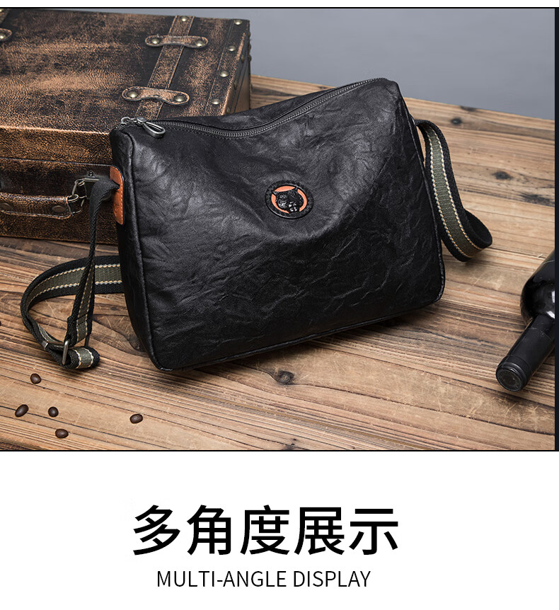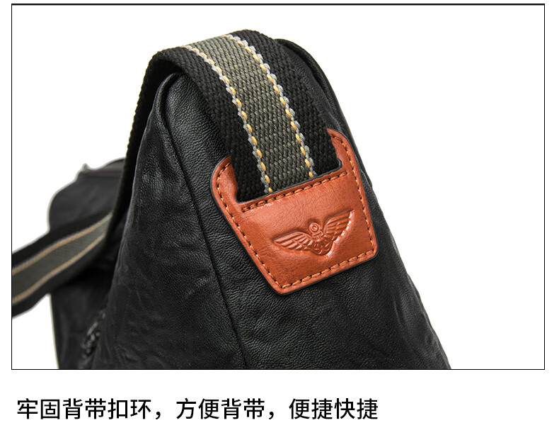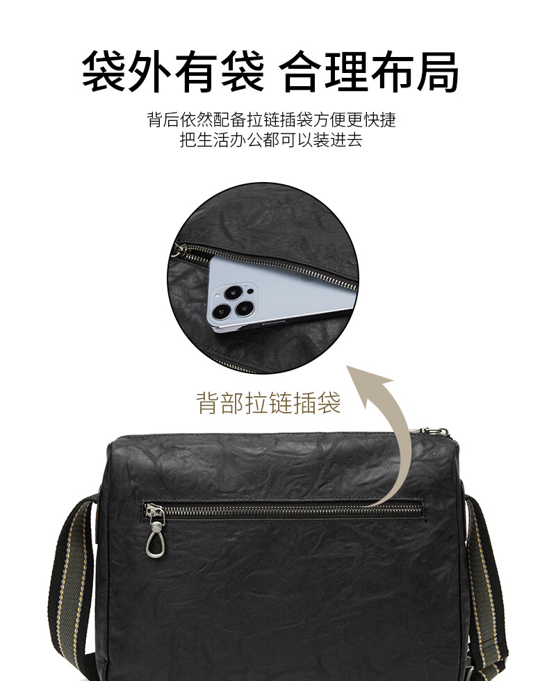法莱阿玛尼(FALAMAONE) 商务单肩包大气男士包包纯色设计感复古休闲斜挎包 黑色
