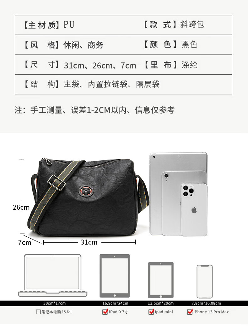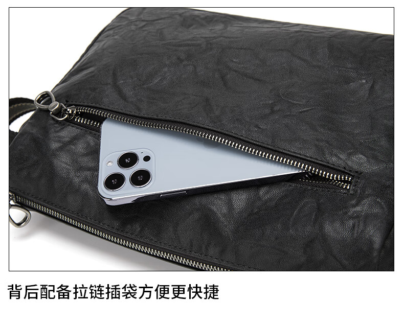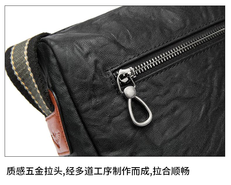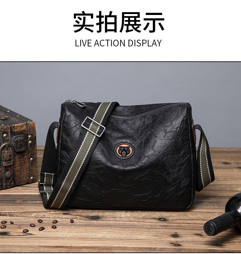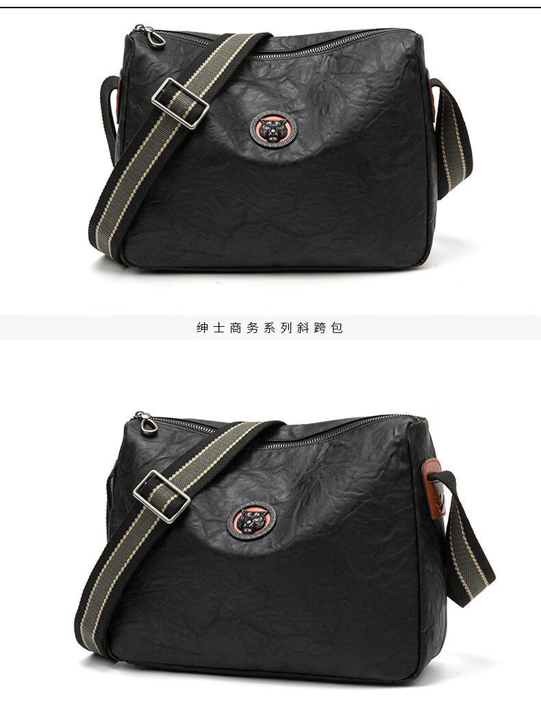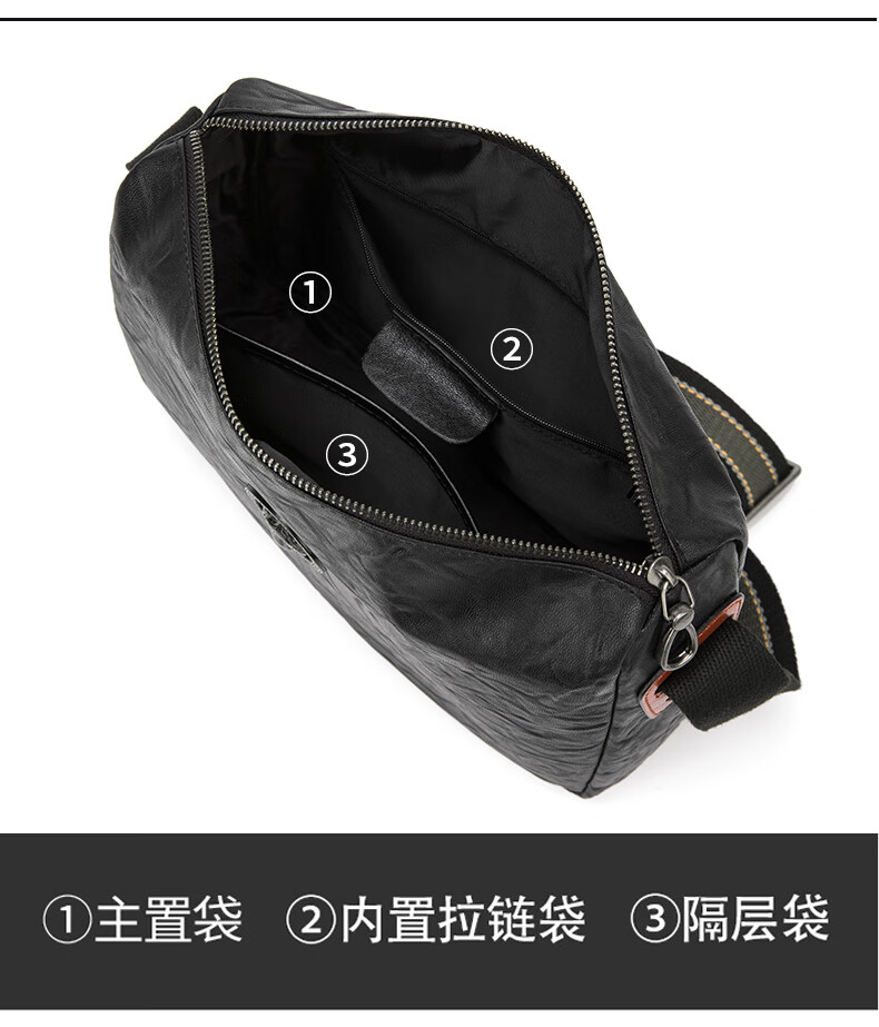法莱阿玛尼(FALAMAONE) 商务单肩包大气男士包包纯色设计感复古休闲斜挎包 黑色