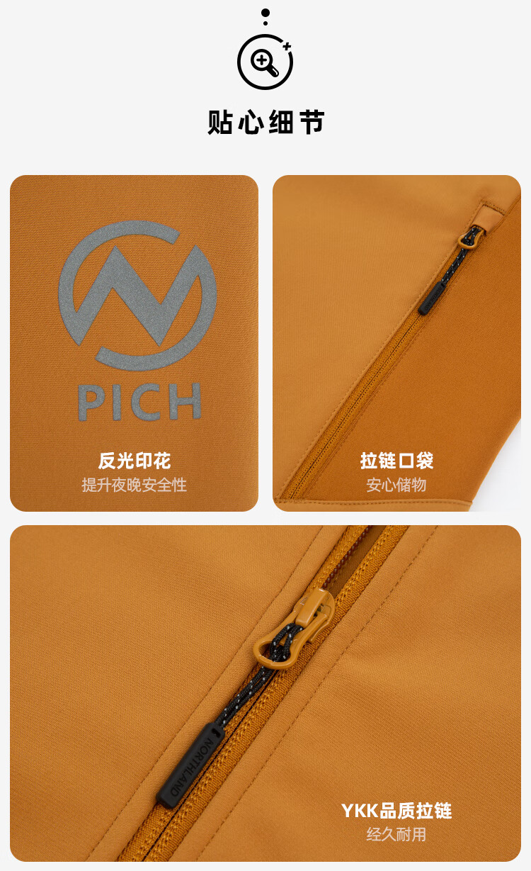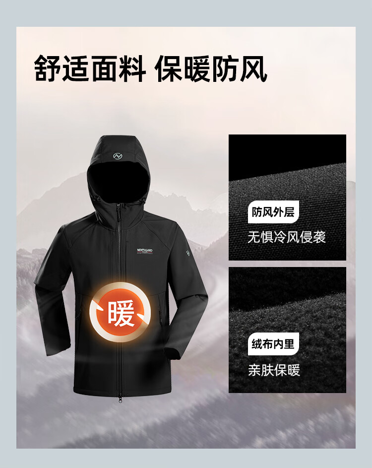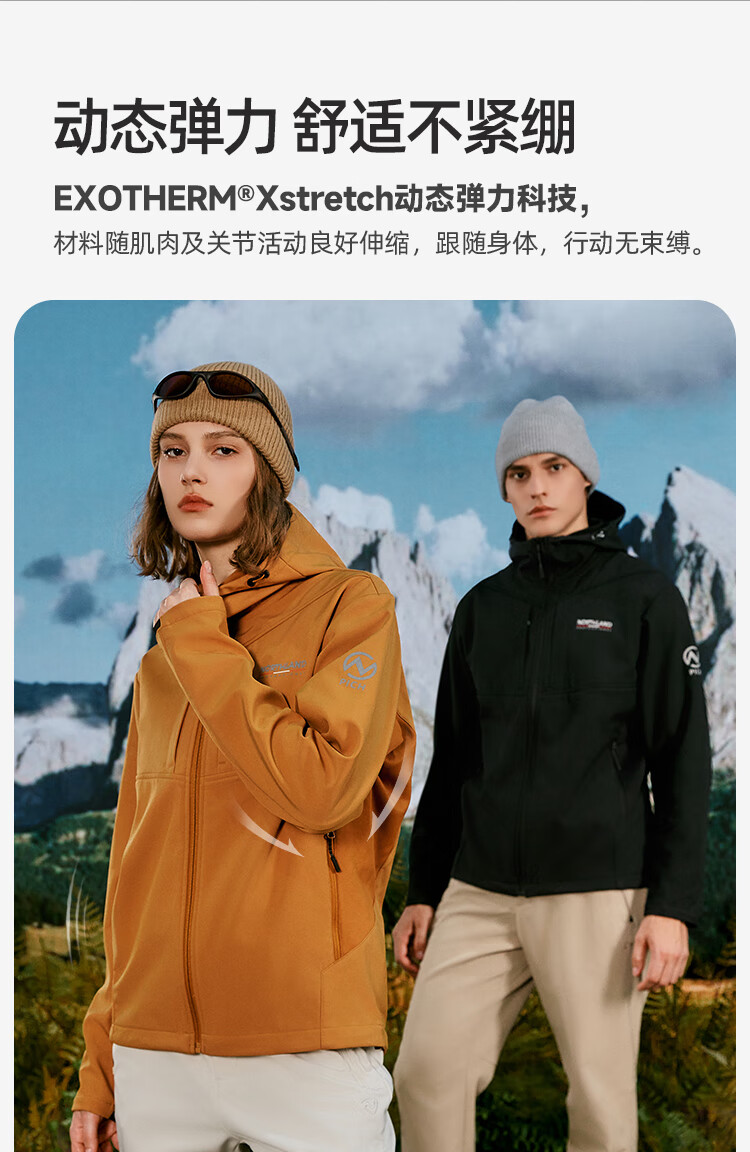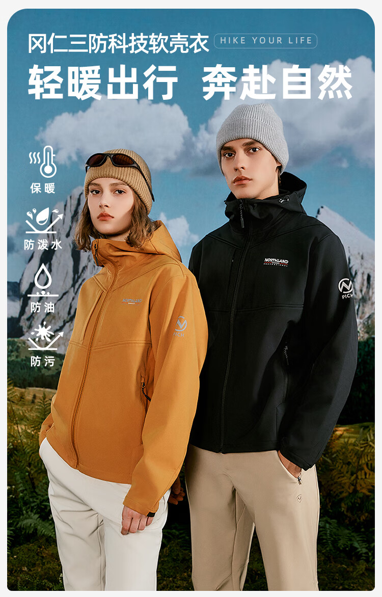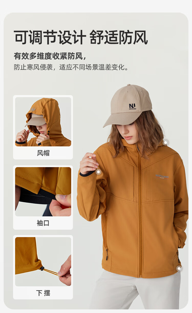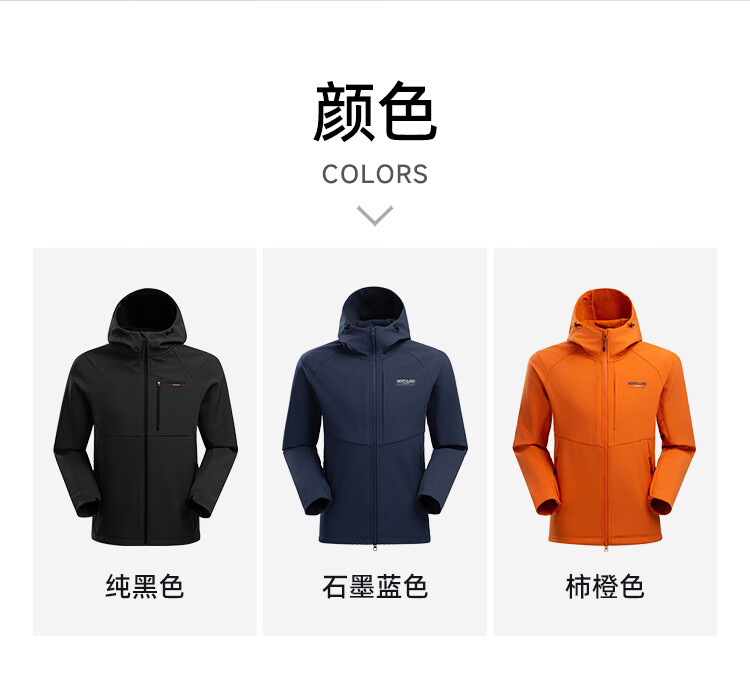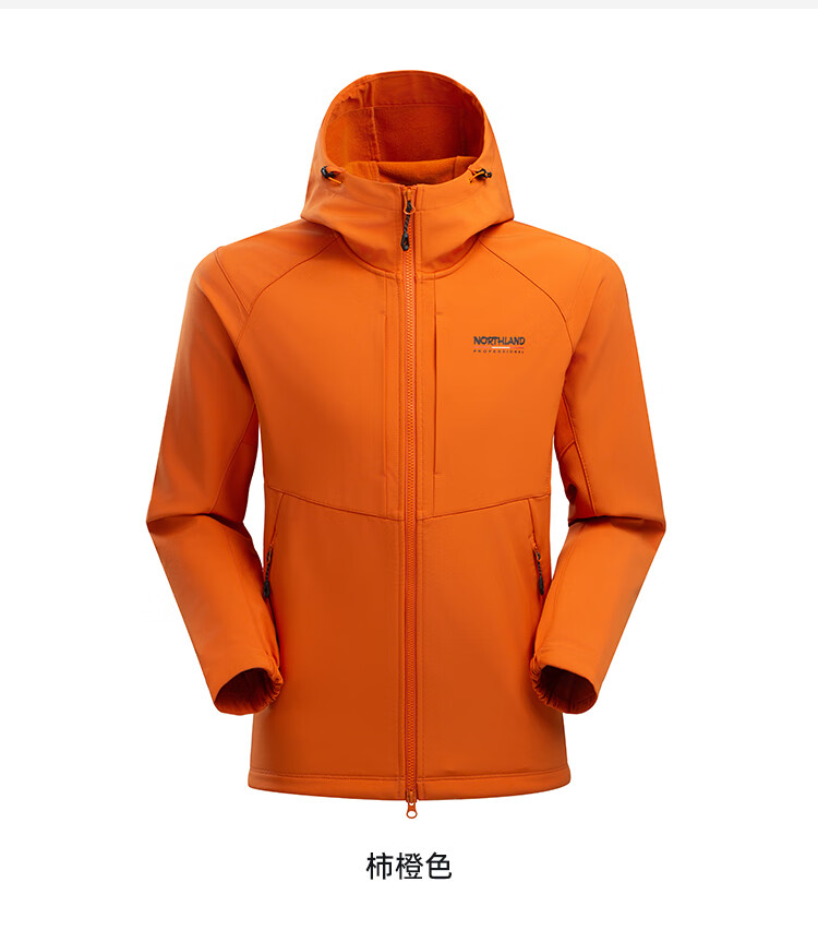 诺诗兰【冈仁Ⅱ】男女三防软壳衣防泼防污抓绒徒步运动外套NXJEH0504E 柿橙色(冈仁2.0) 175