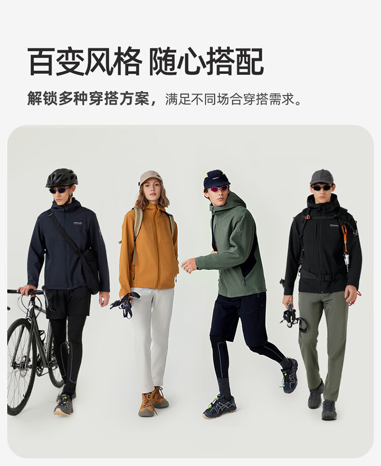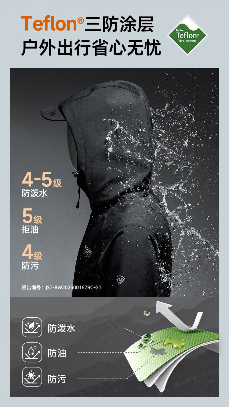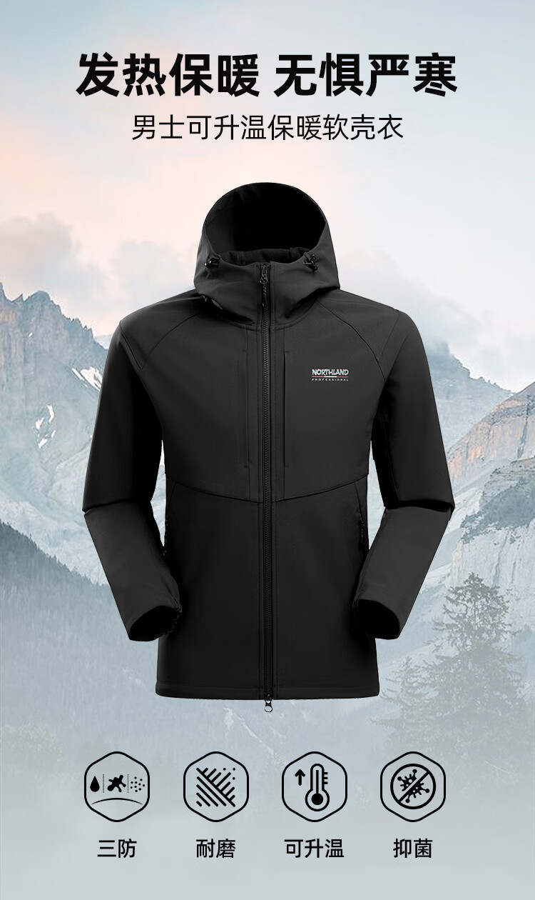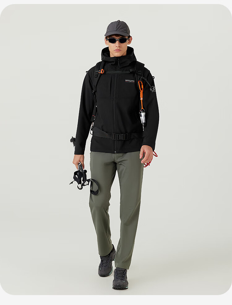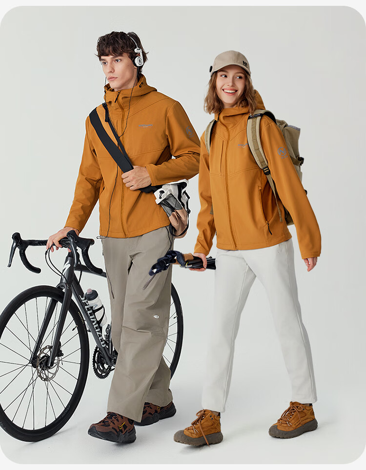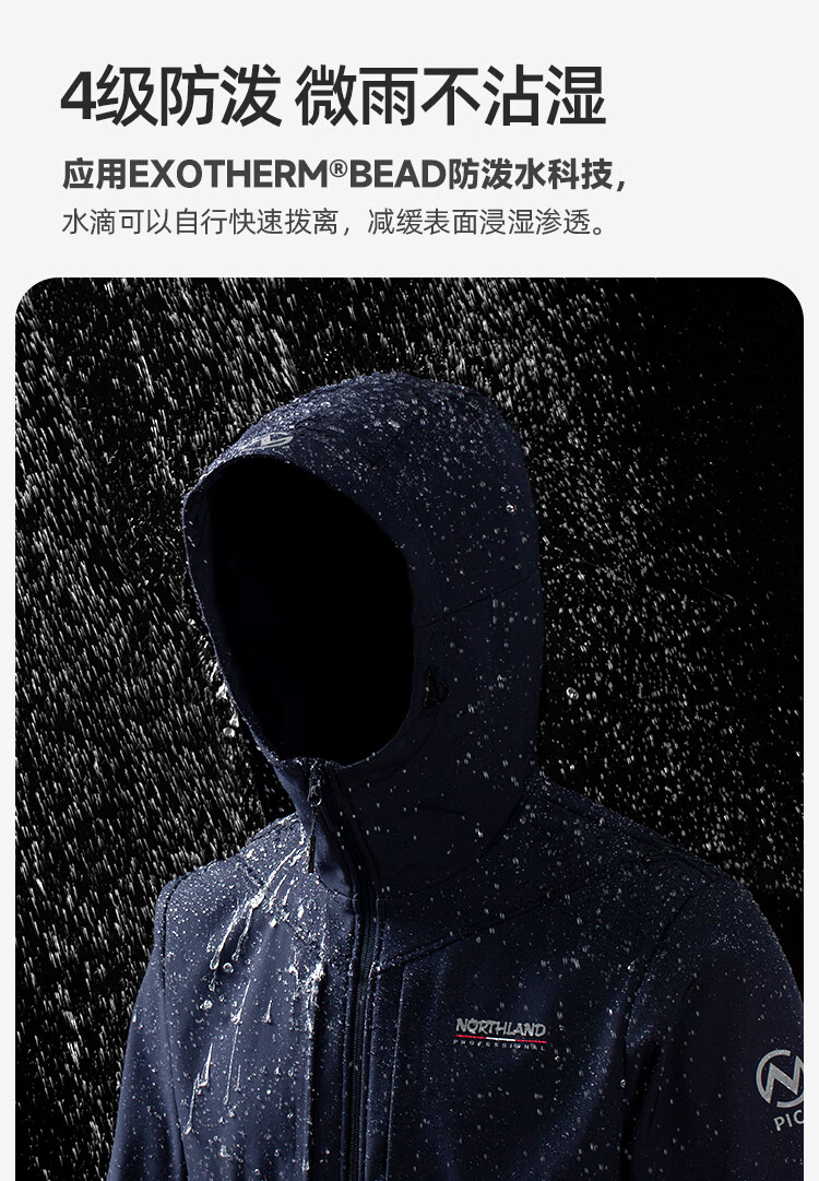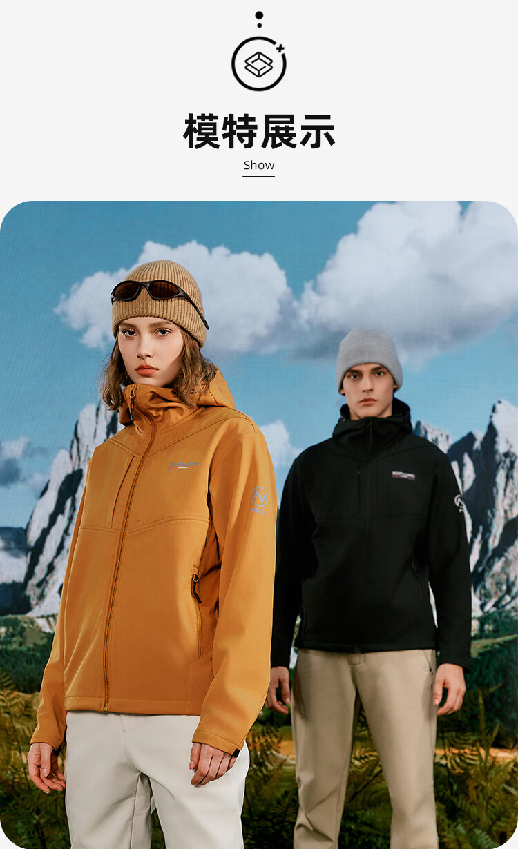 诺诗兰【冈仁Ⅱ】男女三防软壳衣防泼防污抓绒徒步运动外套NXJEH0504E 柿橙色(冈仁2.0) 175