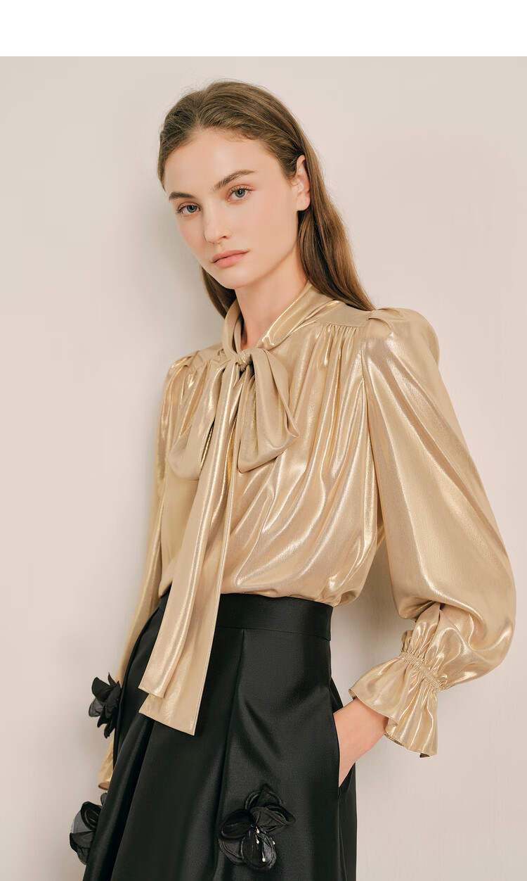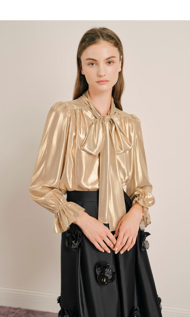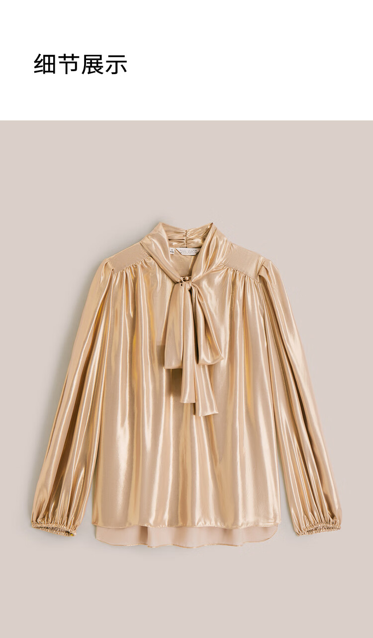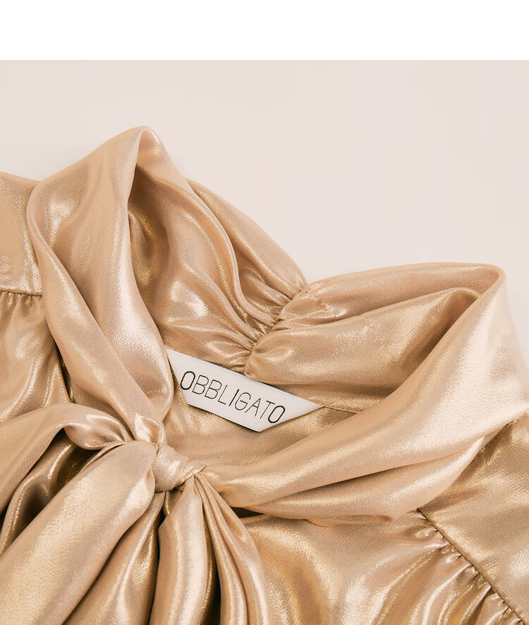 OBBLIGATO奥丽嘉朵秋冬浅金蝴蝶结系领光泽感衬衣 上衣 浅金 S