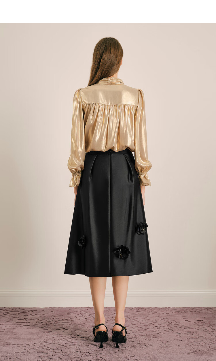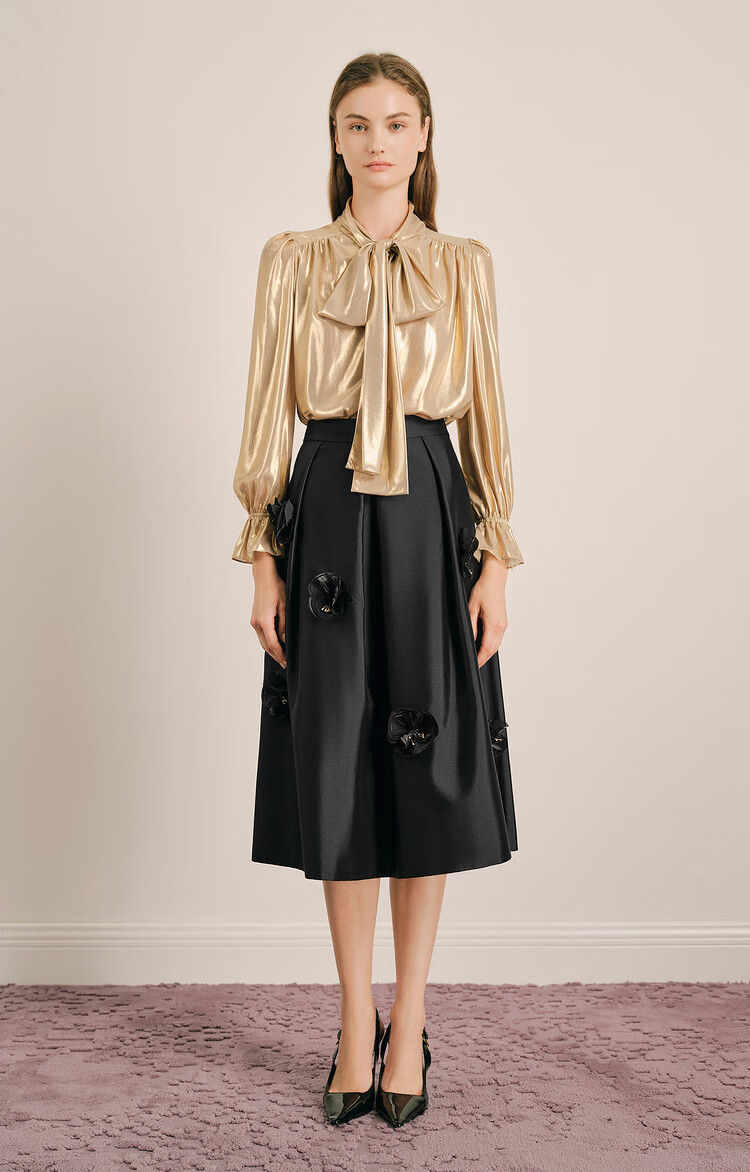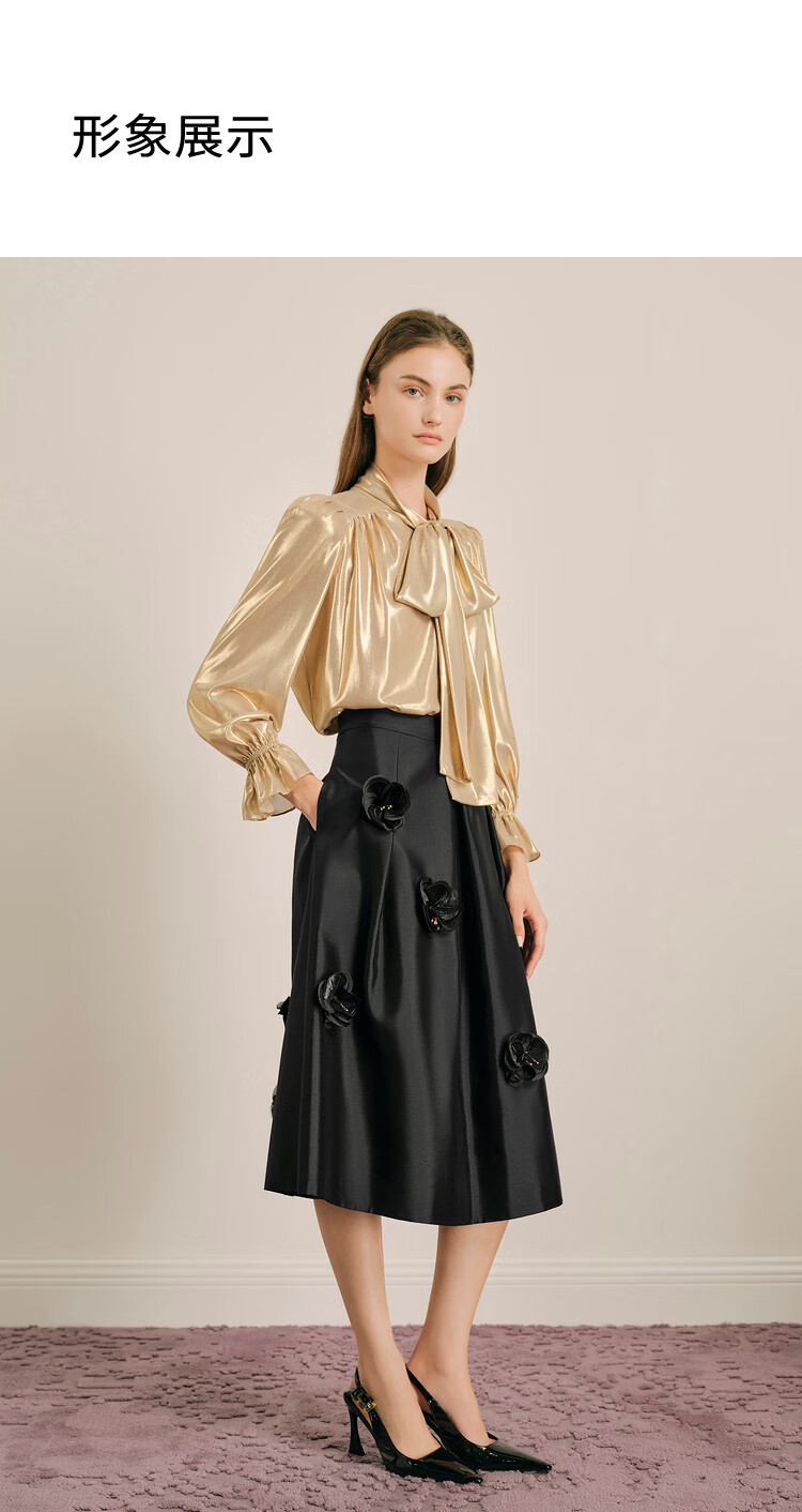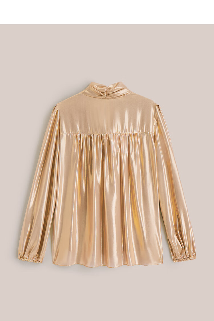 OBBLIGATO奥丽嘉朵秋冬浅金蝴蝶结系领光泽感衬衣 上衣 浅金 S