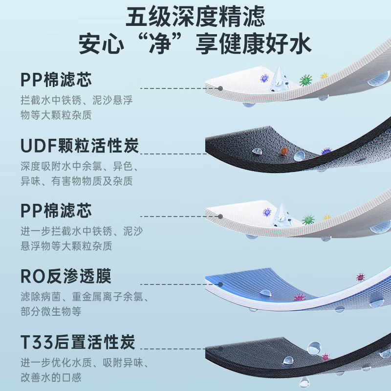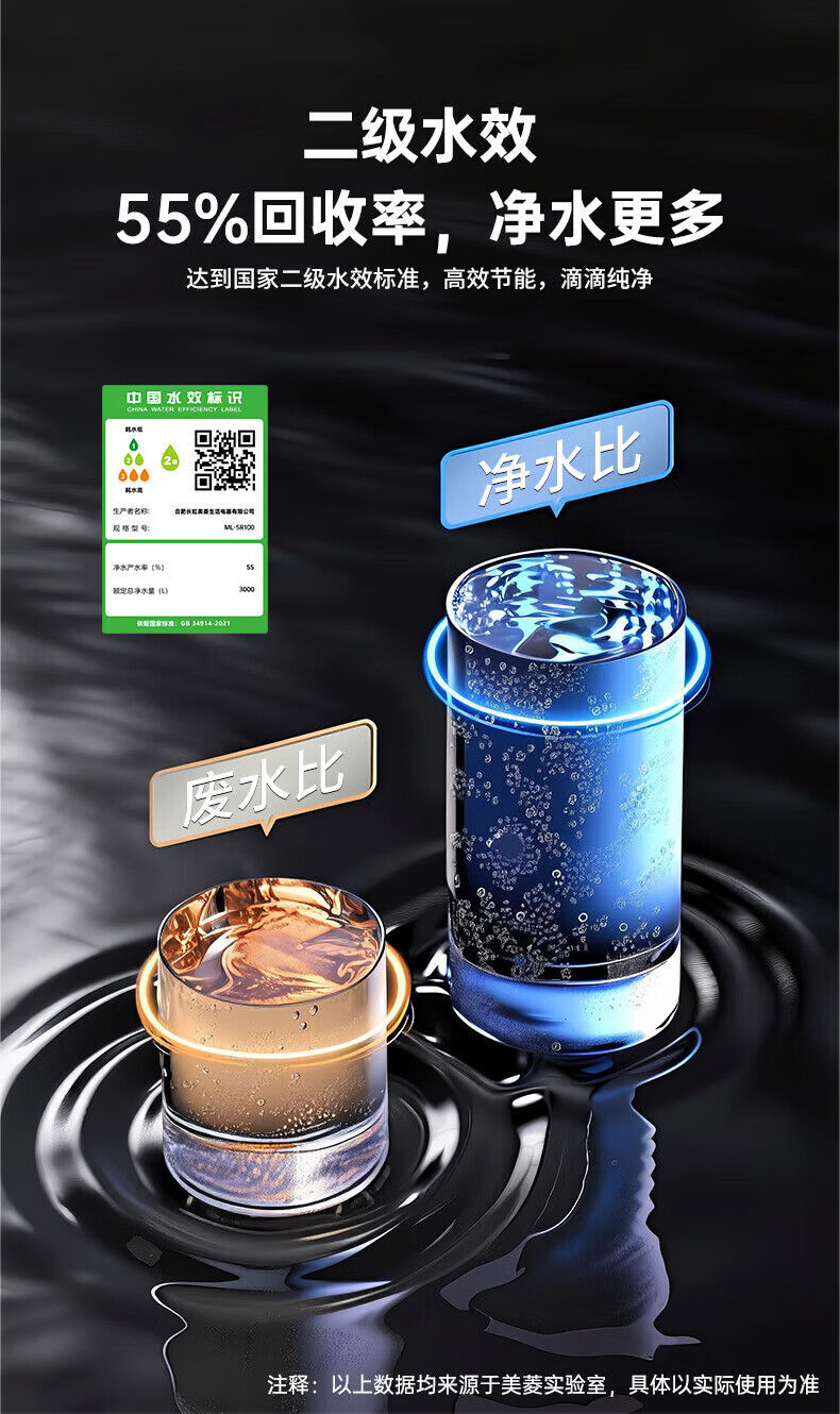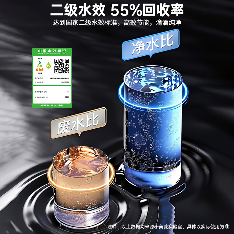 美菱(MeiLing)净水器家用直饮机RO反渗净水器厨房直饮机通用滤芯厨下式自来水过滤器ML-5R100X608 【五级过滤.智能面板】上门安装