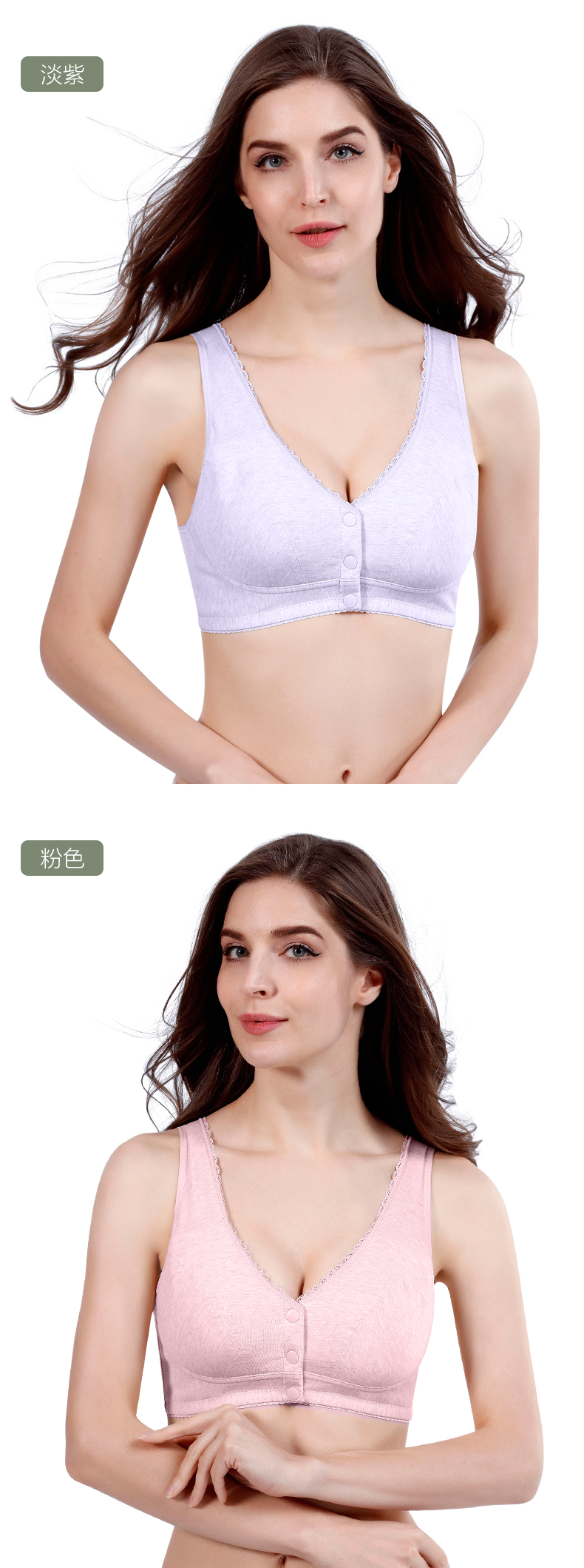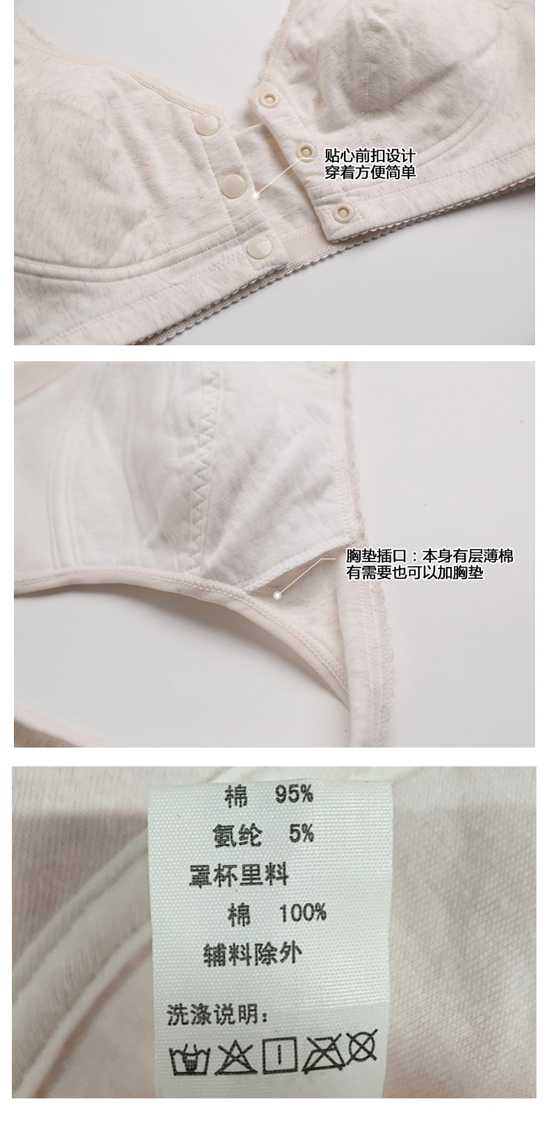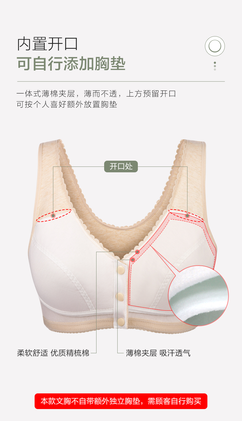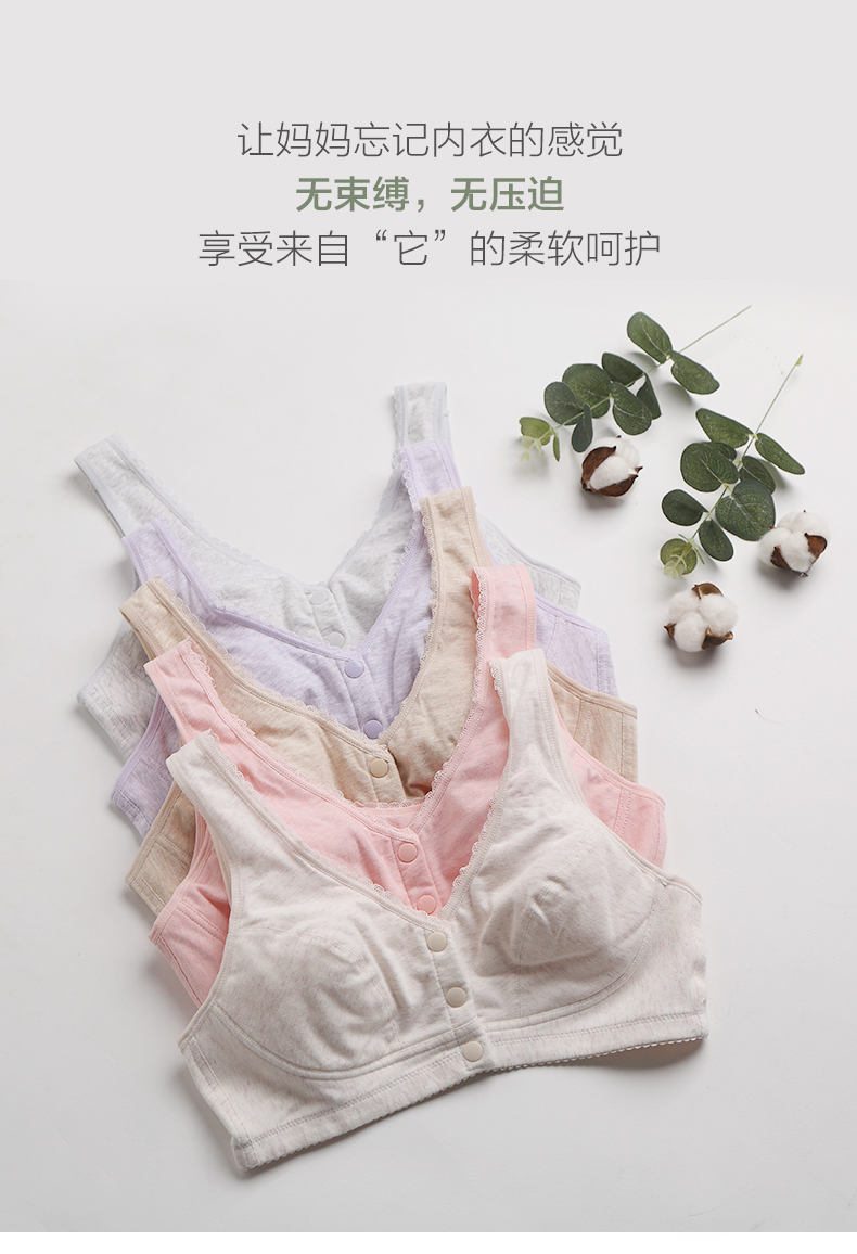 小护士(CHERISH LIFE)文胸无钢圈背心式全罩杯大码前扣中老年棉妈妈哺乳内衣送人SMB018 浅粉 85B /38 (下胸围80cm-85cm)
