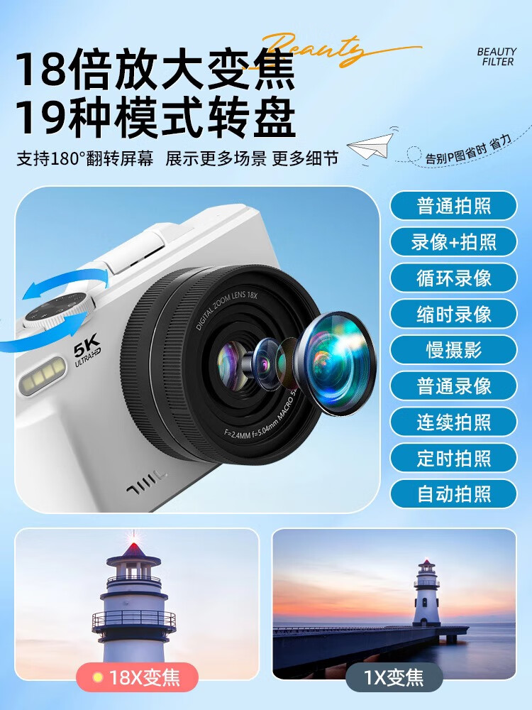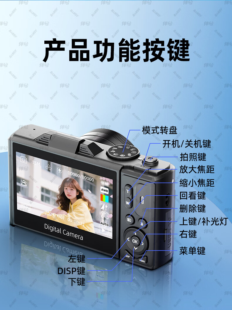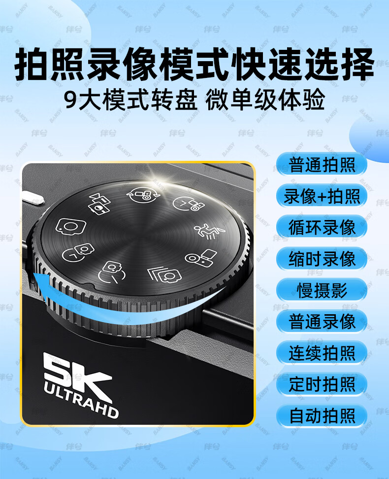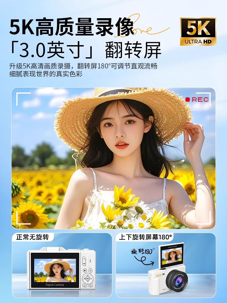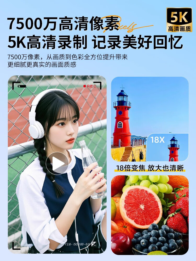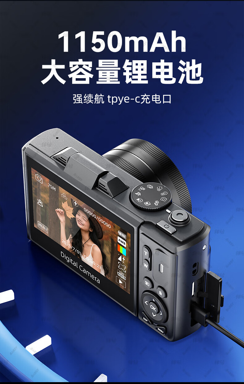 伴兮高清数码照相机替代ccd相机拍照旅游专用微单专业摄像入门级口袋小相机学生随身便携vlog卡片机 黑【配广角+微距镜头】7500万像素+5K录像 128GB内存卡