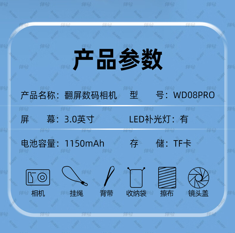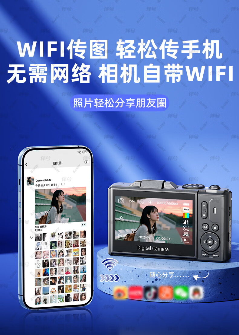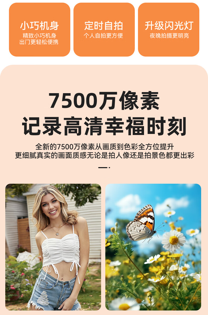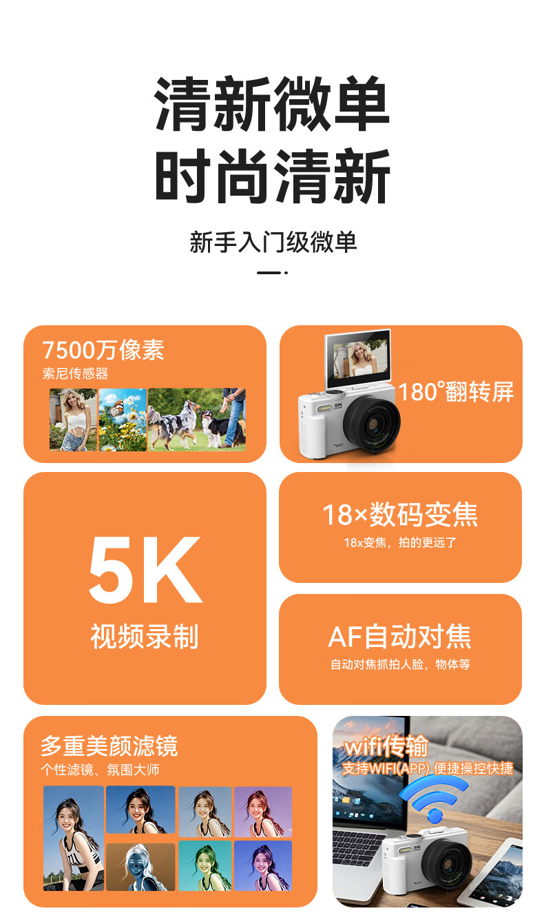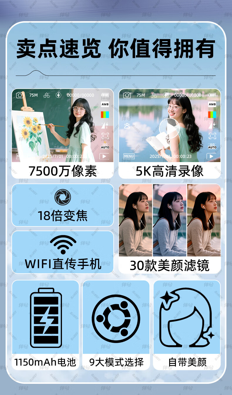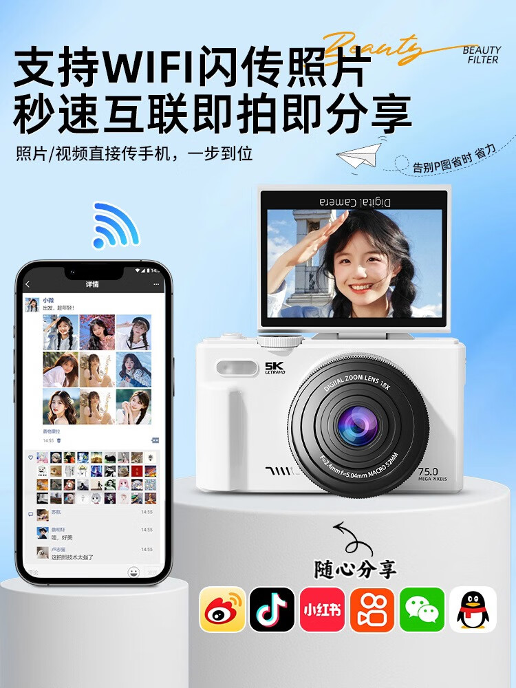 伴兮高清数码照相机替代ccd相机拍照旅游专用微单专业摄像入门级口袋小相机学生随身便携vlog卡片机 黑【配广角+微距镜头】7500万像素+5K录像 128GB内存卡