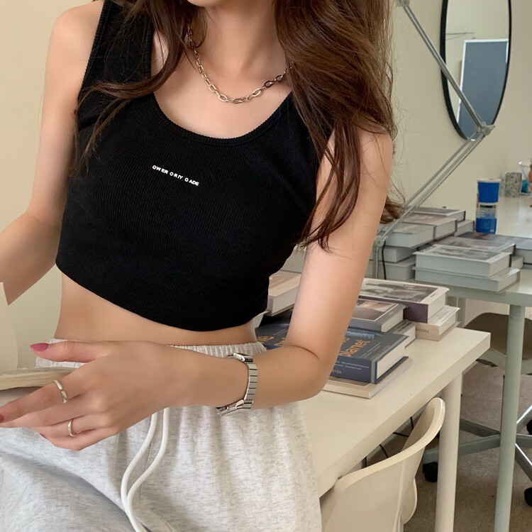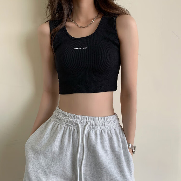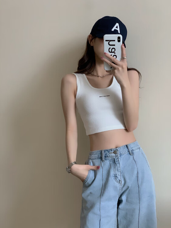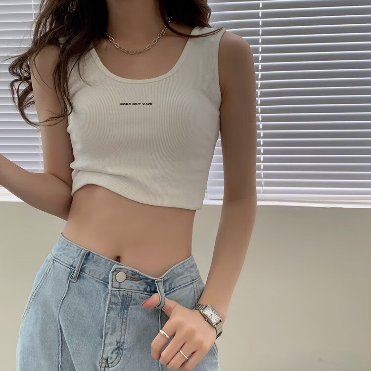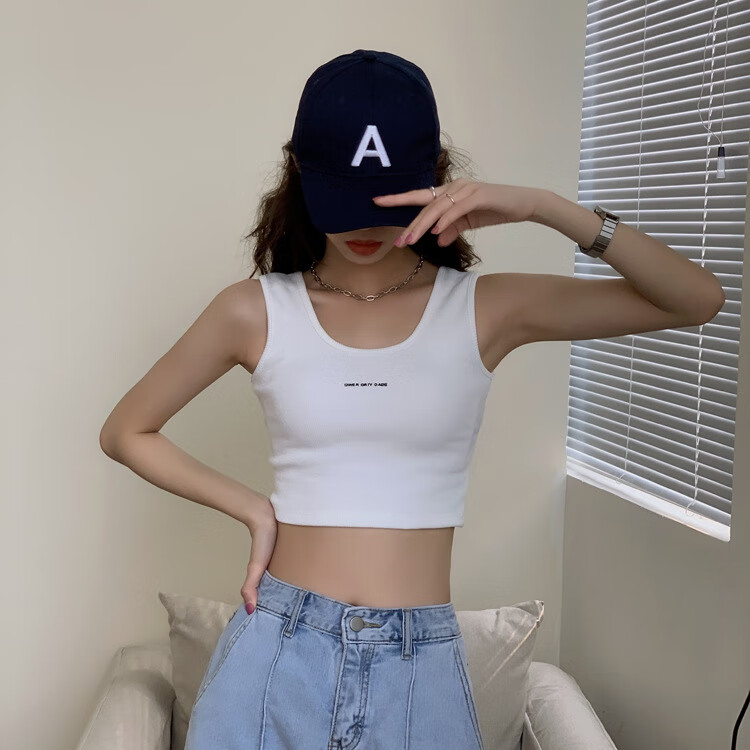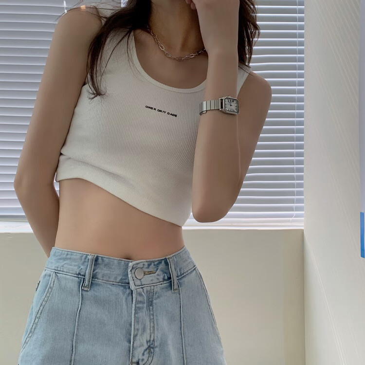 【精选】小吊带螺纹背心女夏季百搭显瘦外穿运动上衣 白色 S