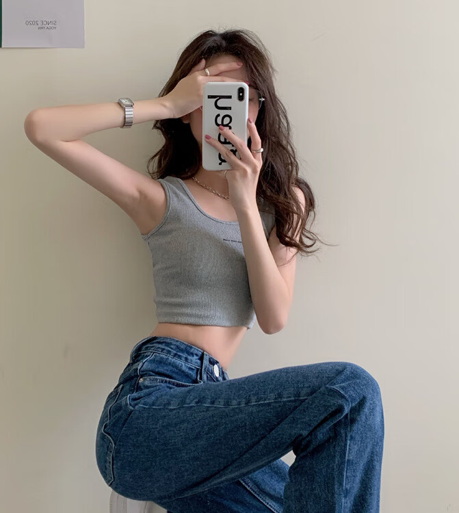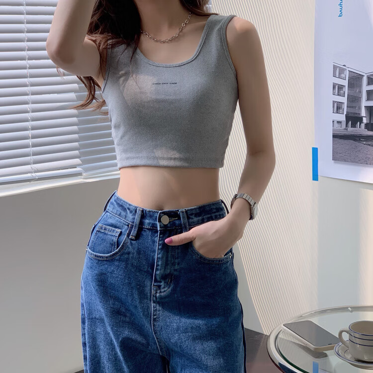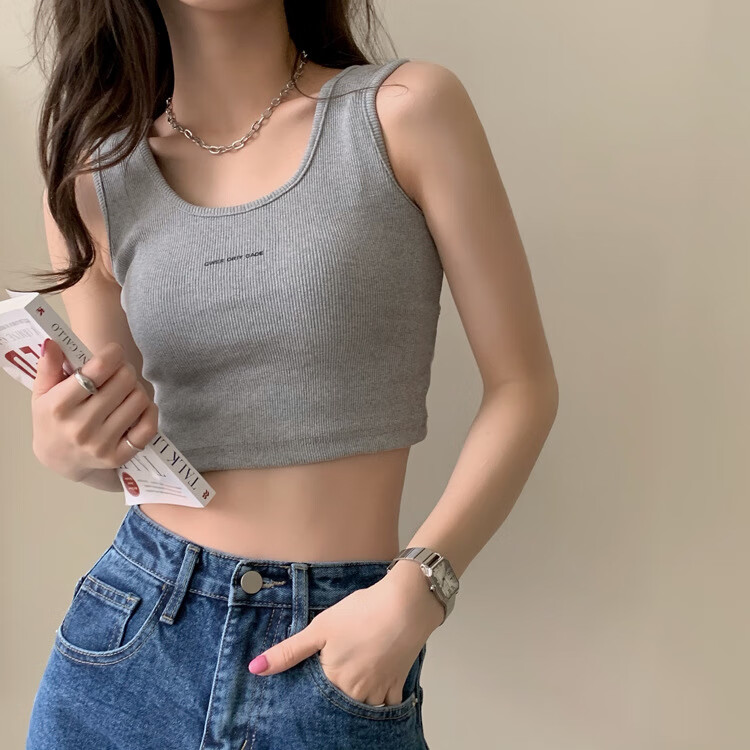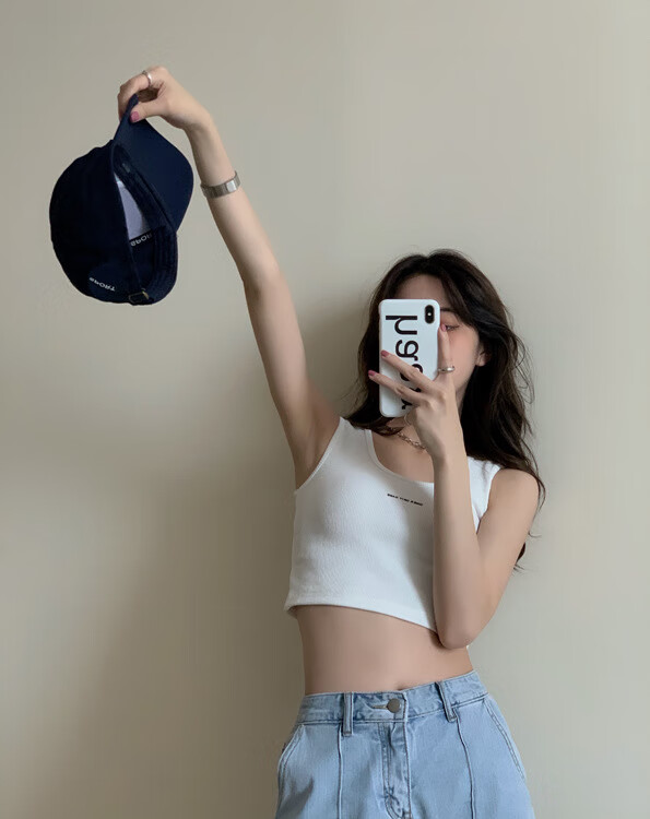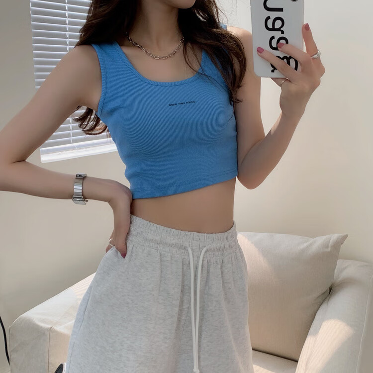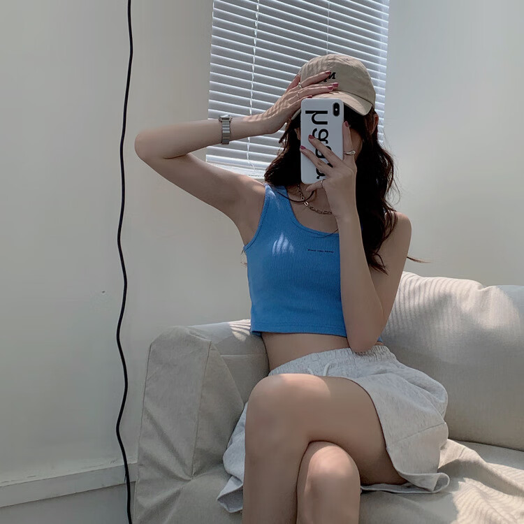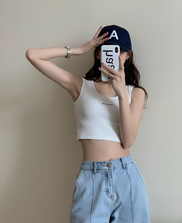 【精选】小吊带螺纹背心女夏季百搭显瘦外穿运动上衣 白色 S