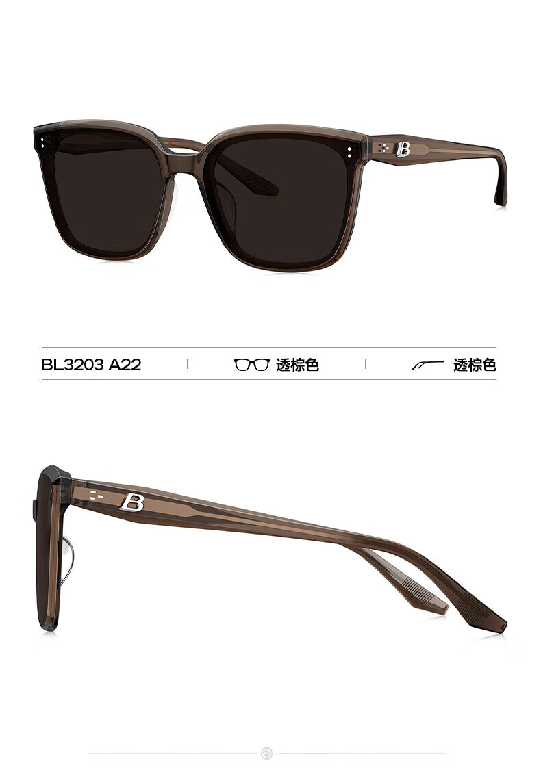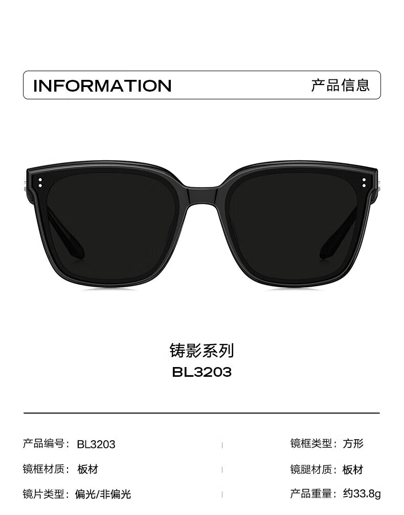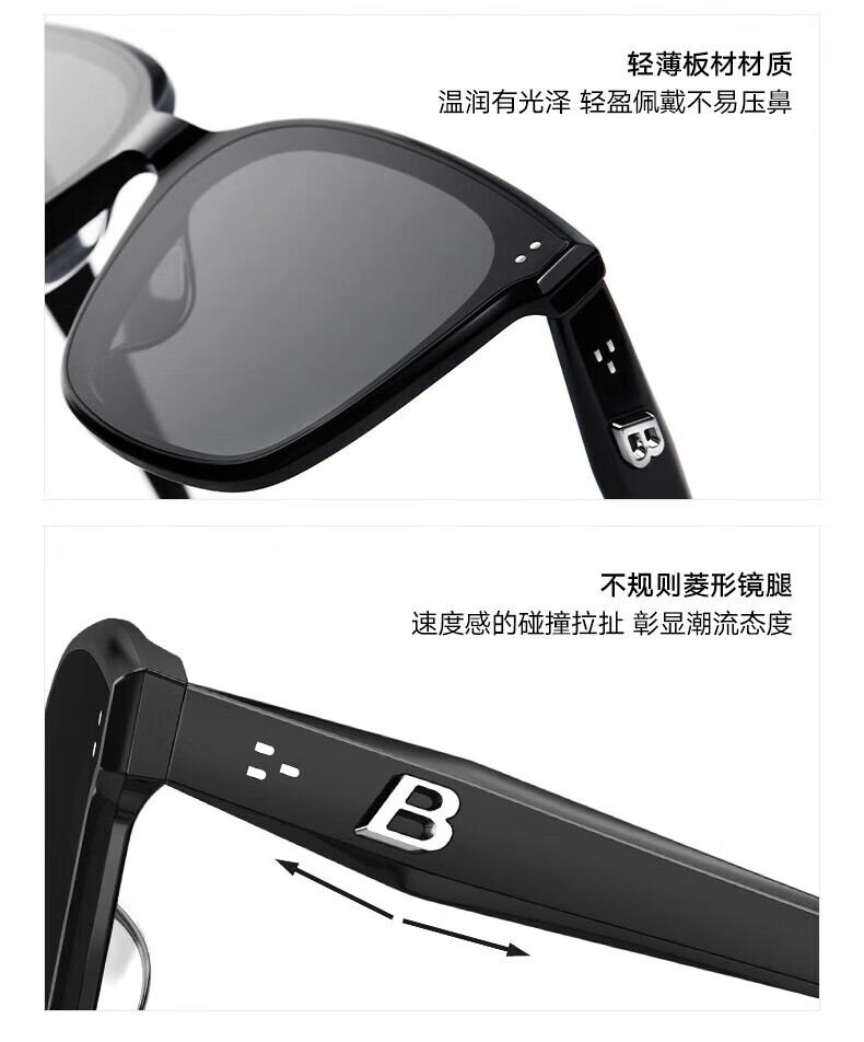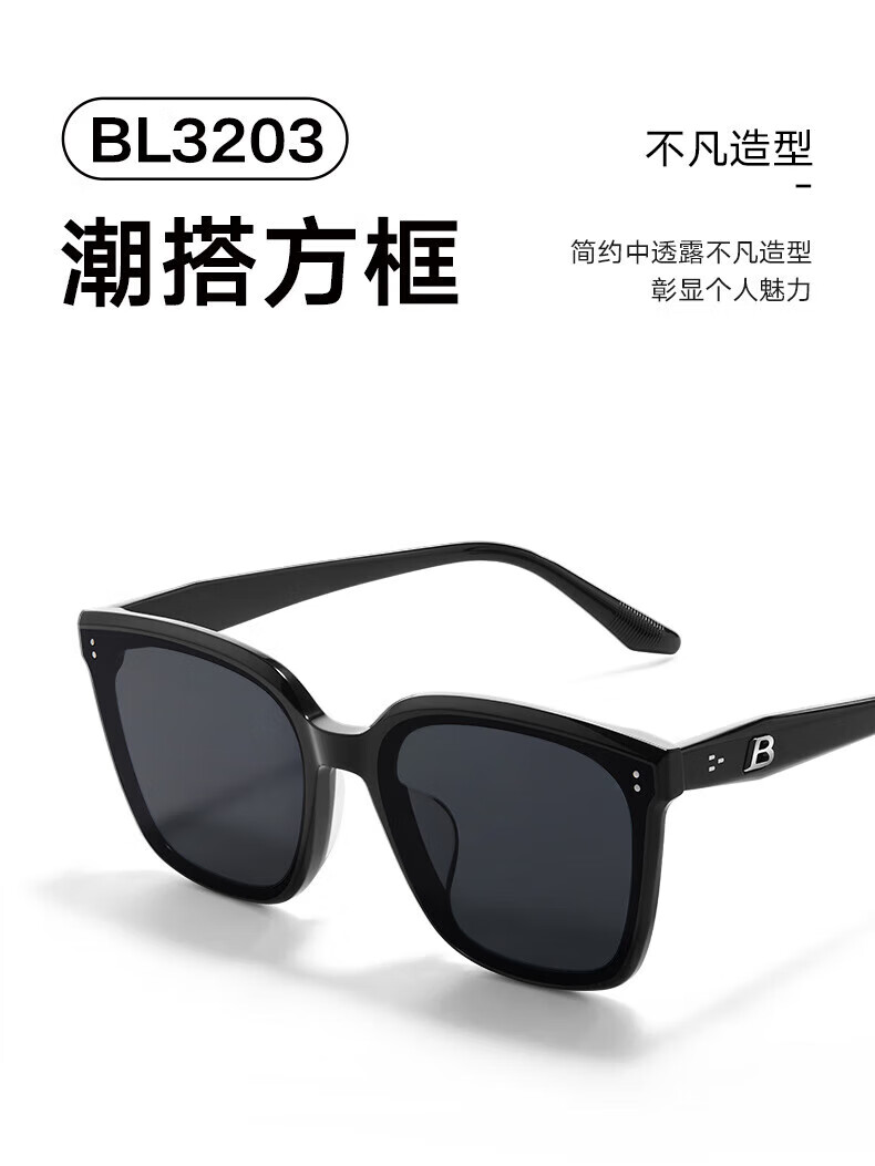 暴龙(BOLON)太阳镜 25年王鹤棣同款潮流墨镜通勤潮搭遮阳镜 BL3203暴龙眼镜 C10-框亮黑色/片深灰-偏光款