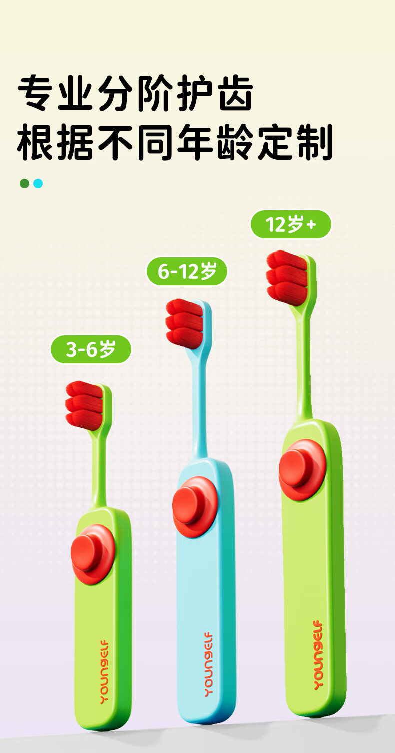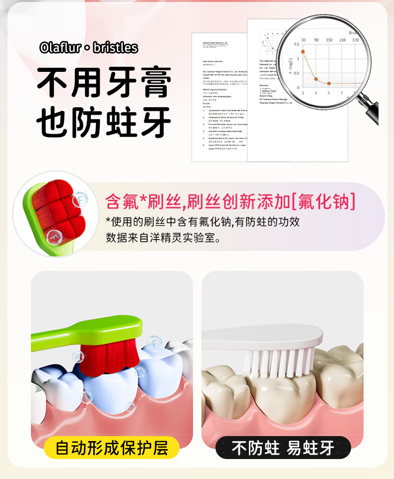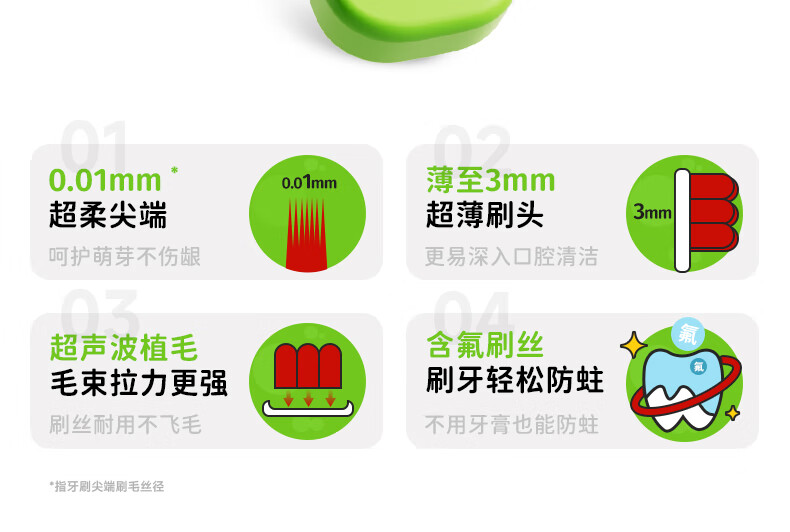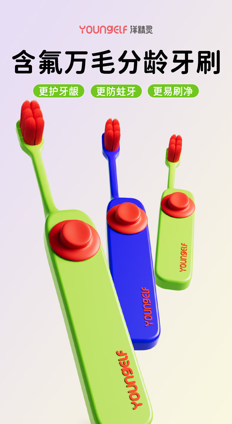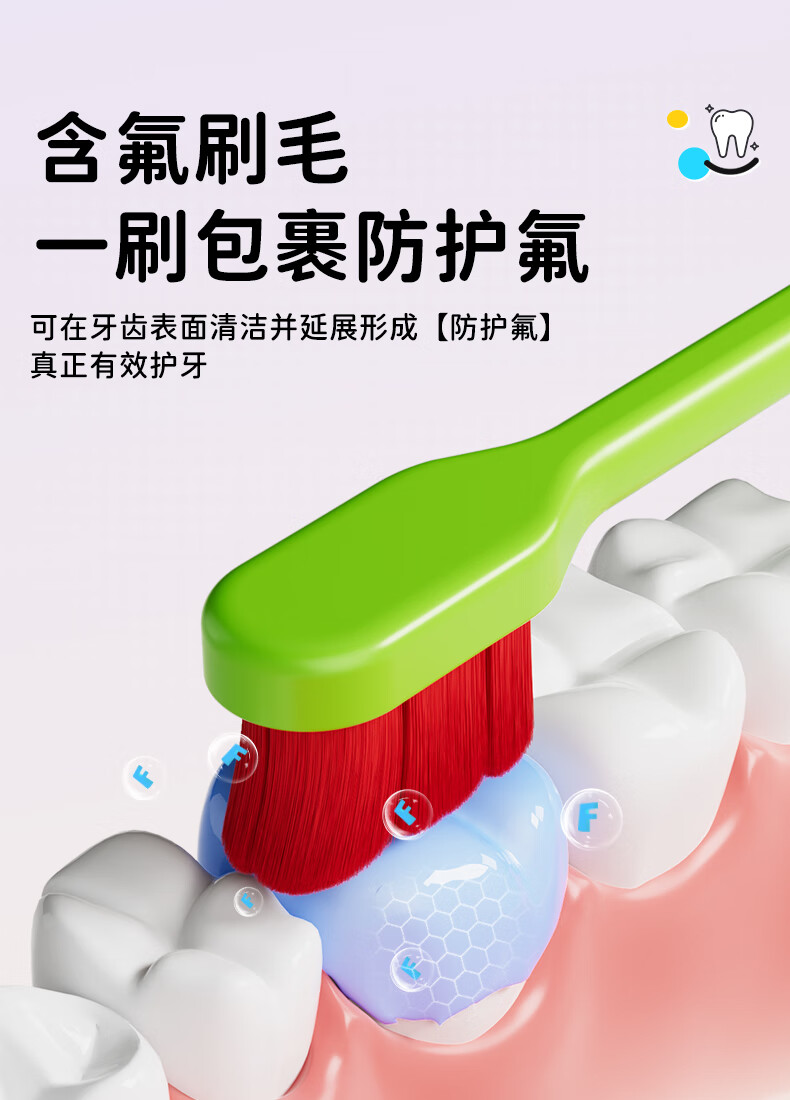 洋精灵儿童牙刷6-12岁含氟万毛款 软毛密绒宽薄头 青/绿4支装
