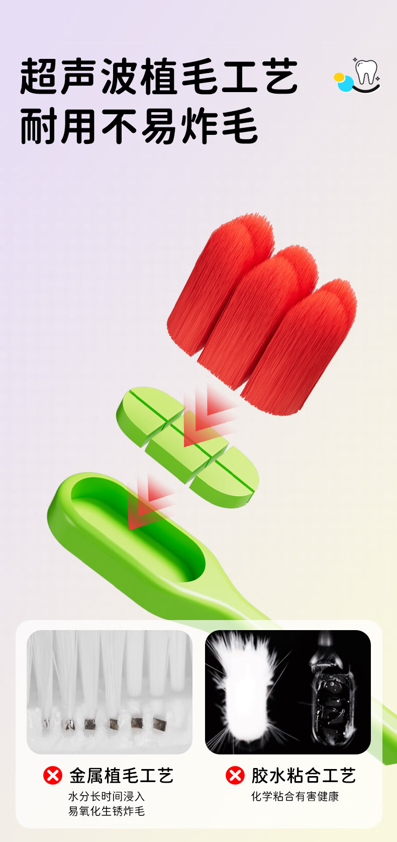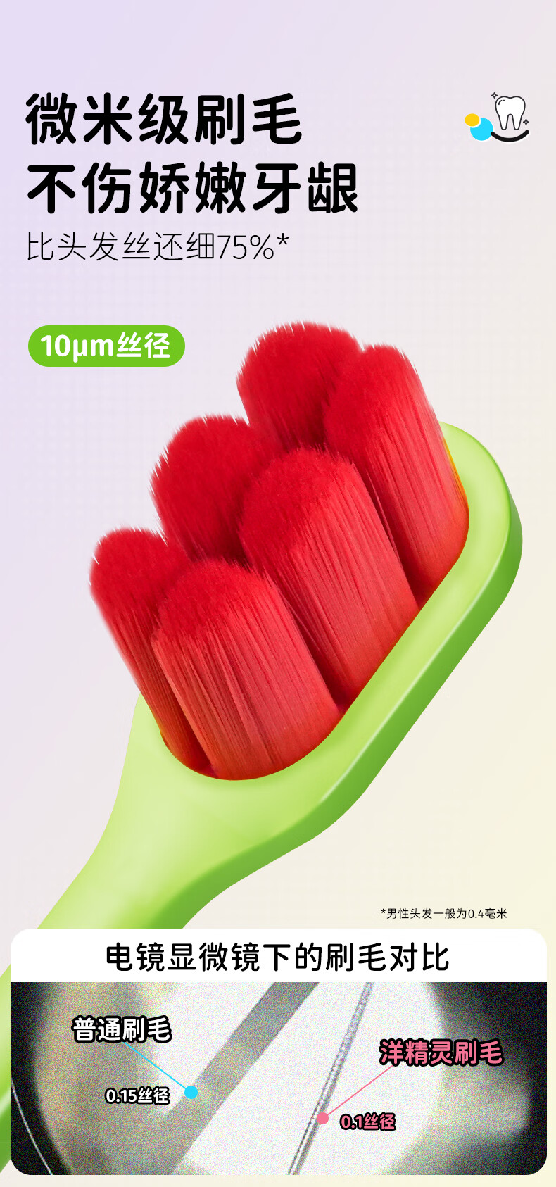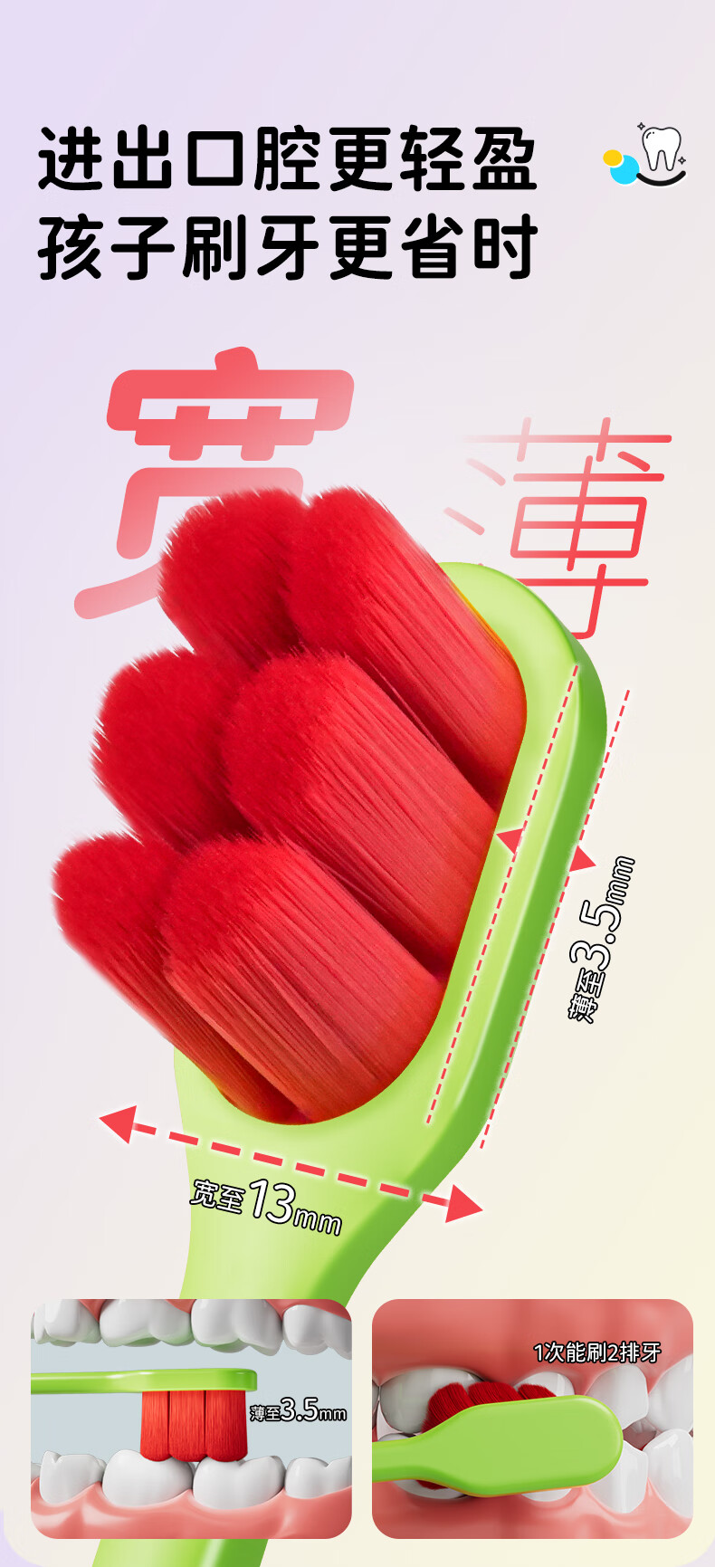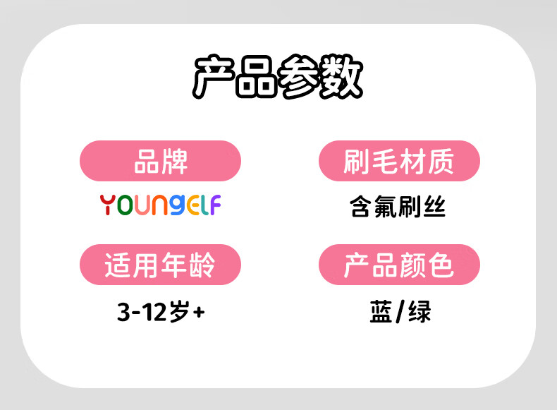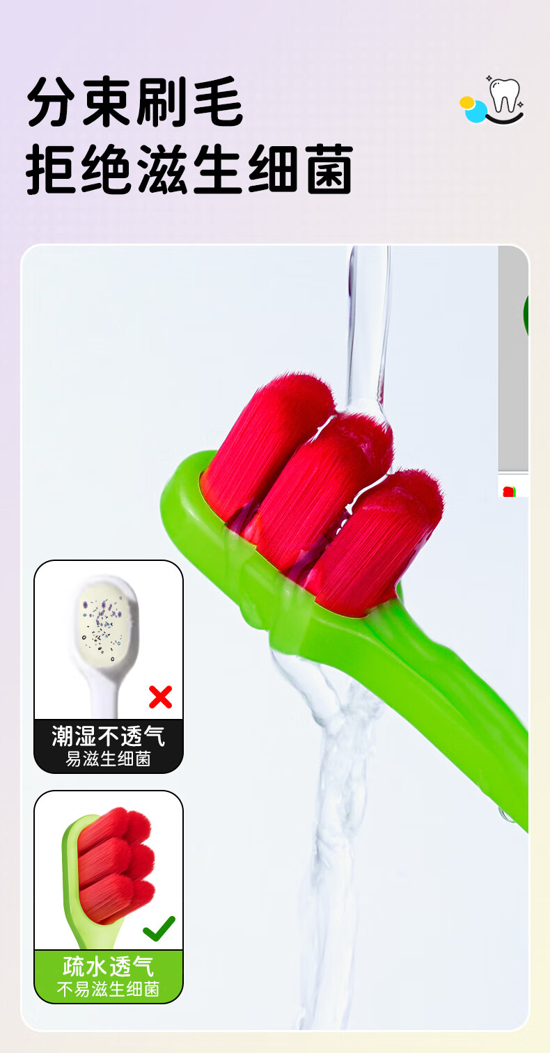 洋精灵儿童牙刷6-12岁含氟万毛款 软毛密绒宽薄头 青/绿4支装