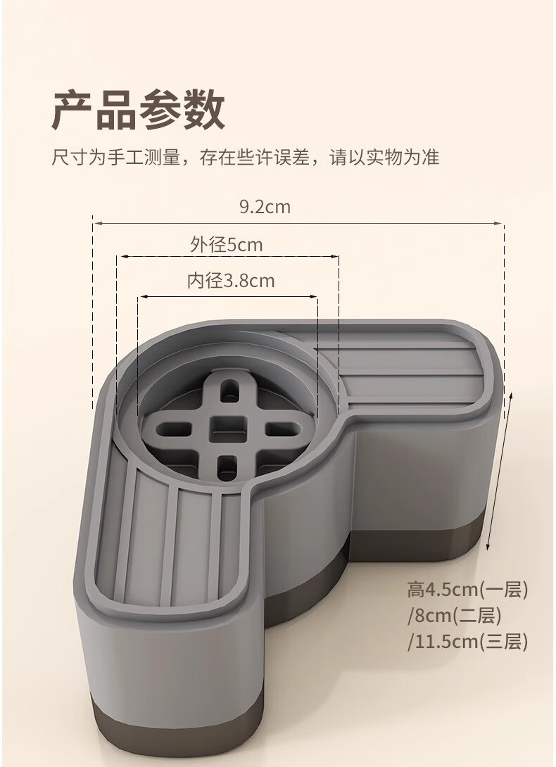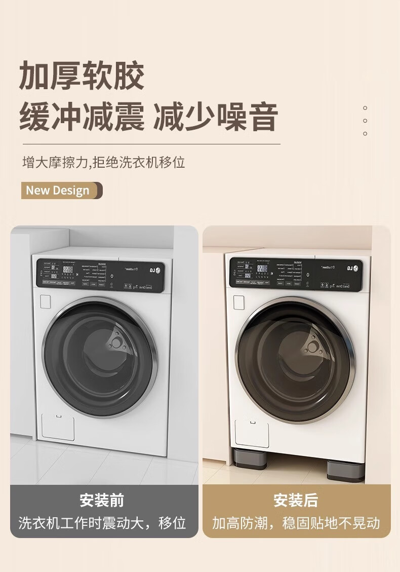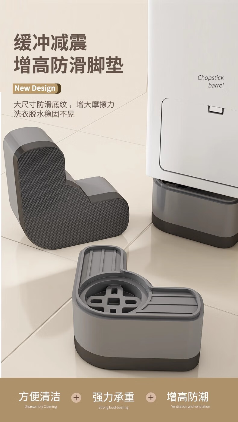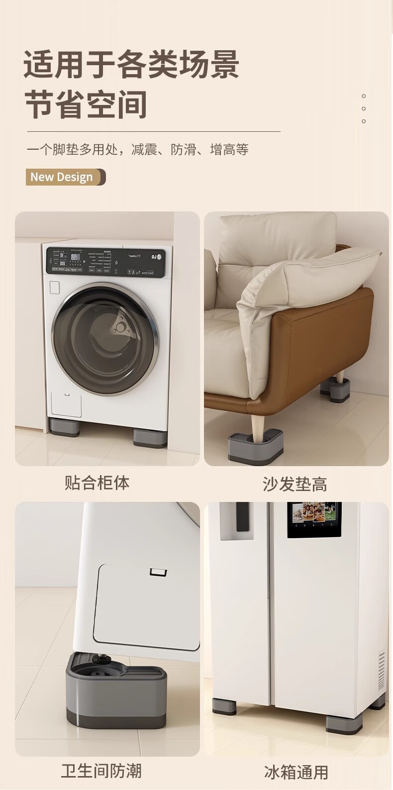 户璃德国洗衣机底座架增高脚垫防滑防震静音脚支架滚筒专用冰箱加垫高 单层四个增高4.5cm-深灰【滤震/消音/防滑】