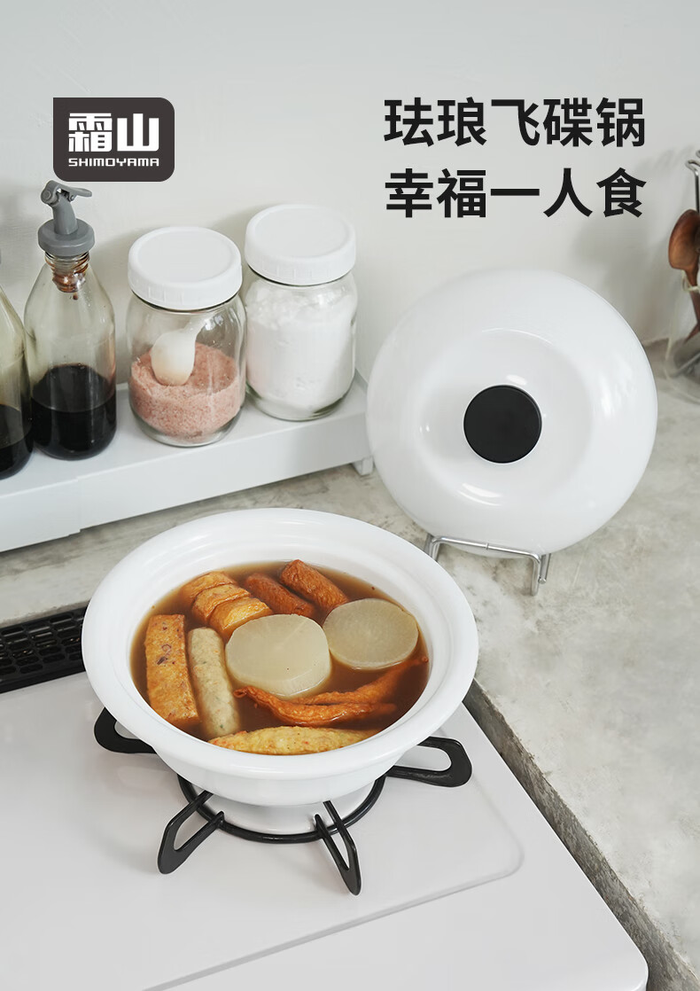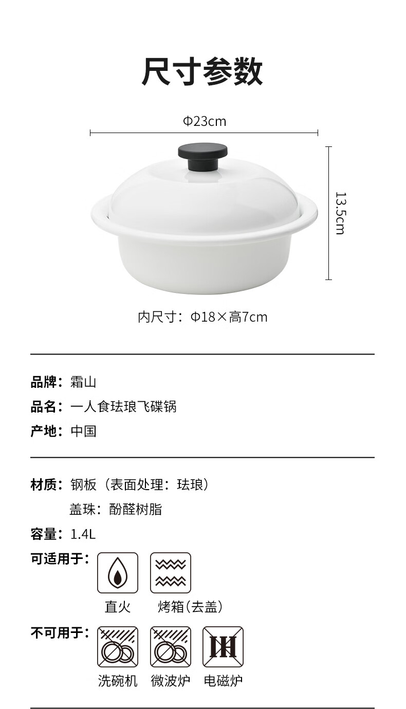 霜山珐琅汤锅家用搪瓷炖盅煮粥煲汤小煮锅无涂层汤煲一人食飞碟泡面锅 【1.4L】一人食泡面锅 23cm