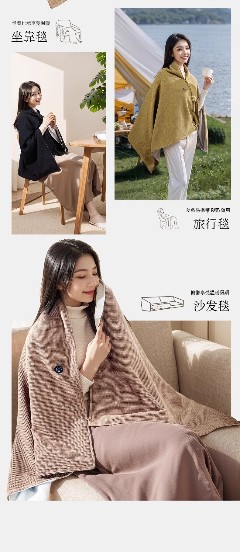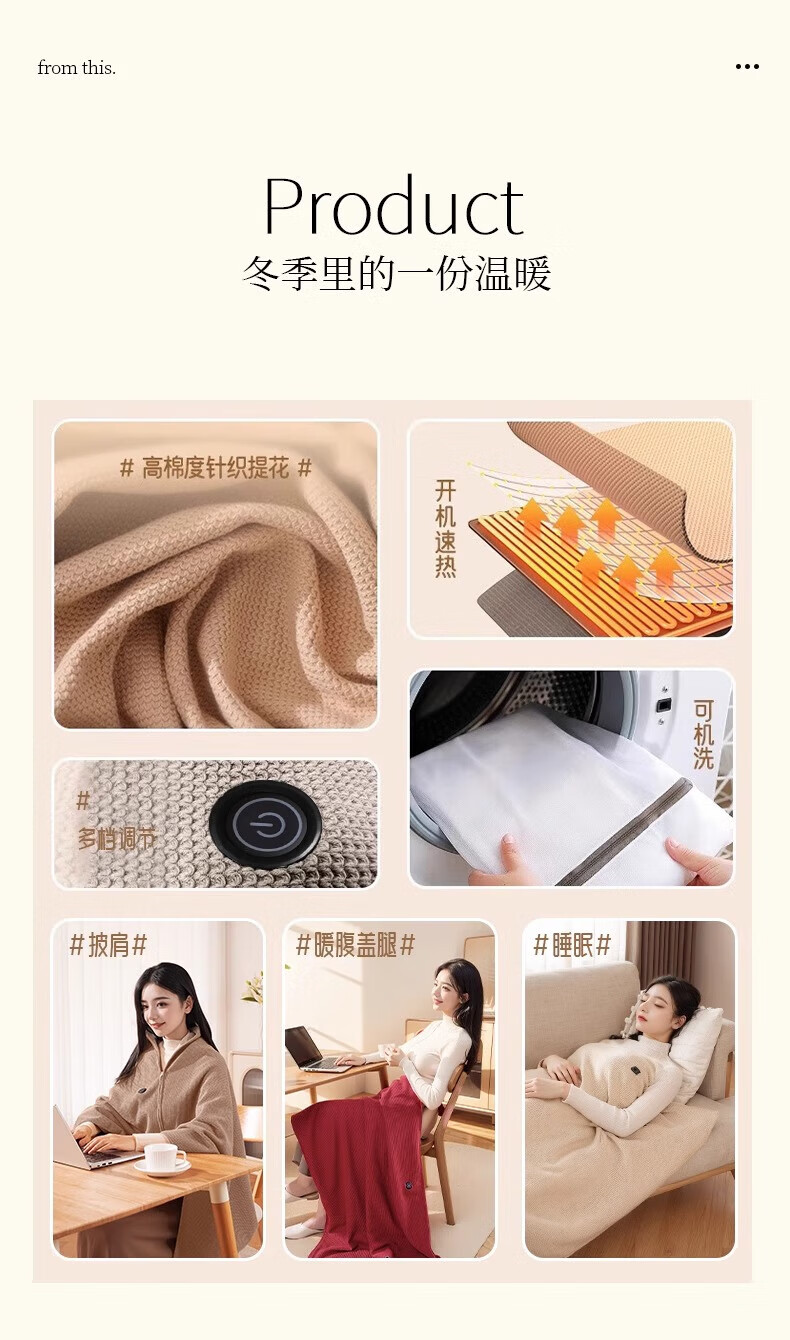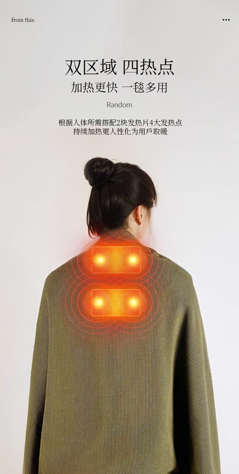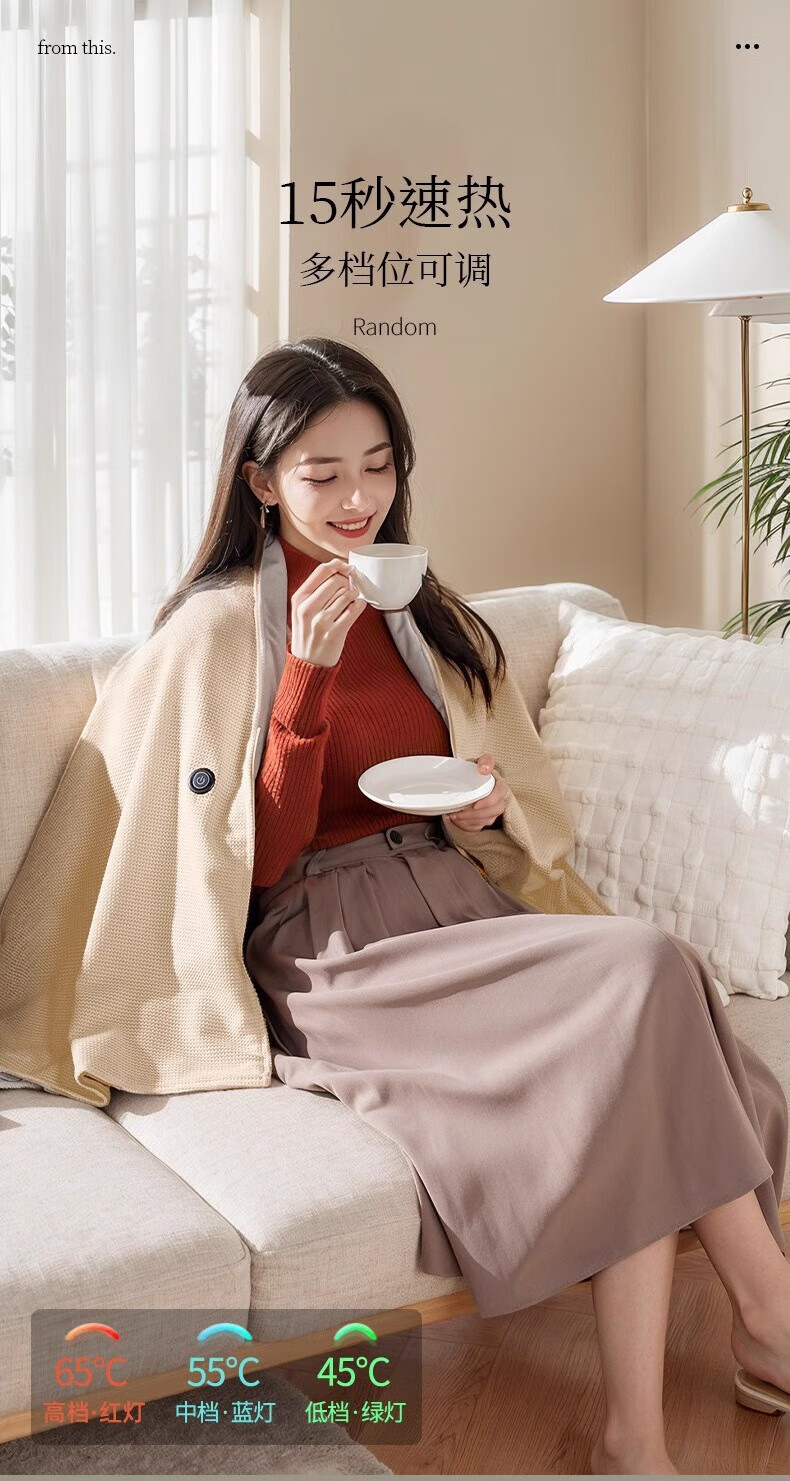 DEATKN德国高端电热发热披肩电加热充电盖毯盖腿暖身毯办公室保暖披 雪花杏[15080cm]15S速热