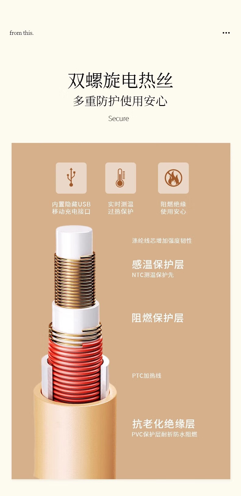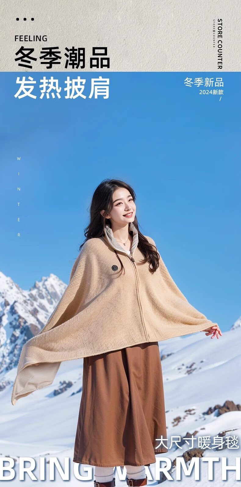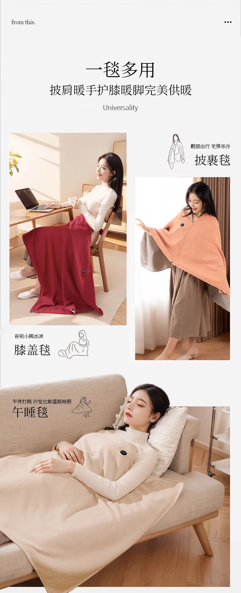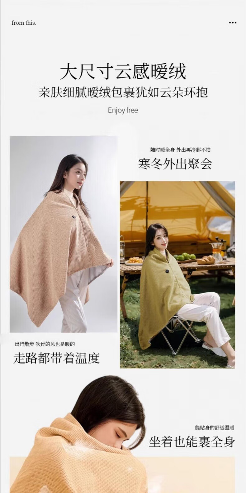 DEATKN德国高端电热发热披肩电加热充电盖毯盖腿暖身毯办公室保暖披 雪花杏[15080cm]15S速热