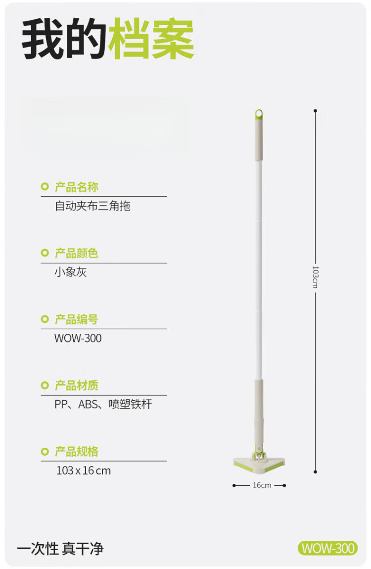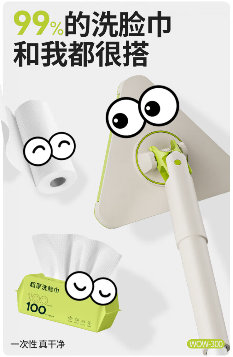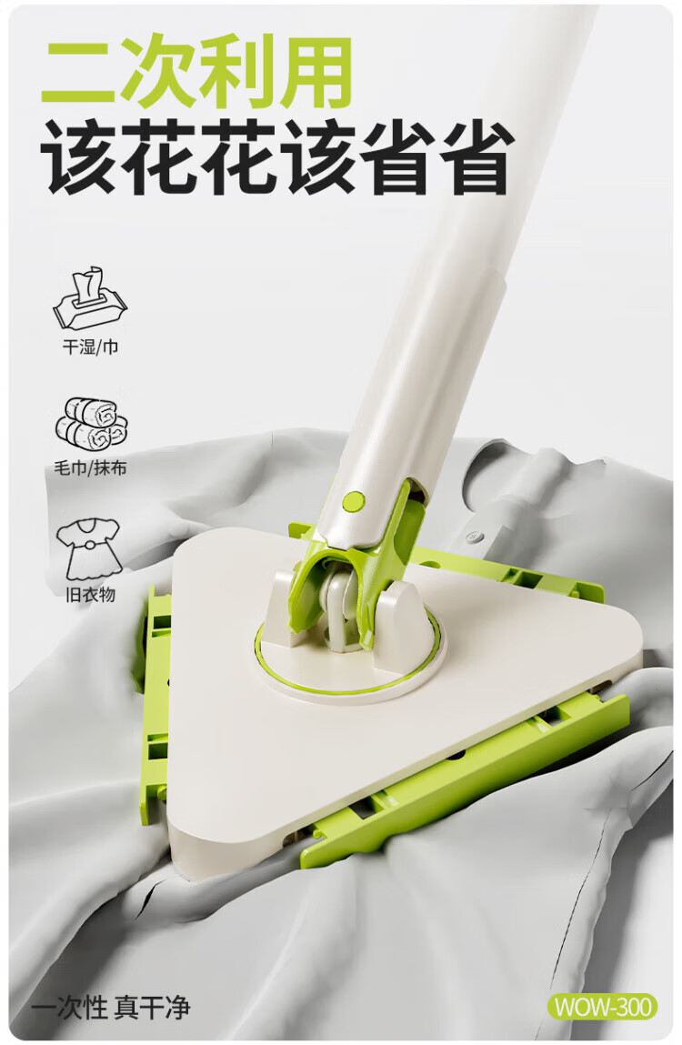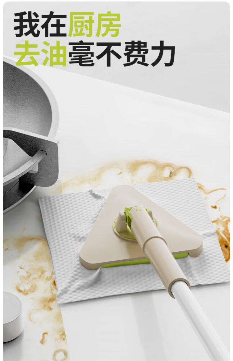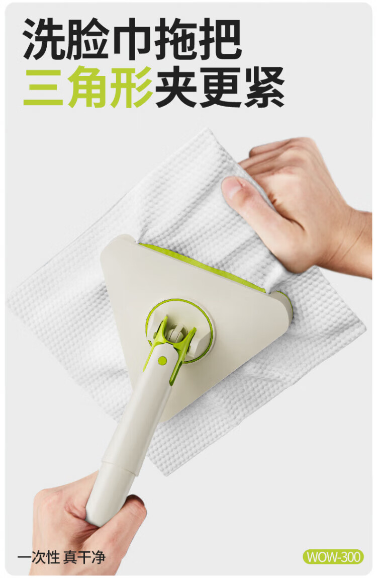 WCZ德国洗脸巾拖把三角夹布2025新款懒人家用大扫除小号平板可夹抹布 137cm加长三角夹布拖+3包除油湿巾+加2清洁布