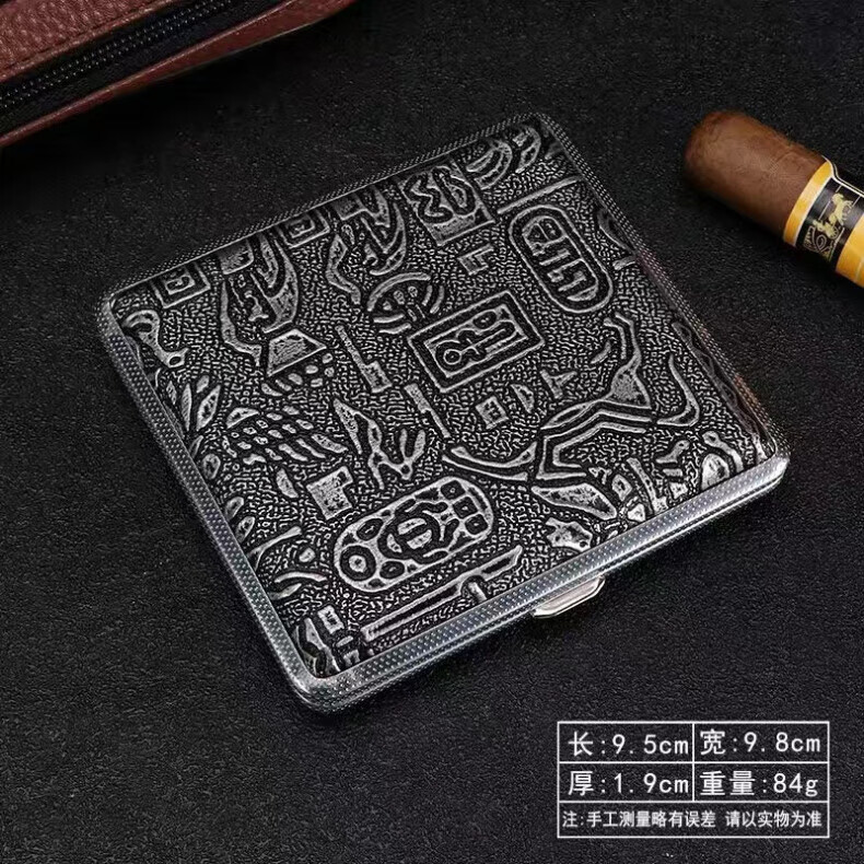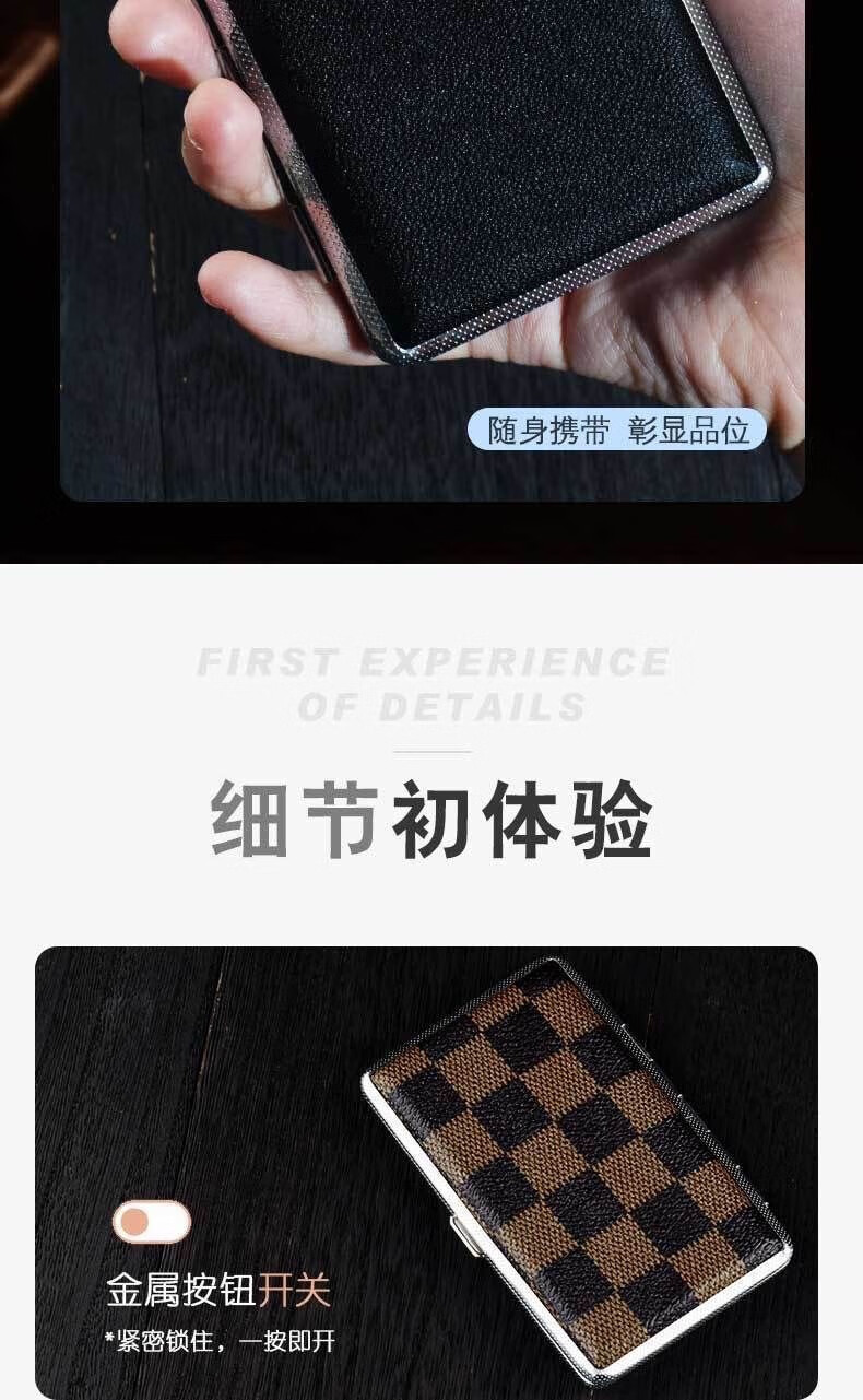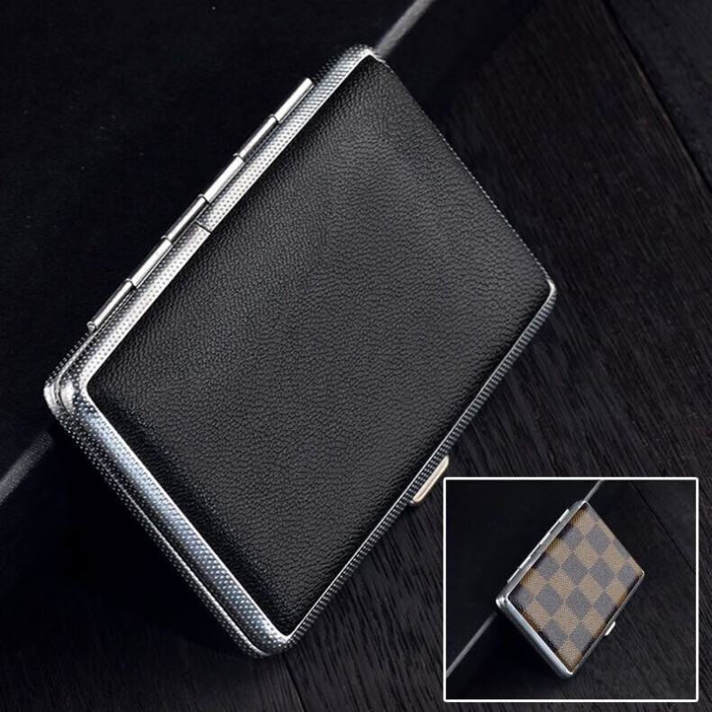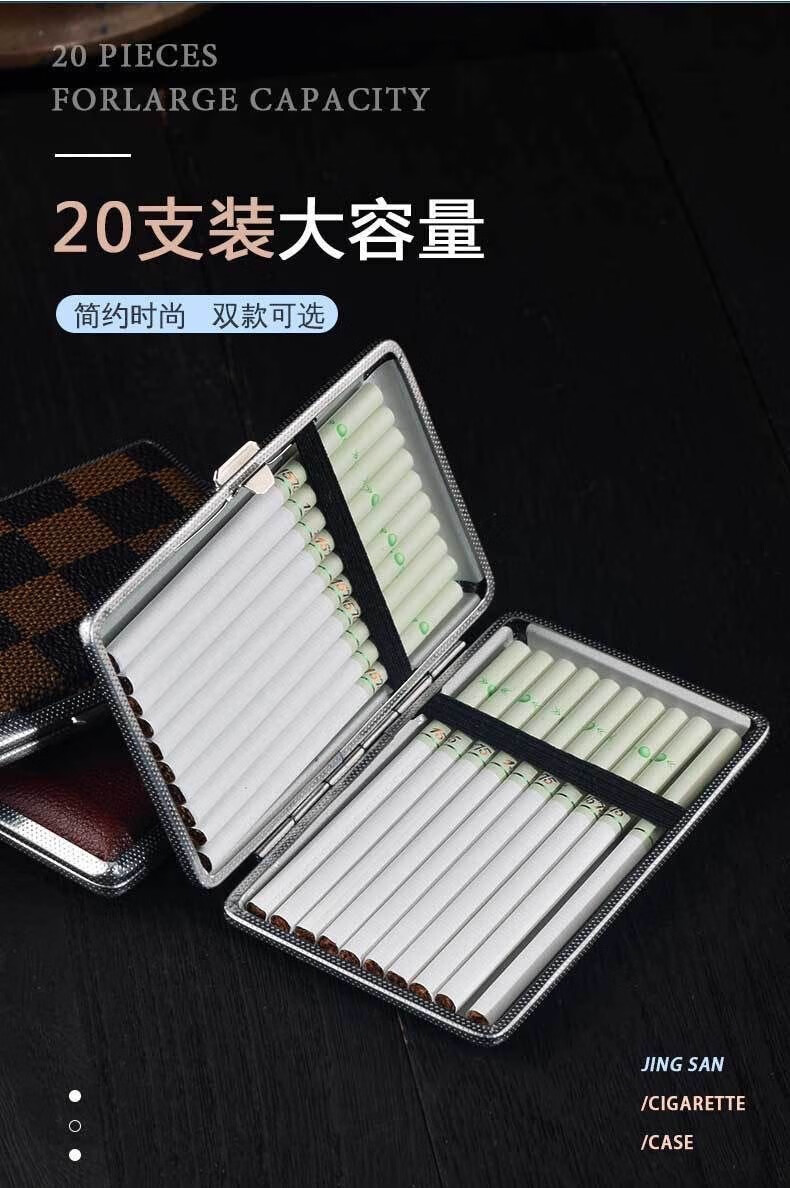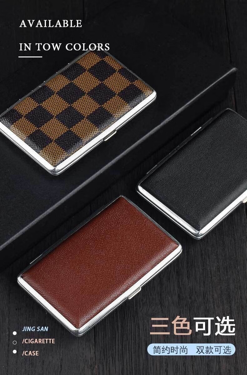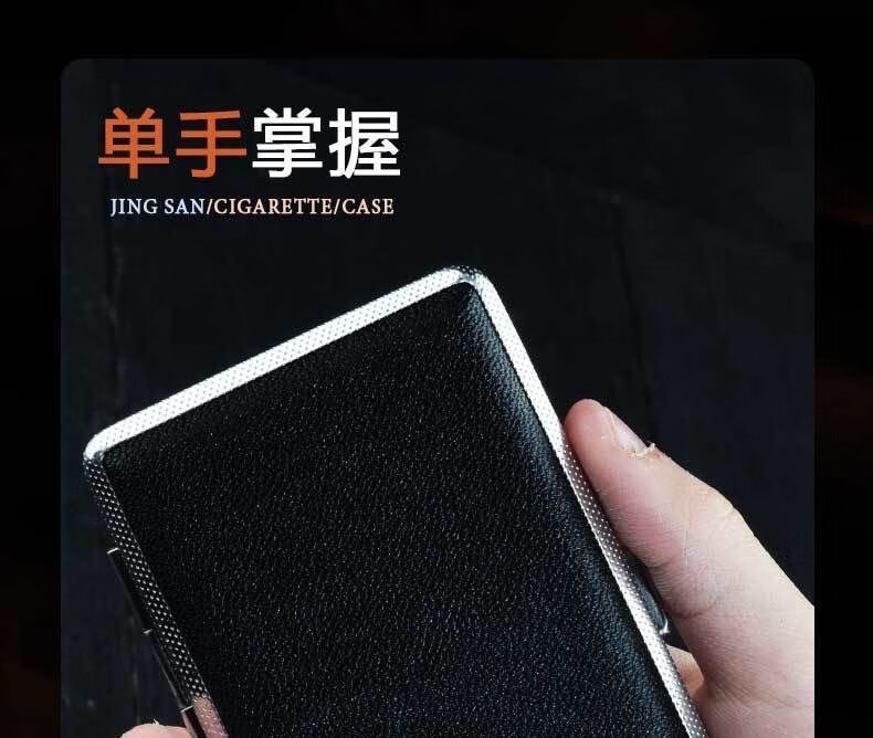 AILUKI日本烟盒细支收纳盒20支装三合一体超薄香烟收纳盒便携皮质创意盒 5.5细支黑色 1支