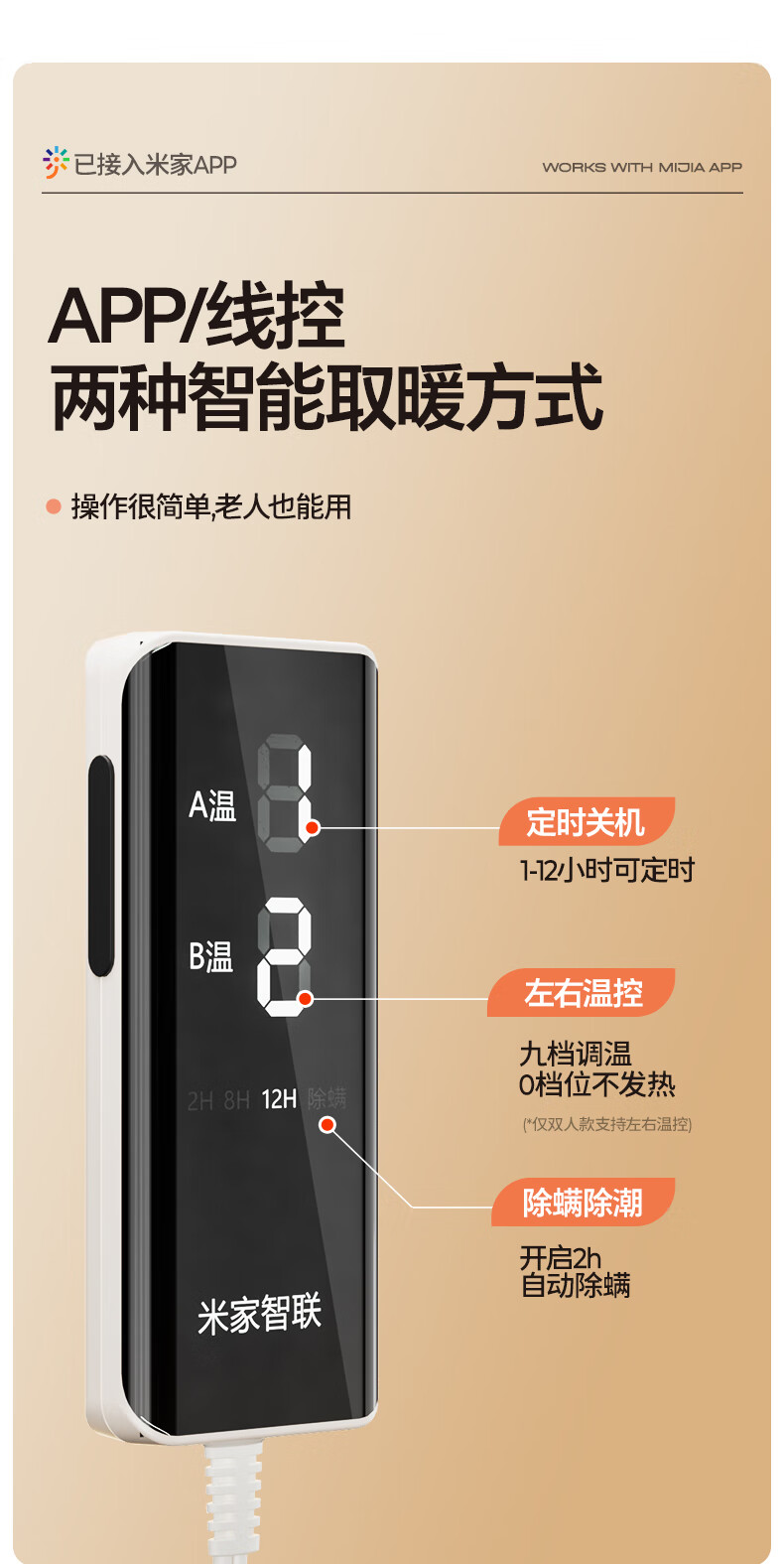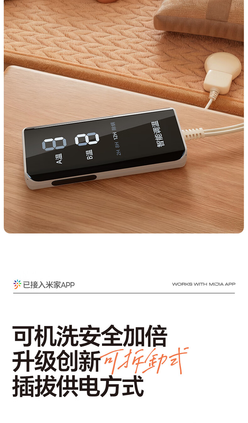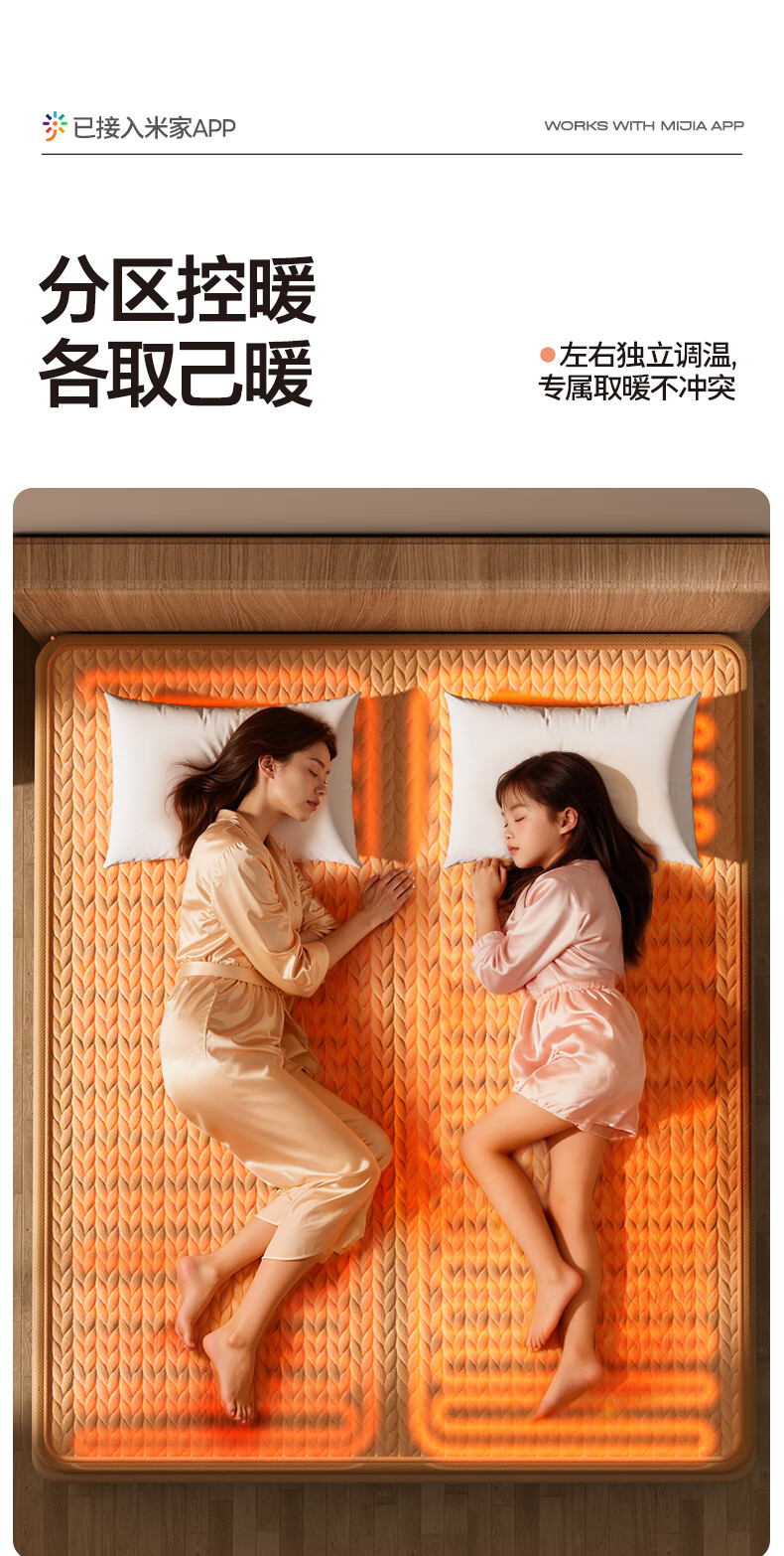 梦多福已接入米家丨智能电热毯单双人双控调温1.8*2米电褥子安全可水洗 米家智能电热毯-1.8*2.0m双人双控丨杀菌除螨丨可水洗 已接入米家APP丨手机遥控丨9档调温丨12H定时